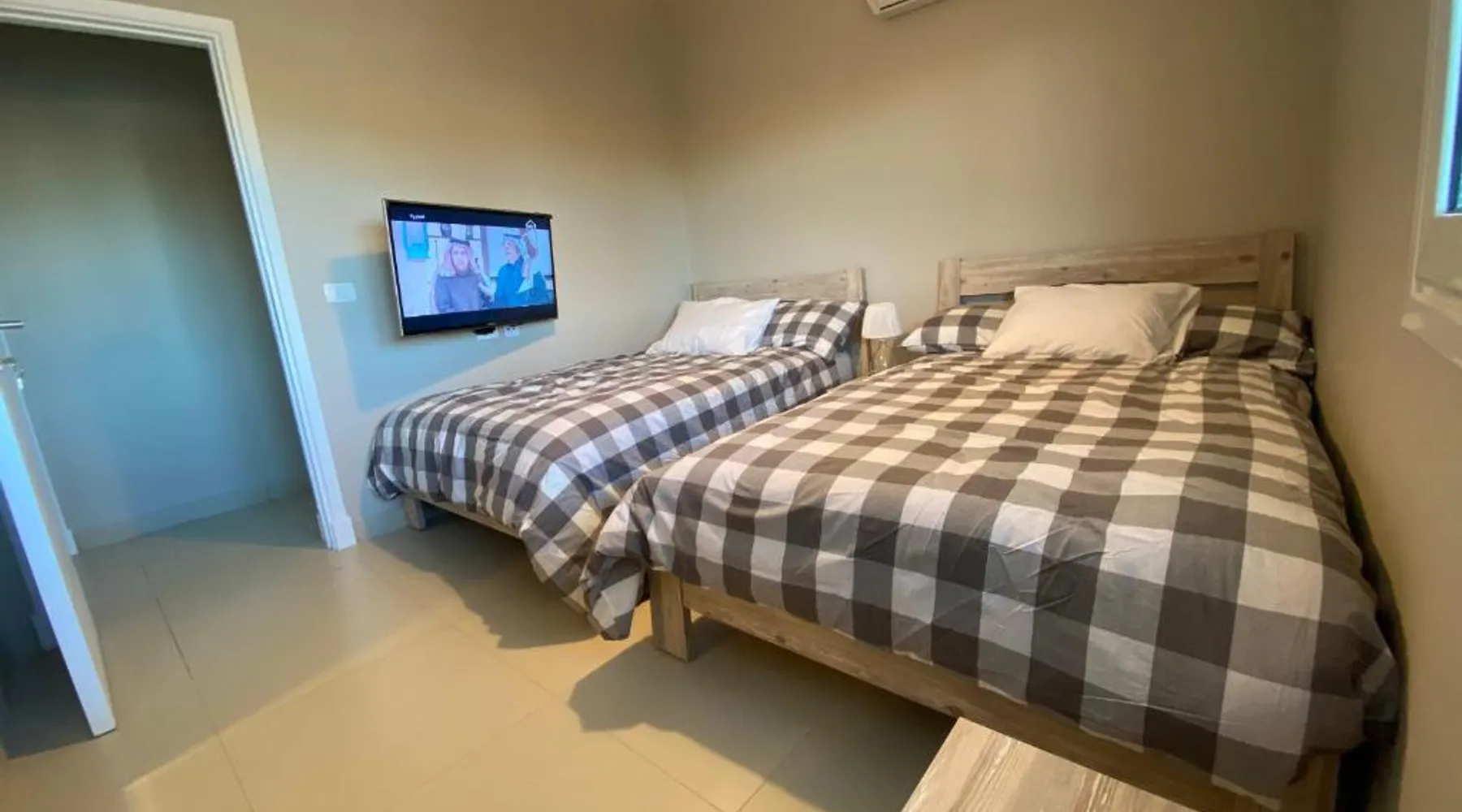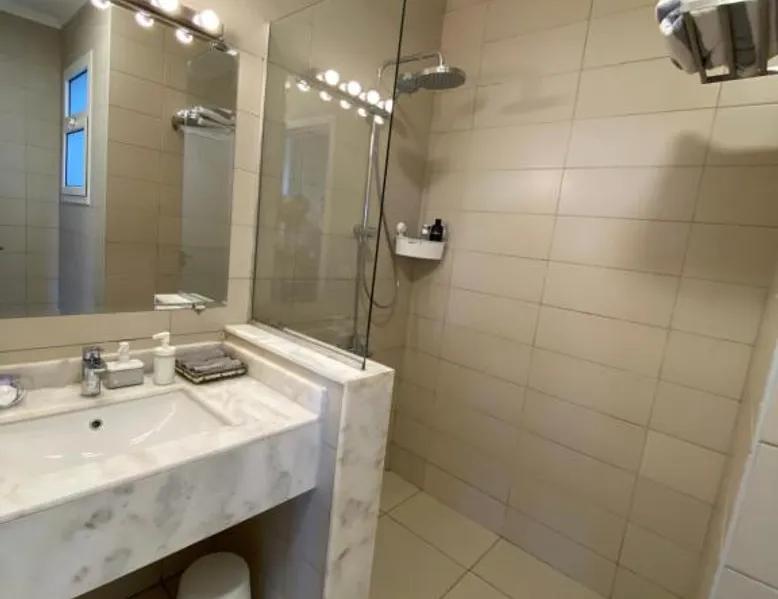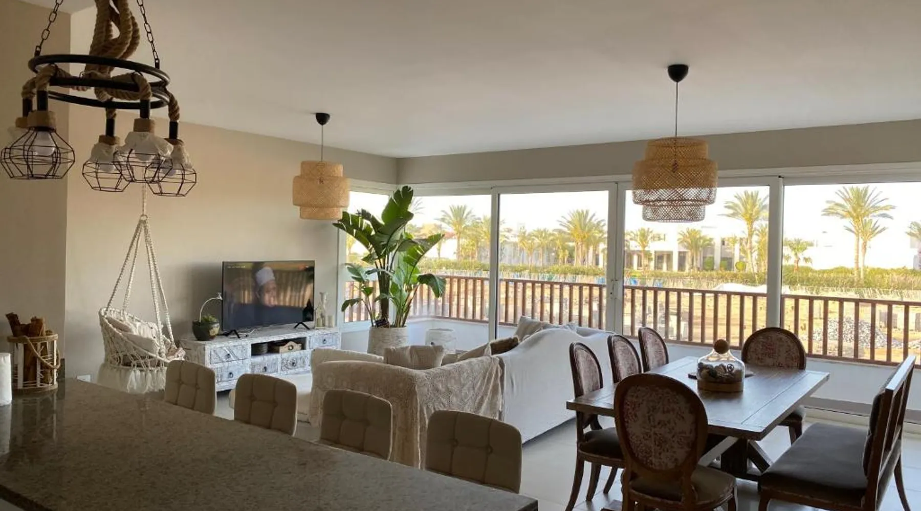 Beachfront Location: Almaza Bay Beach Town Chalet in Mersa Matrouh offers direct beachfront access and stunning sea views. Guests can relax on the sandy shores or take a dip in the crystal-clear waters. Exceptional Facilities: The chalet features a hot spring bath, rooftop swimming pool, spa and wellness center, terrace, restaurant, bar, and free WiFi. Additional amenities include a lounge, public bath, 24-hour front desk, and free on-site parking. Comfortable Accommodations: Rooms are equipped with air-conditioning, private bathrooms, balconies, and modern conveniences such as washing machines and kitchen appliances. Family rooms and interconnected rooms cater to all guest needs. Dining Experience: The on-site restaurant serves Middle Eastern cuisine, complemented by a pool bar and outdoor seating areas. Guests can also enjoy massage services, a games room, and a children’s playground. Featuring a private entrance, this air-conditioned chalet consists of 1 living room, 3 separate bedrooms and 3 bathrooms with a walk-in shower and a bidet. Guests will find a refrigerator, kitchenware, an oven and a microwave in the well-fitted kitchen. The chalet also offers a barbecue. The spacious chalet provides a flat-screen TV with satellite channels, a washing machine, soundproof walls, a mini-bar as well as garden views. The unit offers 7 beds.