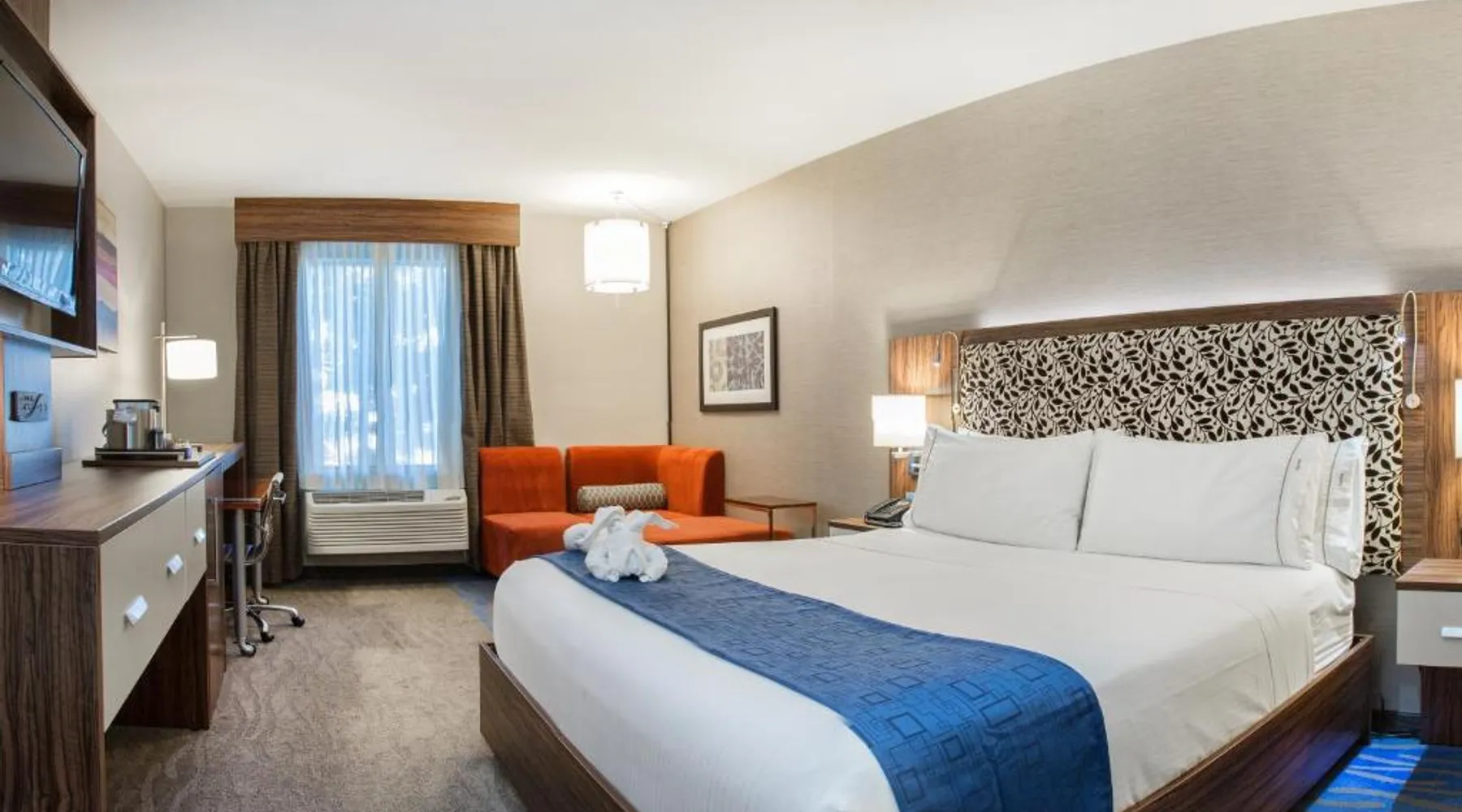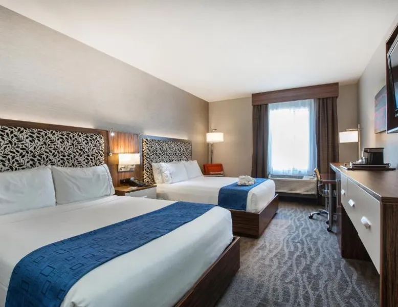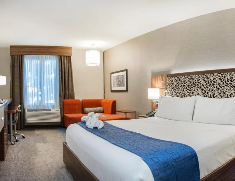 This Redwood City hotel is just a 15-minute drive from Stanford University and the Palo Alto Junior Museum and Zoo. It offers a gym and spacious rooms with free Wi-Fi. The rooms are styled in neutral colors with bright accents and offer cable TV and in-room movies. A work desk, microwave and refrigerator are standard amenities at Holiday Inn Express Redwood City Central. Guests have access to the on-site business center and laundry facilities. Every morning Redwood City Holiday Inn Express provides a buffet breakfast featuring eggs, cereal, fresh fruit and hot coffee. Malibu Grand Prix is only 1.5 miles from this hotel and California's Great America Amusement Park is a 20-minute drive away. Half Moon Bay is within a 30-minute drive. The unit has 1 bed.
