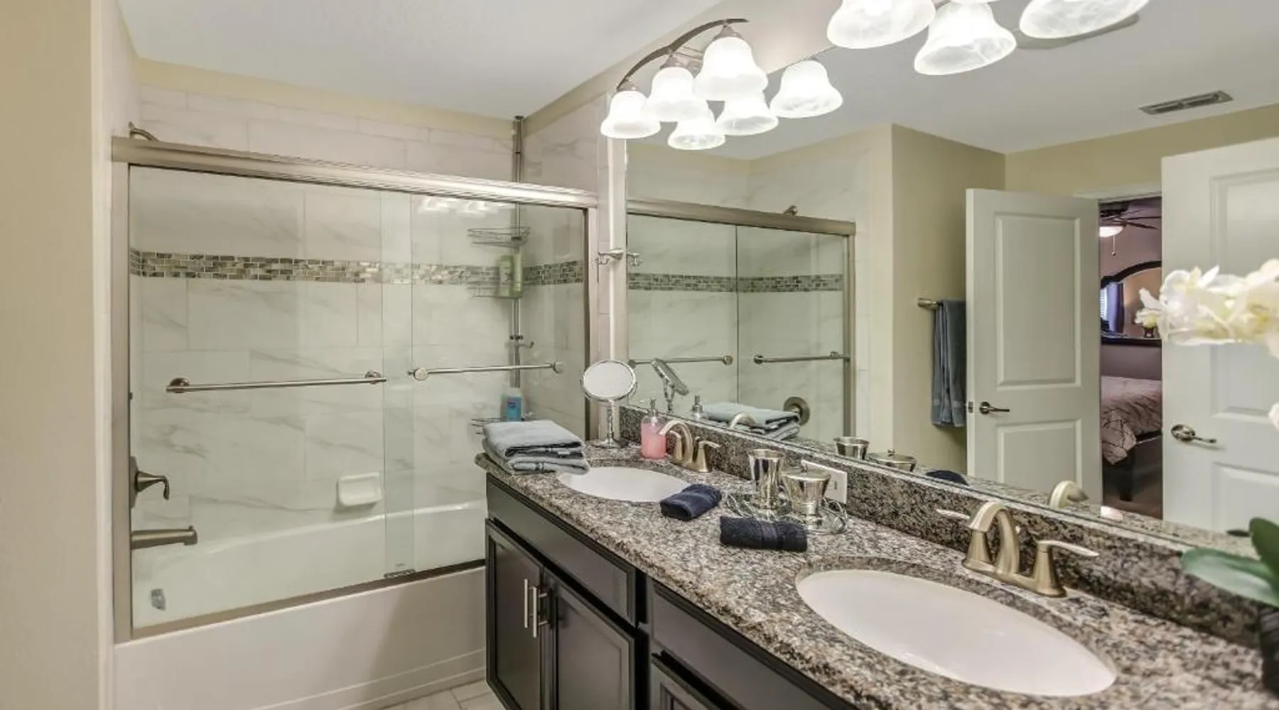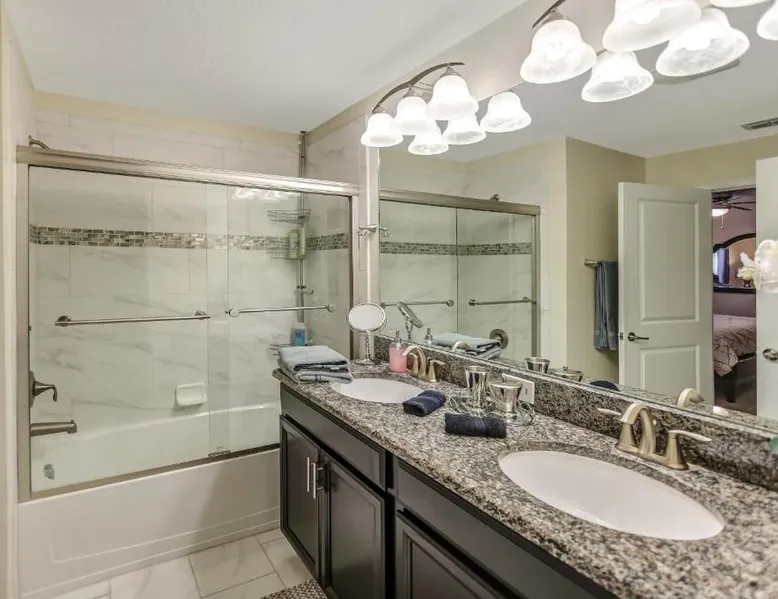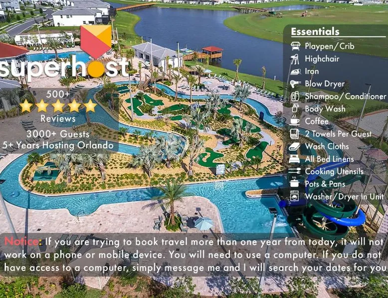 C - New 4 Bedroom Home - 5 Miles to Disney - Free Water Park - Private Pool is located in Kissimmee, just 6.2 miles from Gatorland and 6.5 miles from Disney Springs. This vacation home provides air-conditioned accommodations with a balcony. The accommodation features a hot tub, free Wifi throughout the property, and full-day security. Featuring a terrace and lake views, the spacious vacation home includes 4 bedrooms, a living room, satellite flat-screen TV, an equipped kitchen, and 3 bathrooms with a hot tub and a bath. Towels and bed linen are available in the vacation home. This vacation home is allergy-free and non-smoking. Guests are welcome to eat at the on-site family-friendly restaurant, which is open for dinner, lunch, and cocktails. Guests at the property are welcome to use the fitness room and relax in the pool with a view. For guests with children, the vacation home offers outdoor play equipment and a baby safety gate. A water park and kids pool are available for guests at C - New 4 Bedroom Home - 5 Miles to Disney - Free Water Park - Private Pool. Disney's Wide World of Sports is 6.7 miles from the accommodation, while Disney's Boardwalk is 6.9 miles from the property. Orlando International Airport is 14 miles away. This holiday home features a pool with a view and a hot tub. Featuring a private entrance, this air-conditioned holiday home consists of 1 living room, 4 separate bedrooms and 3 bathrooms with a bath and a shower. Guests will find a stovetop, a refrigerator, a dishwasher and kitchenware in the kitchen. The holiday home also provides guests with a barbecue. The spacious holiday home provides a flat-screen TV with satellite channels, a washing machine, a tea and coffee maker, a seating area as well as lake views. The unit offers 5 beds.