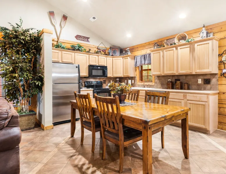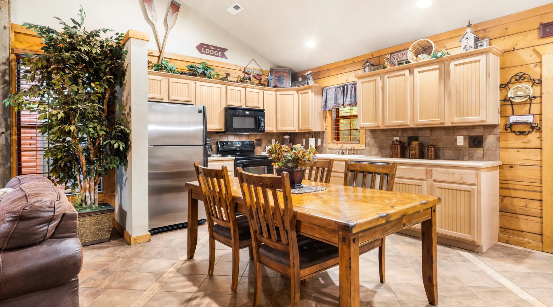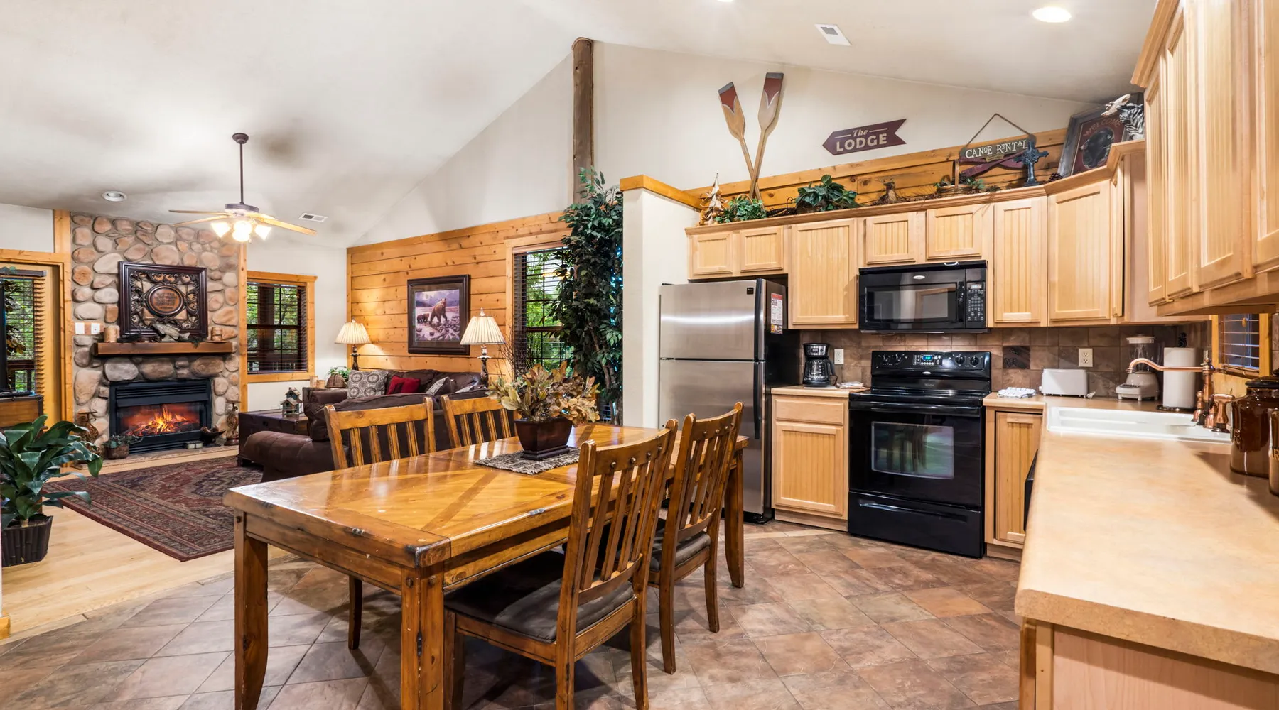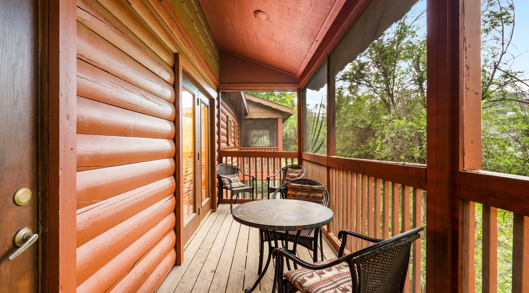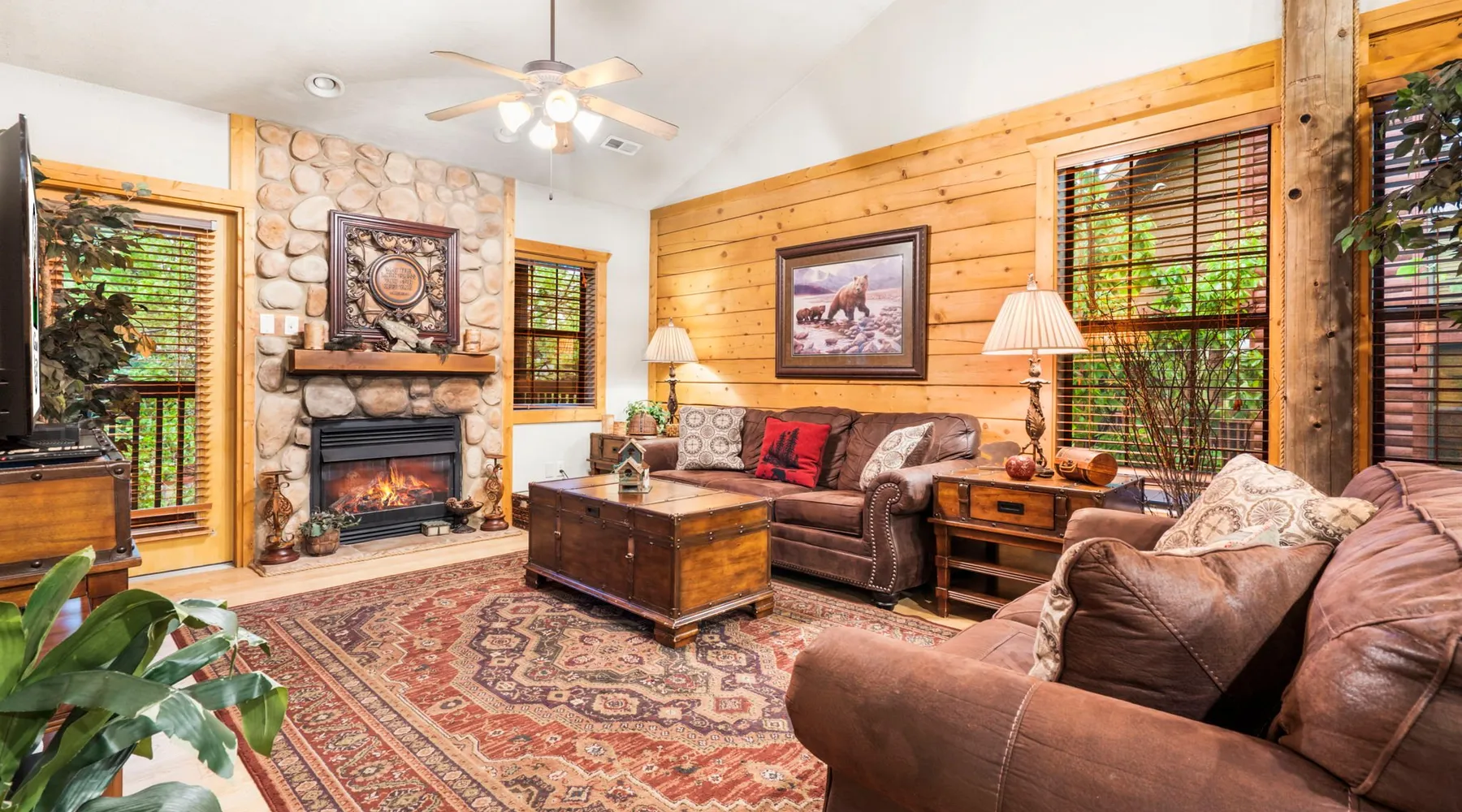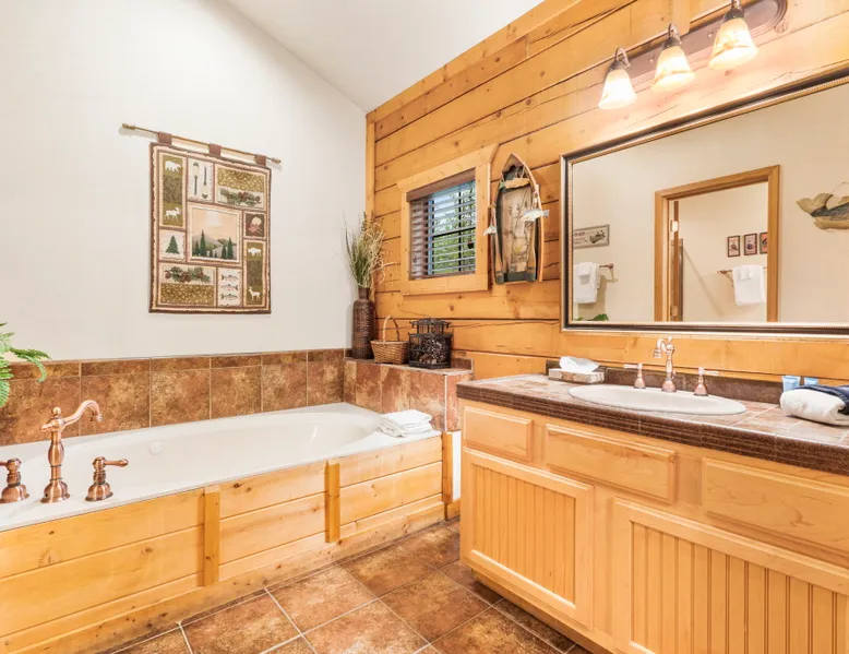 Enjoy exclusive savings on popular Branson shows and attractions just for booking with us! See details below! A rustic vibe meets comfortable elegance in this two-bedroom, two-bathroom cedar log cabin in the heart of Branson. Perfect for a family getaway, it has everything you need to relax and enjoy the beauty of the Ozarks while remaining only a few minutes from the city's shopping and entertainment. Each king bedroom has a private bath - one with a jacuzzi tub and the other with a double shower. The living room features a cozy fireplace, a queen-sized sofa bed, and cable TV/DVD. A fully-equipped kitchen with a dining room and an in-unit washer and dryer make this cabin perfect for longer stays. Enjoy free wireless internet and seasonal outdoor pool access. Get 4 show or attraction tickets at deeply discounted prices when you book with us! Choose from over 30 of the hottest entertainment options the Live Entertainment Capital of the World has to offer! Just follow two easy steps: Complete the booking process. Send us a message to let us know you want the best savings in town! We beat all prices on Branson tickets - guaranteed!Shows and attractions sell out quickly, so we highly recommend that you contact us in advance of your stay to ensure the best seats! **Offer exclusive to guests of Thousand Hills Vacations. Activities are subject to availability and partners' participation is subject to change at any time.** Accommodations: Dryer, Meal delivery, Other Services Concierge, Other Services Private Chef, Tumble dryer, Wifi Amenities: Air Conditioning, Bed Linens, Cable/satellite TV, Clothing storage, Dryer, Essentials, Extra Pillows And Blankets, Fireplace, Free Wifi, Hair Dryer, Hangers, Heating, Internet, Internet Access, Iron, Iron Board, Linens provided, Parking, Parking space, Parking space Accessible, Private Entrance, Shampoo, Smart TV, TV, Towels, Towels provided, Washer Attractions: Autumn Foliage, Theme Parks, Water Parks Entertainment: Satellite or Cable Entertainment Options: Wi-Fi Kitchen and Dining: Baking sheet, Blender, Coffee, Coffee Maker, Cooking Basics, Dining Area, Dining table, Dishes Utensils, Dishwasher, Freezer, Fridge, Kitchen, Microwave, Oven, Refrigerator, Stove, Toaster, Wine glasses Leisure: Antiquing, Bird Watching, Boating, Bowling, Horse riding nearby, Miniature Golf, Outlet Shopping, Paddle Boating, Shopping, Water Sports, Wildlife Viewing Local Features: ATM Bank, Fitness Center, Groceries, Hospital, Laundromat, Resort access Outdoor: Balcony/Terrace, Grill Outdoor Amenities: Boat Access Nearby, Marina Nearby, Recreational Parks Nearby Pool/Spa: Outdoor pool shared Safety Features: Carbon Monoxide Detector, Fire Extinguisher, Outdoor Lighting, Smoke Detector Sports and Adventure: Cycling, Cycling trips, Fishing nearby, Golf, Golf Optional, Hiking, Hiking trips, Hot Air Ballooning, Jet Skiing, Kayaking, Parasailing, Sailing, Scuba or Snorkeling, Skiing Water, Snorkeling, Snorkeling / Diving, Swimming, Tennis courts nearby, Tubing Water, Watersports nearby Suitability: Air Conditioning, Children Welcome, Fireplace, Free Parking Vacation Rental Pool/Spa: Community Outdoor Pool