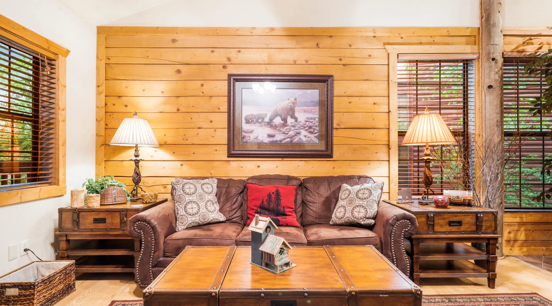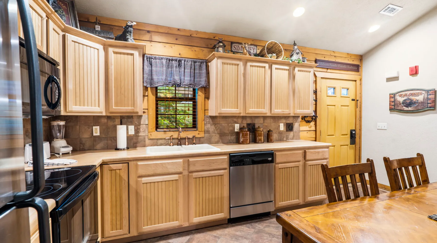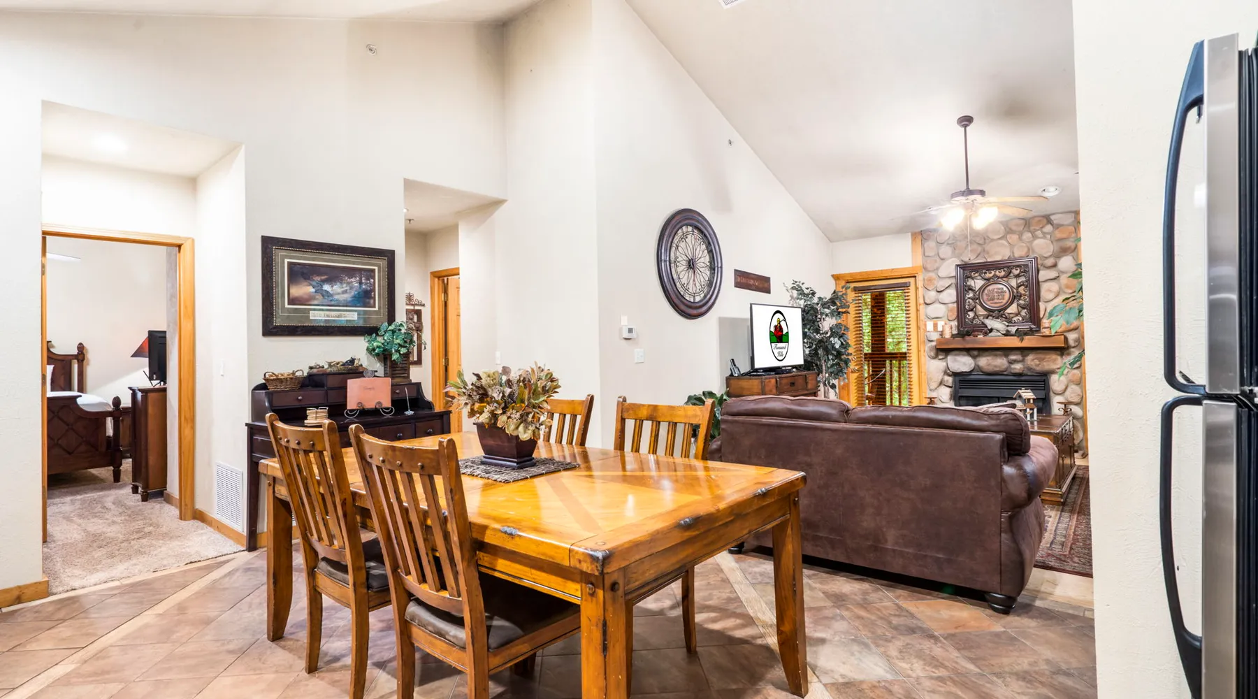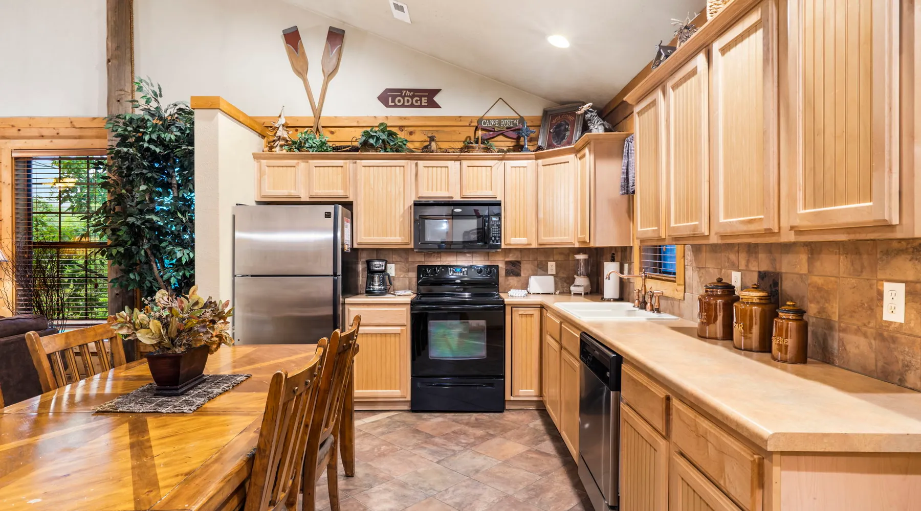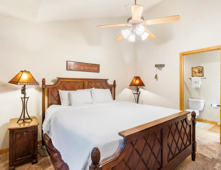 Enjoy exclusive savings on popular Branson shows and attractions just for booking with us! See details below! A rustic vibe meets comfortable elegance in this two-bedroom, two-bathroom cedar log cabin in the heart of Branson. Perfect for a family getaway, it has everything you need to relax and enjoy the beauty of the Ozarks while remaining only a few minutes from the city's shopping and entertainment. Each king bedroom has a private bath - one with a jacuzzi tub and the other with a double shower. The living room features a cozy fireplace, a queen-sized sofa bed, and cable TV/DVD. A fully-equipped kitchen with a dining room and an in-unit washer and dryer make this cabin perfect for longer stays. Enjoy free wireless internet and seasonal outdoor pool access. Get 4 show or attraction tickets at deeply discounted prices when you book with us! Choose from over 30 of the hottest entertainment options the Live Entertainment Capital of the World has to offer! Just follow two easy steps: Complete the booking process. Send us a message to let us know you want the best savings in town! We beat all prices on Branson tickets - guaranteed!Shows and attractions sell out quickly, so we highly recommend that you contact us in advance of your stay to ensure the best seats! **Offer exclusive to guests of Thousand Hills Vacations. Activities are subject to availability and partners' participation is subject to change at any time.** Accommodations: Dryer, Meal delivery, Other Services Concierge, Other Services Private Chef, Tumble dryer, Wifi Amenities: Air Conditioning, Bed Linens, Cable/satellite TV, Clothing storage, Dryer, Essentials, Extra Pillows And Blankets, Fireplace, Free Wifi, Hair Dryer, Hangers, Heating, Internet, Internet Access, Iron, Iron Board, Linens provided, Parking, Parking space, Parking space Accessible, Private Entrance, Shampoo, Smart TV, TV, Towels, Towels provided, Washer Attractions: Autumn Foliage, Theme Parks, Water Parks Entertainment: Satellite or Cable Entertainment Options: Wi-Fi Kitchen and Dining: Baking sheet, Blender, Coffee, Coffee Maker, Cooking Basics, Dining Area, Dining table, Dishes Utensils, Dishwasher, Freezer, Fridge, Kitchen, Microwave, Oven, Refrigerator, Stove, Toaster, Wine glasses Leisure: Antiquing, Bird Watching, Boating, Bowling, Horse riding nearby, Miniature Golf, Outlet Shopping, Paddle Boating, Shopping, Water Sports, Wildlife Viewing Local Features: ATM Bank, Fitness Center, Groceries, Hospital, Laundromat, Resort access Outdoor: Balcony/Terrace, Grill Outdoor Amenities: Boat Access Nearby, Marina Nearby, Recreational Parks Nearby Pool/Spa: Outdoor pool shared Safety Features: Carbon Monoxide Detector, Fire Extinguisher, Outdoor Lighting, Smoke Detector Sports and Adventure: Cycling, Cycling trips, Fishing nearby, Golf, Golf Optional, Hiking, Hiking trips, Hot Air Ballooning, Jet Skiing, Kayaking, Parasailing, Sailing, Scuba or Snorkeling, Skiing Water, Snorkeling, Snorkeling / Diving, Swimming, Tennis courts nearby, Tubing Water, Watersports nearby Suitability: Air Conditioning, Children Welcome, Fireplace, Free Parking Vacation Rental Pool/Spa: Community Outdoor Pool