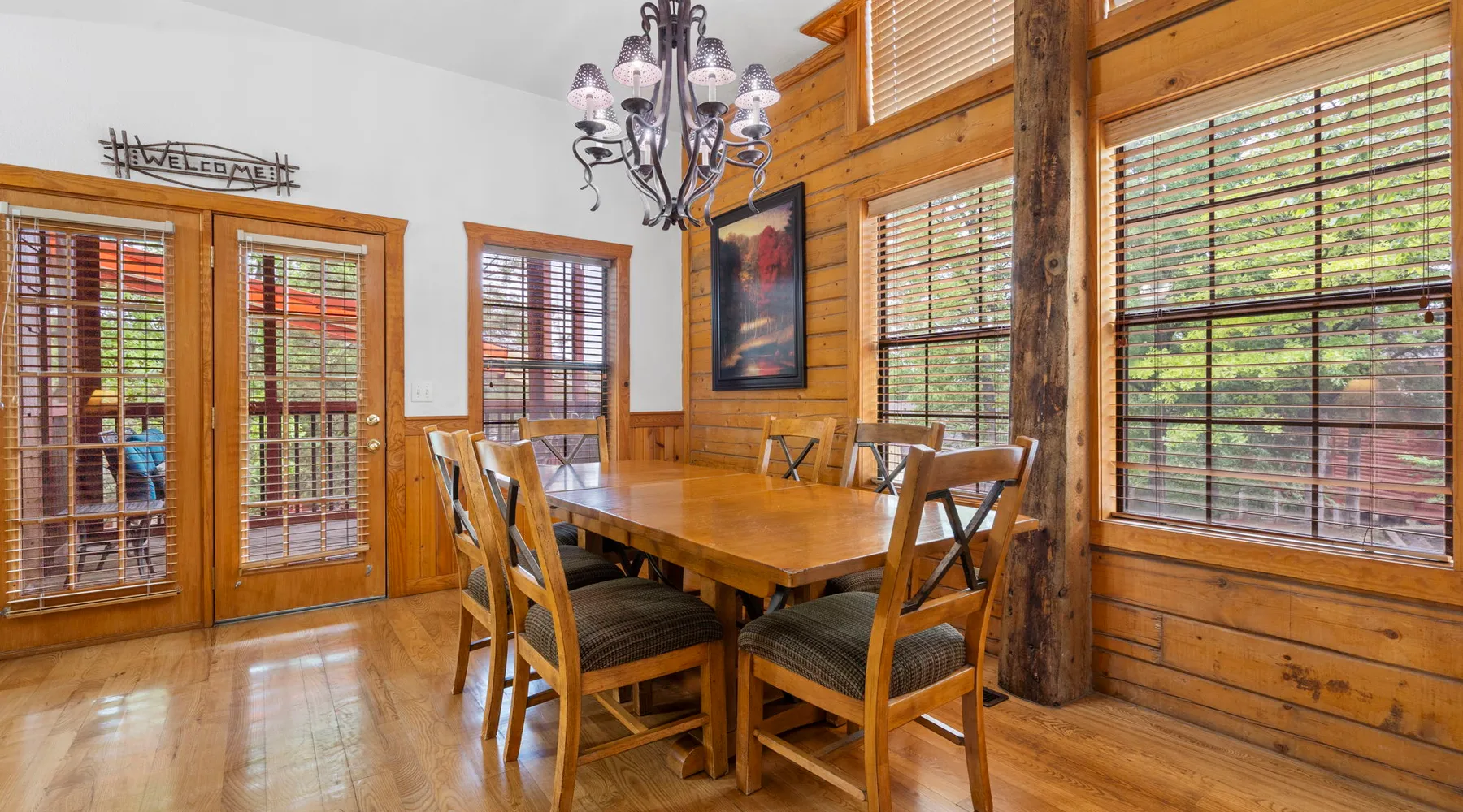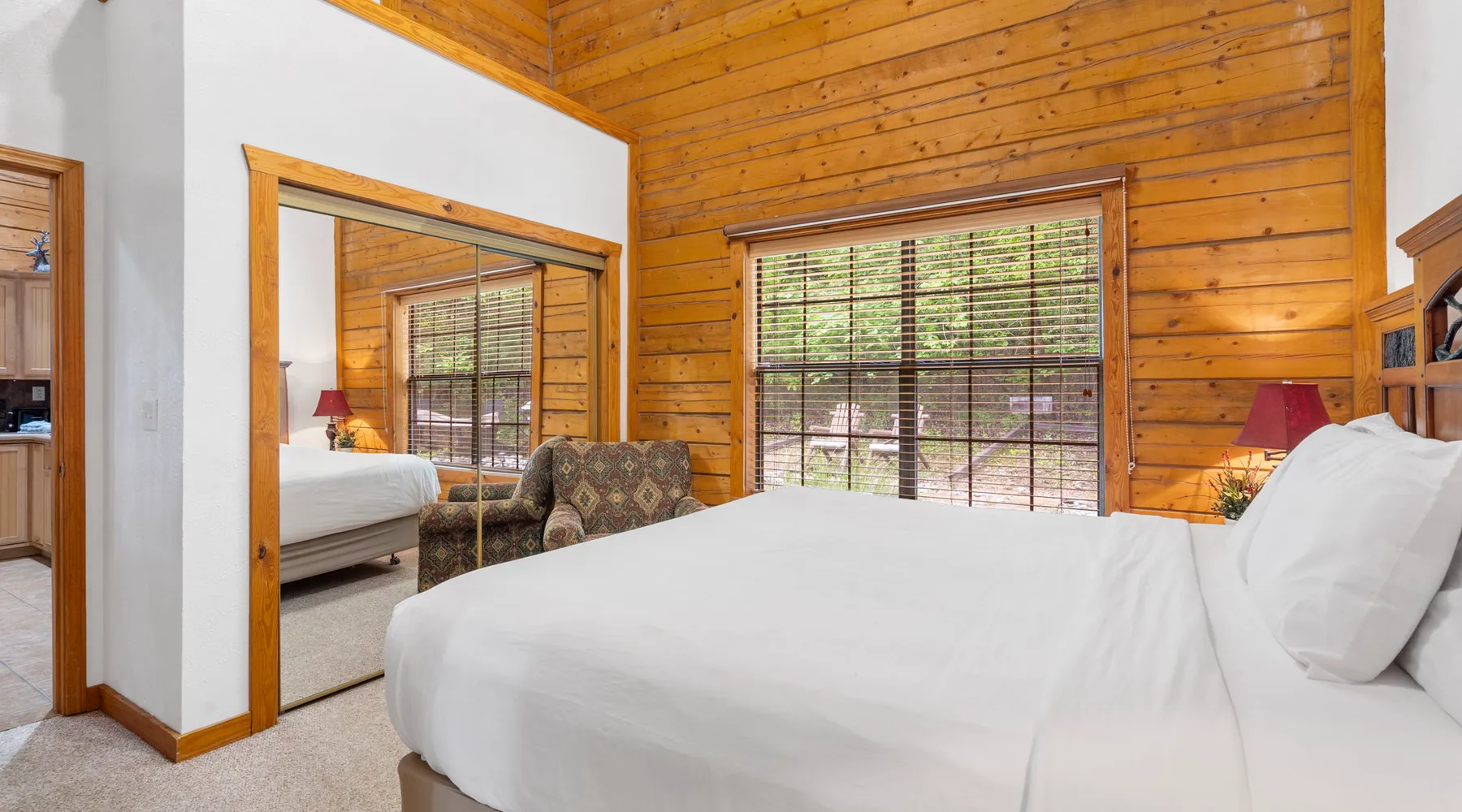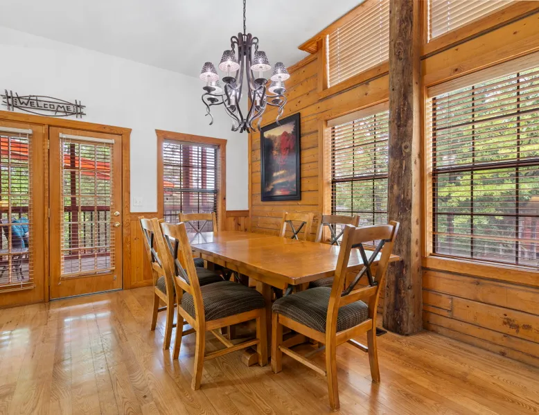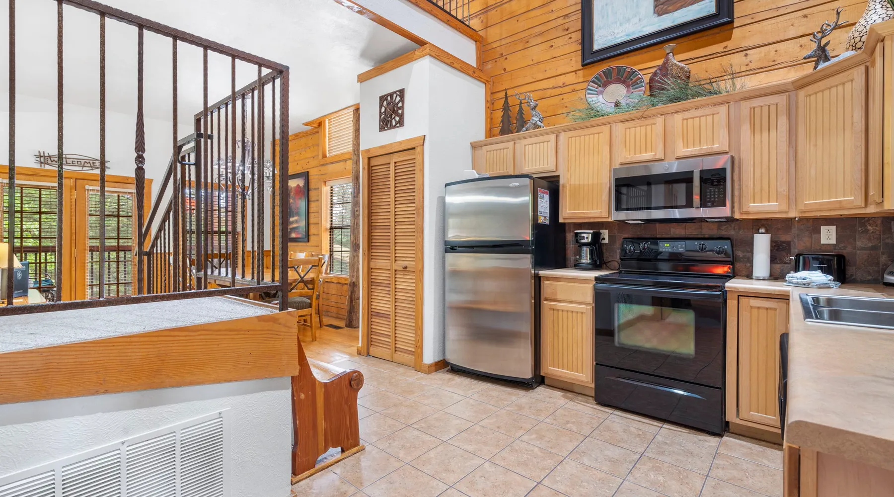Unlock exclusive savings on popular Branson shows and attractions just for booking with us! See details below! Perfect for a larger family or group of friends of up to eight, this beautiful log cabin is located near Branson's famous Highway 76 strip and features everything you need for a comfortable stay. The spacious, open living area provides a cozy gas fireplace, a full kitchen with major appliances, a dining room, and a private, screened balcony. Each of the two bedrooms, king loft area, and living room include cable TV. The downstairs bedroom features a private bathroom entrance and jetted tub, and the upstairs bathroom features a double shower. Free wireless internet, an in-unit washer and dryer, and outdoor pool access included. Get 4 show or attraction tickets at deeply discounted rates when you book with us! Choose from over 30 of the hottest entertainment options the Live Entertainment Capital of the World has to offer! Just follow two easy steps: Complete the booking process. Send us a message to let us know you want the best savings in town! We beat all prices on Branson tickets - guaranteed!Shows and attractions sell out quickly, so we highly recommend that you contact us in advance of your stay to ensure the best seats! **Offer exclusive to guests of Thousand Hills Vacations. Activities are subject to availability and partners' participation is subject to change at any time.** Accommodations: Dryer, Meal delivery, Other Services Concierge, Other Services Private Chef, Wifi Amenities: Air Conditioning, Bed Linens, Cable/satellite TV, Clothing storage, Dryer, Essentials, Extra Pillows And Blankets, Fireplace, Free Wifi, Hair Dryer, Hangers, Heating, Internet, Internet Access, Iron, Iron Board, Linens provided, Parking, Parking space, Parking space Accessible, Private Entrance, Shampoo, Smart TV, TV, Towels, Towels provided, Washer Attractions: Autumn Foliage, Theme Parks, Water Parks Entertainment: Satellite or Cable Entertainment Options: Wi-Fi Kitchen and Dining: Baking sheet, Blender, Coffee, Coffee Maker, Cooking Basics, Dining Area, Dining table, Dishes Utensils, Dishwasher, Freezer, Fridge, Kitchen, Microwave, Oven, Refrigerator, Stove, Toaster, Wine glasses Leisure: Antiquing, Bird Watching, Boating, Bowling, Horse riding nearby, Miniature Golf, Outlet Shopping, Paddle Boating, Shopping, Water Sports, Wildlife Viewing Local Features: ATM Bank, Fitness Center, Groceries, Hospital, Laundromat, Resort access Outdoor: Balcony/Terrace, Grill Outdoor Amenities: Boat Access Nearby, Marina Nearby, Recreational Parks Nearby Pool/Spa: Outdoor pool shared Safety Features: Carbon Monoxide Detector, Fire Extinguisher, Outdoor Lighting, Smoke Detector Sports and Adventure: Cycling, Cycling trips, Fishing nearby, Golf, Golf Optional, Hiking, Hiking trips, Hot Air Ballooning, Jet Skiing, Kayaking, Parasailing, Sailing, Scuba or Snorkeling, Skiing Water, Snorkeling, Snorkeling / Diving, Swimming, Tennis courts nearby, Tubing Water, Watersports nearby Suitability: Air Conditioning, Children Welcome, Fireplace, Free Parking Vacation Rental Pool/Spa: Community Outdoor Pool