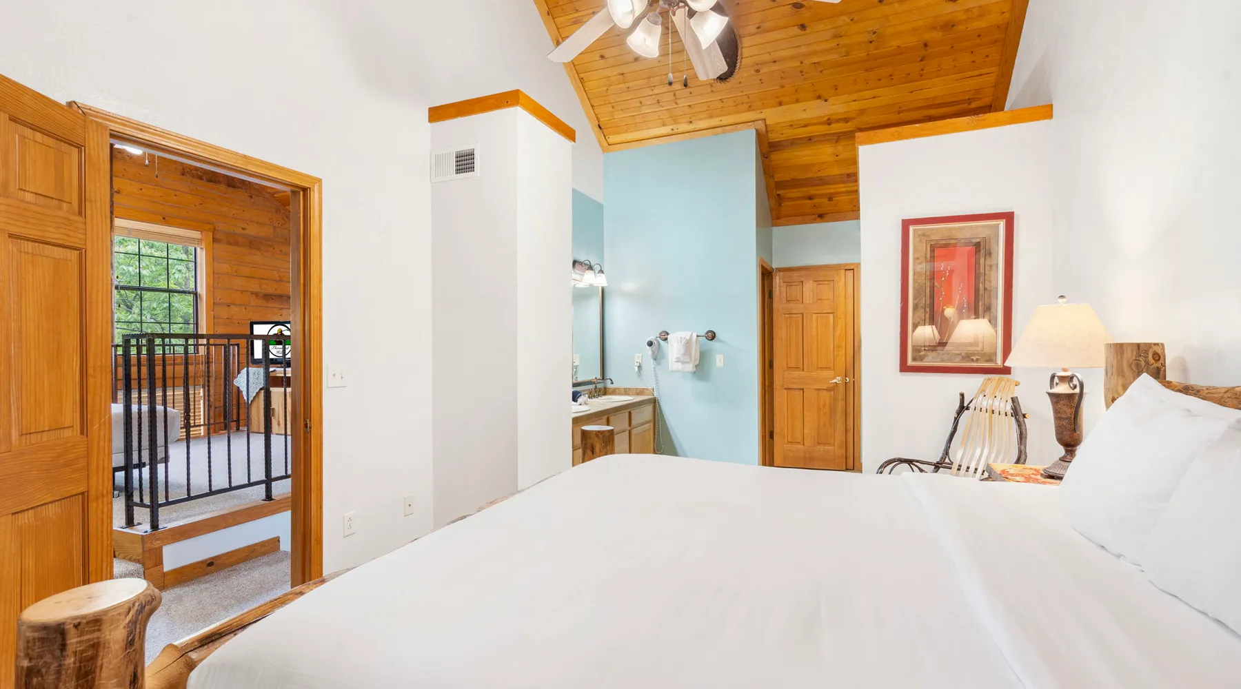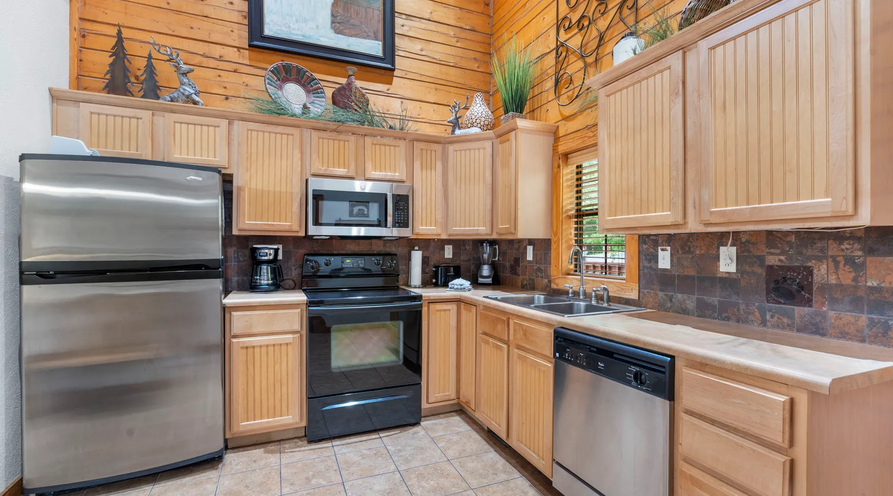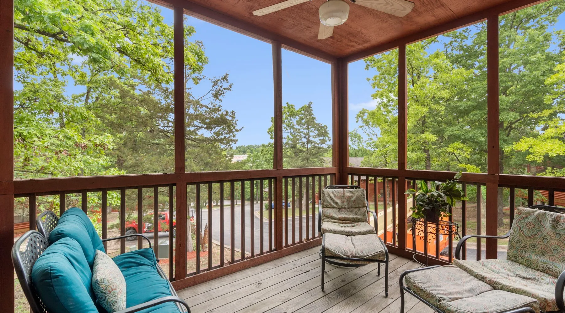 Unlock exclusive savings on popular Branson shows and attractions just for booking with us! See details below! Perfect for a larger family or group of friends of up to eight, this beautiful log cabin is located near Branson's famous Highway 76 strip and features everything you need for a comfortable stay. The spacious, open living area provides a cozy gas fireplace, a full kitchen with major appliances, a dining room, and a private, screened balcony. Each of the two bedrooms, king loft area, and living room include cable TV. The downstairs bedroom features a private bathroom entrance and jetted tub, and the upstairs bathroom features a double shower. Free wireless internet, an in-unit washer and dryer, and outdoor pool access included. Get 4 show or attraction tickets at deeply discounted rates when you book with us! Choose from over 30 of the hottest entertainment options the Live Entertainment Capital of the World has to offer! Just follow two easy steps: Complete the booking process. Send us a message to let us know you want the best savings in town! We beat all prices on Branson tickets - guaranteed!Shows and attractions sell out quickly, so we highly recommend that you contact us in advance of your stay to ensure the best seats! **Offer exclusive to guests of Thousand Hills Vacations. Activities are subject to availability and partners' participation is subject to change at any time.** Accommodations: Dryer, Meal delivery, Other Services Concierge, Other Services Private Chef, Wifi Amenities: Air Conditioning, Bed Linens, Cable/satellite TV, Clothing storage, Dryer, Essentials, Extra Pillows And Blankets, Fireplace, Free Wifi, Hair Dryer, Hangers, Heating, Internet, Internet Access, Iron, Iron Board, Linens provided, Parking, Parking space, Parking space Accessible, Private Entrance, Shampoo, Smart TV, TV, Towels, Towels provided, Washer Attractions: Autumn Foliage, Theme Parks, Water Parks Entertainment: Satellite or Cable Entertainment Options: Wi-Fi Kitchen and Dining: Baking sheet, Blender, Coffee, Coffee Maker, Cooking Basics, Dining Area, Dining table, Dishes Utensils, Dishwasher, Freezer, Fridge, Kitchen, Microwave, Oven, Refrigerator, Stove, Toaster, Wine glasses Leisure: Antiquing, Bird Watching, Boating, Bowling, Horse riding nearby, Miniature Golf, Outlet Shopping, Paddle Boating, Shopping, Water Sports, Wildlife Viewing Local Features: ATM Bank, Fitness Center, Groceries, Hospital, Laundromat, Resort access Outdoor: Balcony/Terrace, Grill Outdoor Amenities: Boat Access Nearby, Marina Nearby, Recreational Parks Nearby Pool/Spa: Outdoor pool shared Safety Features: Carbon Monoxide Detector, Fire Extinguisher, Outdoor Lighting, Smoke Detector Sports and Adventure: Cycling, Cycling trips, Fishing nearby, Golf, Golf Optional, Hiking, Hiking trips, Hot Air Ballooning, Jet Skiing, Kayaking, Parasailing, Sailing, Scuba or Snorkeling, Skiing Water, Snorkeling, Snorkeling / Diving, Swimming, Tennis courts nearby, Tubing Water, Watersports nearby Suitability: Air Conditioning, Children Welcome, Fireplace, Free Parking Vacation Rental Pool/Spa: Community Outdoor Pool