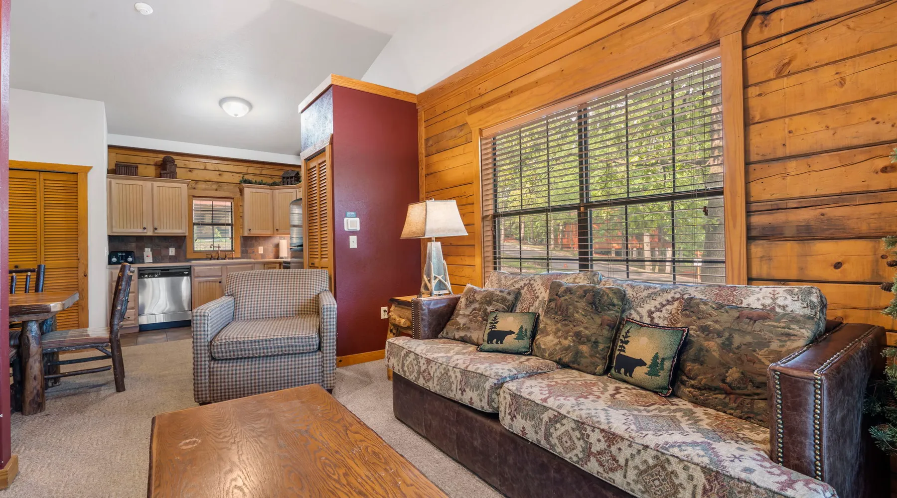 ✨ WOODED 2BR CABIN NEAR STRIP • CLOSE TO EVERYTHING • SLEEPS 6 • DISCOUNT SHOW & GOLF PERKS ━━━━━━━━━━━━━━━━━━━━━━━━━━━━━━━━━━ Tucked among the trees at Cabins at Grand Mountain Resort, this inviting 2-bedroom log cabin feels like a true Branson hideaway while sitting just 1 minute from Tanger Outlets and 2 minutes from Branson’s favorite shows, dining, and attractions. From the moment you arrive, the quiet, wooded setting, classic log exterior, and warm glow from the windows make it feel like your own little cabin in the woods—without giving up the convenience of being close to everything. Step inside to rich wood finishes, a striking floor-to-ceiling stone fireplace, and comfy furnishings that invite you to drop your bags and instantly relax. Mornings are made for sipping coffee on the covered back balcony, listening to the breeze move through the trees and watching the forest wake up around you. During the day, you’re perfectly placed to explore Branson—shop at Tanger, catch a show, grab dinner on the Strip, or take a quick drive to the lake—then head “home” to unwind. In the evening, sink into the jetted tub, enjoy a long, hot shower with double copper rainheads, or curl up in the living room for a cozy movie night. With two queen bedrooms, a sleeper sofa, two full bathrooms, and thoughtful touches like in-unit laundry, cable TV, free Wi-Fi, and a seasonal outdoor pool just a short walk away, this cabin is perfectly set up for families or small groups who want comfort, convenience, and that classic Branson cabin feel—all in one welcoming space. ━━━━━━━━━━━━━━━━━━━━━━━━━━━━━━━━━━ 🏠 PROPERTY OVERVIEW ✦ ✦ Classic log cabin with welcoming covered front porch in a quiet, wooded setting at Cabins at Grand Mountain 🌲 ✦ ✦ Open-concept living room with comfy seating, cable TV, free Wi-Fi, and a floor-to-ceiling stone fireplace 🛋️🔥 ✦ ✦ Fully equipped kitchen with adjacent dining area for shared meals and game nights 🍽️ ✦ ✦ Covered back balcony with seating and peaceful wooded views ✦ ✦ Two full bathrooms, in-unit washer/dryer, and access to the seasonal outdoor pool at Cabins at Grand Mountain 🏊♂️ ✦ ✦ Seasonal outdoor pool at Cabins at Grand Mountain, just a short walk from the cabin 🏊♂️ ━━━━━━━━━━━━━━━━━━━━━━━━━━━━━━━━━━ 🎟️ DISCOUNT SHOW TICKETS + EXCLUSIVE GOLF PERKS ✦ ✦ As a guest of Thousand Hills Vacations, you’ll have access to discounted tickets for select Branson shows and attractions 🎟️ ✦ ✦ Enjoy exclusive discounts on golf at Thousand Hills Golf Resort ⛳ ✦ ✦ Tickets are available for pickup on your arrival date or can be sent digitally ✦ ✦ We recommend reserving early — top shows and tee times fill fast! Offer subject to availability and participating partners. ━━━━━━━━━━━━━━━━━━━━━━━━━━━━━━━━━━ 🛌 SLEEPING ARRANGEMENTS ✦ ✦ Bedroom 1 – Queen: Cozy queen bed, TV, storage, and convenient access to a full bathroom featuring a jetted tub with step-in shower ✦ ✦ Bedroom 2 – Queen: Queen bed, TV, and nearby full bathroom with a step-in shower and double copper rainheads for a spa-like touch ✦ ✦ Living Room – Sleeper Sofa: Sleeper sofa in the main living area provides flexible sleeping space for kids or extra guests ✦ ✦ With two queen bedrooms and a sleeper sofa, this cabin comfortably sleeps up to 6. ━━━━━━━━━━━━━━━━━━━━━━━━━━━━━━━━━━ 📍 WHAT'S NEARBY ✦ ✦ Tanger Outlets – ~1 minute for shopping, snacks, and essentials 🛍️ ✦ ✦ Branson’s Famous Hwy 76 “Strip” – shows & dining – ~2 minutes 🎭🍽️ ✦ ✦ Thousand Hills Golf Resort – a short drive for discounted guest tee times ⛳ ✦ ✦ Branson Landing & Lake Taneycomo – ~10–12 minutes for waterfront dining, shopping, and fountain shows 🚤 ━━━━━━━━━━━━━━━━━━━━━━━━━━━━━━━━━━ 📝 THINGS TO KNOW ✦ ✦ This is a no-pet, no-smoking property. 🚭🐾 Violations may result in additional cleaning fees or eviction without refund. ✦ ✦ Resort amenities and common areas, including the seasonal outdoor pool, are managed by the HOA/association. Occasional maintenance or temporary closures may occur. Thousand Hills Vacations is not responsible for third-party amenity availability. ✦ ✦ Limit of 2 unassigned parking spaces. ✦ ✦ The propane fireplace is seasonal, typically available Nov to mid March. Set in a quiet, wooded cabin community just moments from the Strip, this Grand Mountain hideaway delivers the private cabin feel you want with the in-town convenience you’ll love. Accessibility Features: Walk-In Level or Ramp Access Accommodations: Dryer, Meal delivery, Other Services Concierge, Other Services Private Chef, Tumble dryer, Wifi Amenities: Air Conditioning, Bed Linens, Cable/satellite TV, Clothing storage, Dryer, Essentials, Extra Pillows And Blankets, Fireplace, Free Wifi, Hair Dryer, Hangers, Heating, Internet, Internet Access, Iron, Iron Board, Linens provided, Parking, Parking space, Parking space Accessible, Private Entrance, Shampoo, Smart TV, TV, Towels, Towels provided, Washer Attractions: Autumn Foliage, Theme Parks, Water Parks Entertainment: Satellite or Cable Entertainment Options: Wi-Fi Kitchen and Dining: Blender, Coffee, Coffee Maker, Cooking Basics, Dining Area, Dining table, Dishes Utensils, Dishwasher, Fridge, Kitchen, Microwave, Oven, Refrigerator, Stove, Toaster, Wine glasses Leisure: Antiquing, Bird Watching, Boating, Bowling, Horse riding nearby, Miniature Golf, Outlet Shopping, Paddle Boating, Shopping, Water Sports, Wildlife Viewing L
