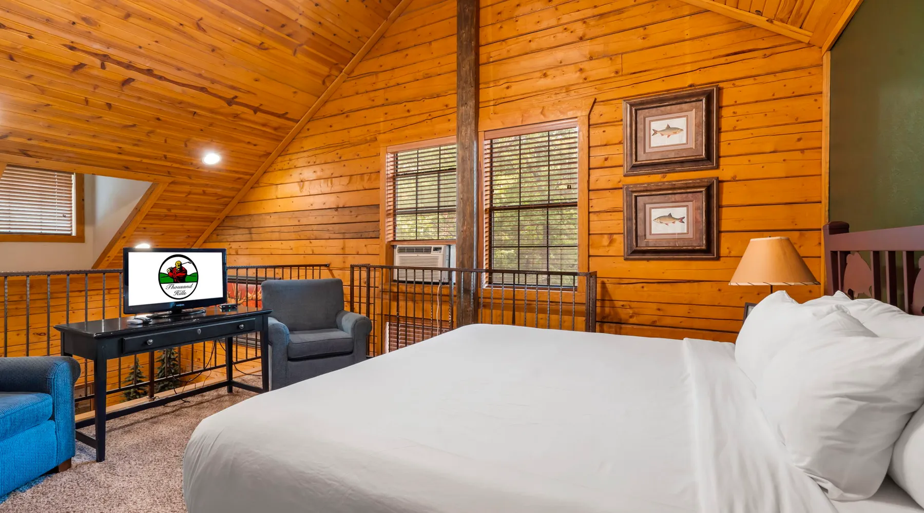 Unlock exclusive savings on popular Branson shows and attractions just for booking with us! See details below! With a rustic feel with plenty of modern amenities, this walk-in cabin has everything you need for a memorable Branson vacation. Enjoy your morning coffee on a screened-in balcony with a gorgeous view of Ozarkian nature, or curl up by the fireplace while spending quality time with your loved ones. Excellent for a larger family or group, this luxury log cabin features two bedrooms and a loft, a fully-equipped kitchen and dining room, and a cozy living room with a fireplace, cable TV/DVD, and a queen-size sofa bed. An in-unit washer and dryer, free wireless internet, and seasonal outdoor pool access are included with your stay. Get 4 show or attraction tickets at deeply discounted rates when you book with us! Choose from over 30 of the hottest entertainment options the Live Entertainment Capital of the World has to offer! Just follow two easy steps: Complete the booking process. Send us a message to let us know you want the best savings in town! We beat all prices on Branson tickets - guaranteed!Shows and attractions sell out quickly, so we highly recommend that you contact us in advance of your stay to ensure the best seats! **Offer exclusive to guests of Thousand Hills Vacations. Activities are subject to availability and partners' participation is subject to change at any time.** Accessibility Features: Walk-In Level or Ramp Access Accommodations: Dryer, Meal delivery, Other Services Concierge, Other Services Private Chef, Wifi Additional Filters: Traditions Collection Amenities: Air Conditioning, Bed Linens, Cable/satellite TV, Clothing storage, Dryer, Essentials, Extra Pillows And Blankets, Fireplace, Free Wifi, Hair Dryer, Hangers, Heating, Internet, Internet Access, Iron, Iron Board, Linens provided, Parking, Parking space, Parking space Accessible, Private Entrance, Shampoo, Smart TV, TV, Towels, Towels provided, Washer Attractions: Autumn Foliage, Theme Parks, Water Parks Entertainment: Satellite or Cable Entertainment Options: Wi-Fi Kitchen and Dining: Baking sheet, Blender, Coffee, Coffee Maker, Cooking Basics, Dining Area, Dining table, Dishes Utensils, Dishwasher, Freezer, Fridge, Kitchen, Microwave, Oven, Refrigerator, Stove, Toaster, Wine glasses Leisure: Antiquing, Bird Watching, Boating, Bowling, Horse riding nearby, Miniature Golf, Outlet Shopping, Paddle Boating, Shopping, Water Sports, Wildlife Viewing Local Features: ATM Bank, Fitness Center, Groceries, Hospital, Laundromat, Resort access Outdoor: Balcony/Terrace, Grill Outdoor Amenities: Boat Access Nearby, Marina Nearby, Recreational Parks Nearby Pool/Spa: Outdoor pool shared Safety Features: Carbon Monoxide Detector, Fire Extinguisher, Outdoor Lighting, Smoke Detector Sports and Adventure: Cycling, Cycling trips, Fishing nearby, Golf, Golf Optional, Hiking, Hiking trips, Hot Air Ballooning, Jet Skiing, Kayaking, Parasailing, Sailing, Scuba or Snorkeling, Skiing Water, Snorkeling, Snorkeling / Diving, Swimming, Tennis courts nearby, Tubing Water, Watersports nearby Suitability: Air Conditioning, Children Welcome, Decked area, Fireplace, Free Parking Vacation Rental Pool/Spa: Community Outdoor Pool