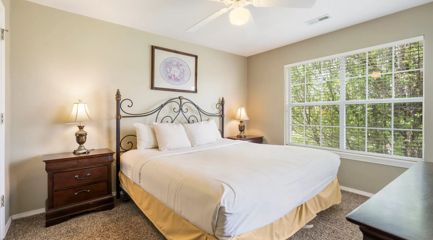 Enjoy exclusive savings on popular Branson shows and attractions just for booking with us! See details below! Ideal for a couple or family up to four, this walk-in one-bedroom condo is located on our award-winning golf course. A spacious living area offers a fully-equipped kitchen, dining table, living room with cable TV, a sofa bed, and a sunroom with a lovely view. The bedroom features a king-size bed, sunroom access, cable TV, and a private bathroom. An in-unit washer and dryer, free wireless internet, and seasonal outdoor pool access are included with your stay. This is a ground-level, 2nd floor unit with walk-in access from parking and no elevator access. Get 4 show or attraction tickets at deeply discounted rates when you book with us! Choose from over 30 of the hottest entertainment options the Live Entertainment Capital of the World has to offer! Just follow two easy steps: Complete the booking process. Send us a message to let us know you want the best savings in town! We beat all prices on Branson tickets - guaranteed!Shows and attractions sell out quickly, so we highly recommend that you contact us in advance of your stay to ensure the best seats! **Offer exclusive to guests of Thousand Hills Vacations. Activities are subject to availability and partners' participation is subject to change at any time.** Accessibility Features: Walk-In Level or Ramp Access Accommodations: Dryer, Meal delivery, Other Services Concierge, Other Services Private Chef, Tumble dryer, Wifi Amenities: Air Conditioning, Bed Linens, Cable/satellite TV, Clothing storage, Dryer, Essentials, Extra Pillows And Blankets, Free Wifi, Hair Dryer, Hangers, Heating, Internet, Internet Access, Iron, Iron Board, Linens provided, Parking, Parking space, Parking space Accessible, Private Entrance, Shampoo, Smart TV, TV, Towels, Towels provided, Washer Entertainment: Satellite or Cable Entertainment Options: Wi-Fi Kitchen and Dining: Baking sheet, Blender, Coffee, Coffee Maker, Cooking Basics, Dining Area, Dining table, Dishes Utensils, Dishwasher, Freezer, Fridge, Kitchen, Microwave, Oven, Refrigerator, Stove, Wine glasses Leisure: Boating, Outlet Shopping, Shopping, Water Sports Local Features: ATM Bank, Fitness Center, Groceries, Hospital, Laundromat, Resort access Outdoor Amenities: Boat Access Nearby, Marina Nearby, Recreational Parks Nearby Pool/Spa: Outdoor pool shared Safety Features: Carbon Monoxide Detector, Fire Extinguisher, Smoke Detector Sports and Adventure: Cycling, Cycling trips, Fishing nearby, Golf, Golf Optional, Hiking, Hiking trips, Hot Air Ballooning, Jet Skiing, Kayaking, Parasailing, Sailing, Scuba or Snorkeling, Skiing Water, Snorkeling, Snorkeling / Diving, Swimming, Tennis courts nearby, Tubing Water, Watersports nearby Suitability: Air Conditioning, Children Welcome, Free Parking Vacation Rental Pool/Spa: Community Outdoor Pool