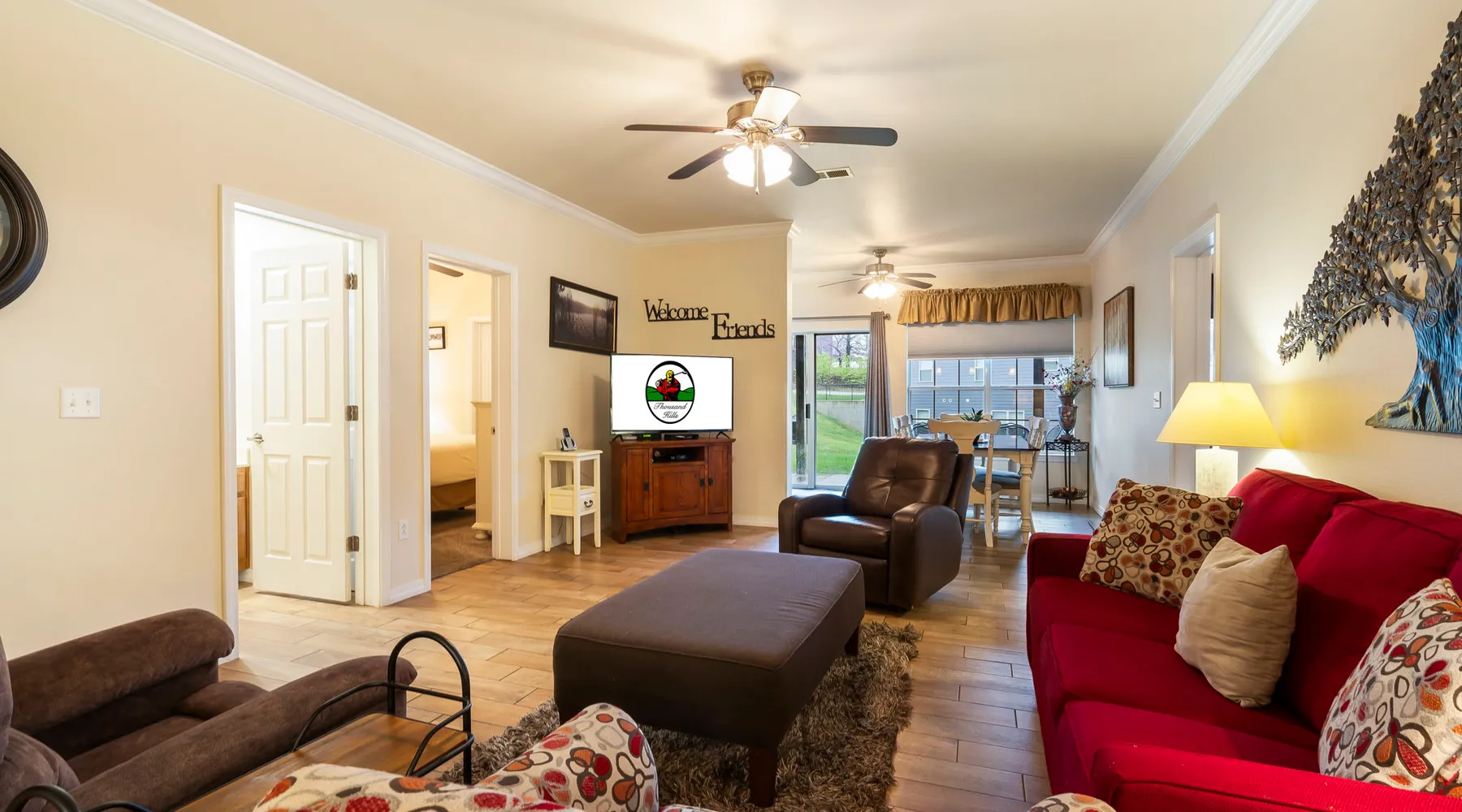 β¨ LEGACY RETREAT β’ 4BR GOLF CONDO β’ SLEEPS 10 β’ INDOOR POOL ACCESS πββοΈ β’ DISCOUNT TICKETS & GOLF ββββββββββββββββββββββββββββββββββ π Welcome to your Branson getaway at The Legacy at Thousand Hills! This spacious 4-bedroom condo is the perfect retreat for larger families or groups of friends, offering comfort, convenience, and a location that canβt be beat. Just minutes from Bransonβs world-famous shows, attractions, and dining, and right by the Thousand Hills Clubhouse, this retreat gives you the best of both relaxation and entertainment. ββββββββββββββββββββββββββββββββββ π PROPERTY OVERVIEW β¦ β¦ Comfortable living room with sofa sleeper, β¦ β¦ Fully equipped kitchen + dining area for group meals β¦ β¦ Private patio for morning coffee or evening unwinding β¦ β¦ In-unit washer & dryerΒ β¦ β¦ Cable TV andΒ free WiFi throughout the condo ββββββββββββββββββββββββββββββββββ ποΈ DISCOUNT SHOW TICKETS + EXCLUSIVE GOLF PERKS As a guest of Thousand Hills Vacations, you can enjoy: β¦ β¦ Discounts on over 30 top Branson shows and attractions ποΈ β¦ β¦ Exclusive golf discounts at Thousand Hills Golf Resort β³ β¦ β¦ Tickets available for pickup on your arrival date or sent digitally Reserve early β top shows and tee times fill fast! ββββββββββββββββββββββββββββββββββ π SLEEPING ARRANGEMENTS β¦ β¦ Master Suite β King bed β’ TV β’ En suite bath with jetted tub β¦ β¦ Bedroom 2 β King bed β’ TV β’ En suite bath + kitchenette with sink & mini-fridge β¦ β¦ Bedroom 3 β King bed β’ TV β’ En suite bath β¦ β¦ Bedroom 4 β King bed β’ TV β’ En suite bath β¦ β¦ Additional β Sofa sleeper in living room (sleeps 2) ββββββββββββββββββββββββββββββββββ πWHAT'S NEARBY β³ Thousand Hills Golf Course & Clubhouse (next door) π 3 min β’ Aquarium at the Boardwalk π 3 min β’ Branson Strip (Highway 76 shows & dining) ποΈ 4 min β’ Tanger Outlets π΄ 7 min β’ Dolly Partonβs Stampede π 10 min β’ Branson Landing & Lake Taneycomo π 15 min β’ Table Rock Lake marinas & boating π’ 20 min β’ Silver Dollar City ββββββββββββββββββββββββββββββββββ π THINGS TO KNOW β¦ β¦ Garden Terrace level unit β’ one set of stairs down to enter β’ no elevator access β¦ β¦ Free self-parking (limit 2 vehicles per reservation) β¦ β¦ Indoor pool available on-site β’ typically closed Januaryβmid-March (off-site alternative may be available) β¦ β¦ The reservation holder must be at least 21 years of age and be present at check-in with valid photo ID This is the perfect location for guests wanting quick access to Branson shows, shopping, and activities β while still enjoying peaceful golf views at the end of the day. Accessibility Features: Elevator Access Accommodations: Dryer, Meal delivery, Other Services Concierge, Other Services Private Chef, Tumble dryer, Wifi Amenities: Air Conditioning, Bed Linens, Cable/satellite TV, Clothing storage, Dryer, Elevator, Essentials, Extra Pillows And Blankets, Free Wifi, Hair Dryer, Hangers, Heating, Internet, Internet Access, Iron, Iron Board, Linens provided, Parking, Parking space, Parking space Accessible, Private Entrance, Shampoo, Smart TV, TV, Towels, Towels provided, Washer Entertainment: Satellite or Cable Entertainment Options: Wi-Fi Kitchen and Dining: Baking sheet, Blender, Coffee, Coffee Maker, Cooking Basics, Dining Area, Dining table, Dishes Utensils, Dishwasher, Freezer, Fridge, Kitchen, Microwave, Oven, Refrigerator, Stove, Toaster, Wine glasses Leisure: Boating, Outlet Shopping, Shopping, Water Sports Local Features: ATM Bank, Fitness Center, Groceries, Hospital, Laundromat, Resort access Outdoor Amenities: Boat Access Nearby, Marina Nearby, Recreational Parks Nearby Pool/Spa: Indoor Pool, Indoor pool shared Safety Features: Carbon Monoxide Detector, Fire Extinguisher, Smoke Detector Sports and Adventure: Cycling, Cycling trips, Fishing nearby, Golf, Golf Optional, Hiking, Hiking trips, Hot Air Ballooning, Jet Skiing, Kayaking, Parasailing, Sailing, Scuba or Snorkeling, Skiing Water, Snorkeling, Snorkeling / Diving, Swimming, Tennis courts nearby, Tubing Water, Watersports nearby Suitability: Air Conditioning, Children Welcome, Free Parking Vacation Rental Pool/Spa: Community Indoor Pool
