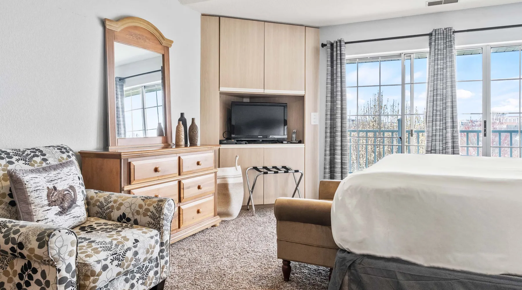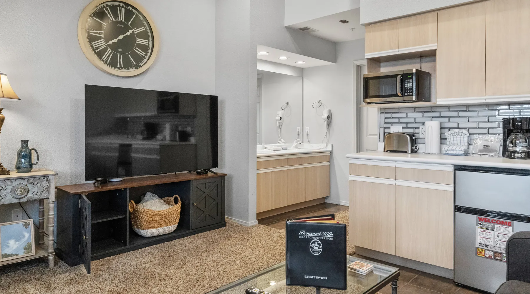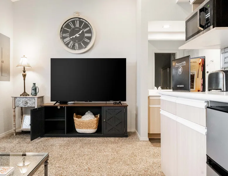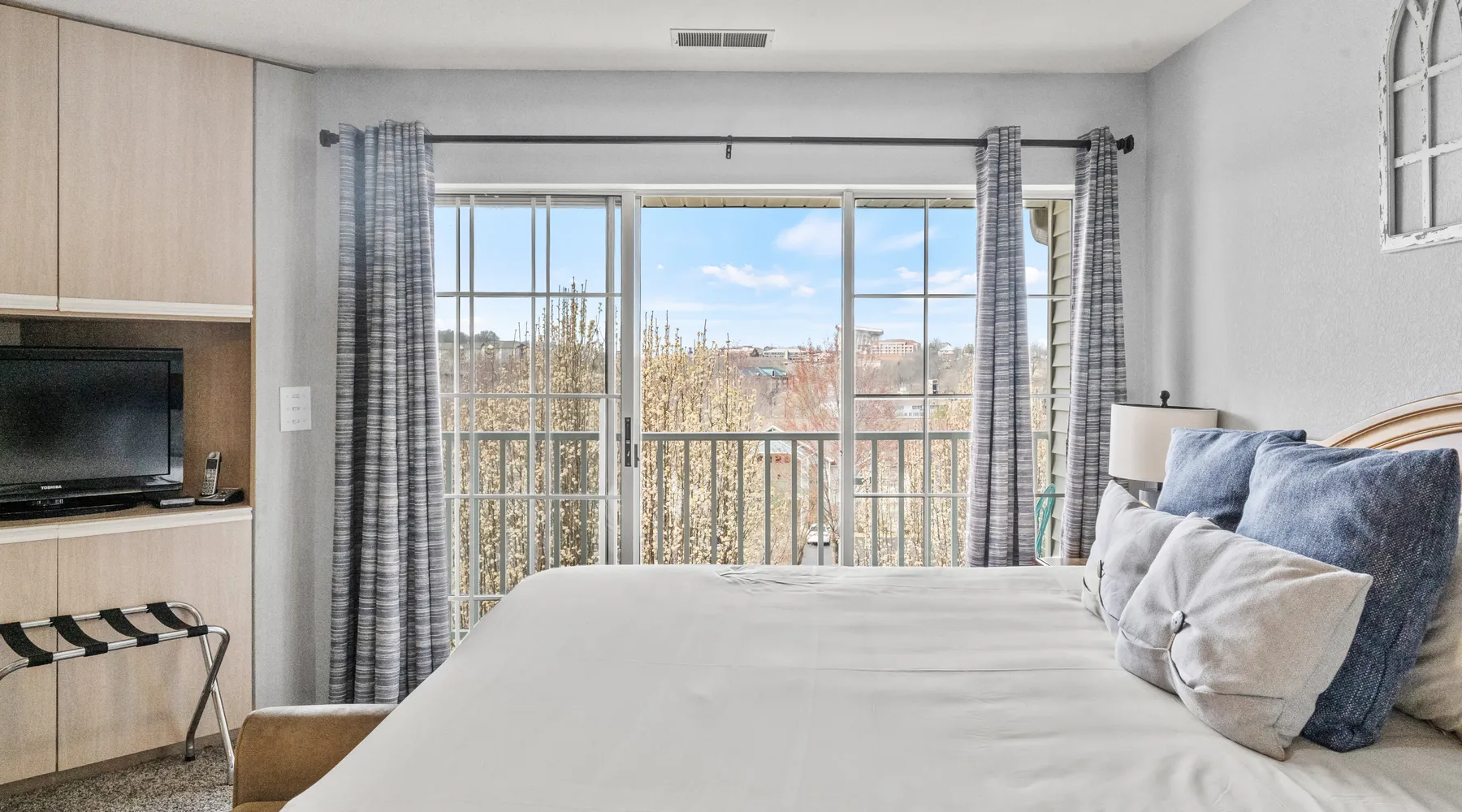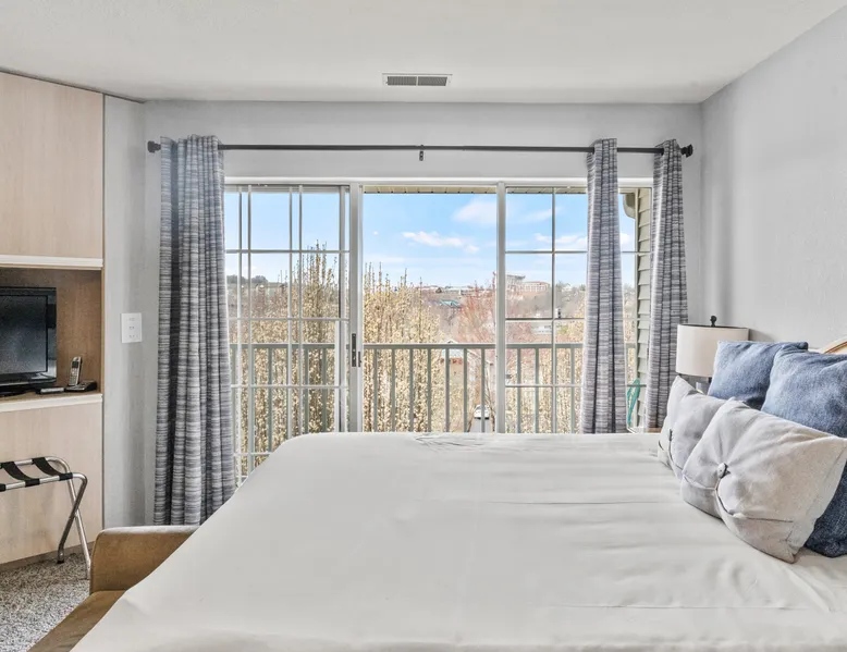 Unlock exclusive savings on popular Branson shows and attractions just for booking with us! See details below! This king suite condo is perfect for a honeymoon or a romantic getaway! Enjoy a soak in the whirlpool tub for two or relax on the private, covered balcony with a lovely view of the property. This unit includes a kitchenette with a refrigerator and microwave and a queen-size sofa bed. Free wireless internet and seasonal outdoor pool access are included with your stay. This is a 3rd floor unit with two sets of stairs up to enter and no elevator access. Get 4 show or attraction tickets at deeply discounted rates when you book with us! Choose from over 30 of the hottest entertainment options the Live Entertainment Capital of the World has to offer! Just follow two easy steps: Complete the booking process. Send us a message to let us know you want the best savings in town! We beat all prices on Branson tickets - guaranteed!Shows and attractions sell out quickly, so we highly recommend that you contact us in advance of your stay to ensure the best seats! **Offer exclusive to guests of Thousand Hills Vacations. Activities are subject to availability and partners' participation is subject to change at any time.** Accommodations: Meal delivery, Other Services Concierge, Other Services Private Chef, Wifi Amenities: Air Conditioning, Bed Linens, Cable/satellite TV, Clothing storage, Essentials, Extra Pillows And Blankets, Free Wifi, Hair Dryer, Hangers, Heating, Internet, Internet Access, Iron, Iron Board, Linens provided, Parking, Parking space, Parking space Accessible, Private Entrance, Shampoo, Smart TV, TV, Towels, Towels provided, Washer Entertainment: Satellite or Cable Entertainment Options: Wi-Fi Kitchen and Dining: Baking sheet, Blender, Coffee, Coffee Maker, Cooking Basics, Dining Area, Dining table, Dishes Utensils, Freezer, Fridge, Microwave, Refrigerator, Toaster, Wine glasses Leisure: Boating, Miniature Golf, Outlet Shopping, Shopping, Water Sports Local Features: ATM Bank, Fitness Center, Groceries, Hospital, Laundromat, Resort access Outdoor: Balcony/Terrace Outdoor Amenities: Boat Access Nearby, Marina Nearby, Recreational Parks Nearby Pool/Spa: Outdoor pool shared Safety Features: Carbon Monoxide Detector, Fire Extinguisher, Smoke Detector Sports and Adventure: Cycling, Cycling trips, Fishing nearby, Golf, Golf Optional, Golf course within 30 min drive, Hiking, Hiking trips, Hot Air Ballooning, Jet Skiing, Kayaking, Parasailing, Sailing, Scuba or Snorkeling, Skiing Water, Snorkeling, Snorkeling / Diving, Swimming, Tennis courts nearby, Tubing Water, Watersports nearby Suitability: Air Conditioning, Children Welcome, Free Parking Vacation Rental Pool/Spa: Community Outdoor Pool