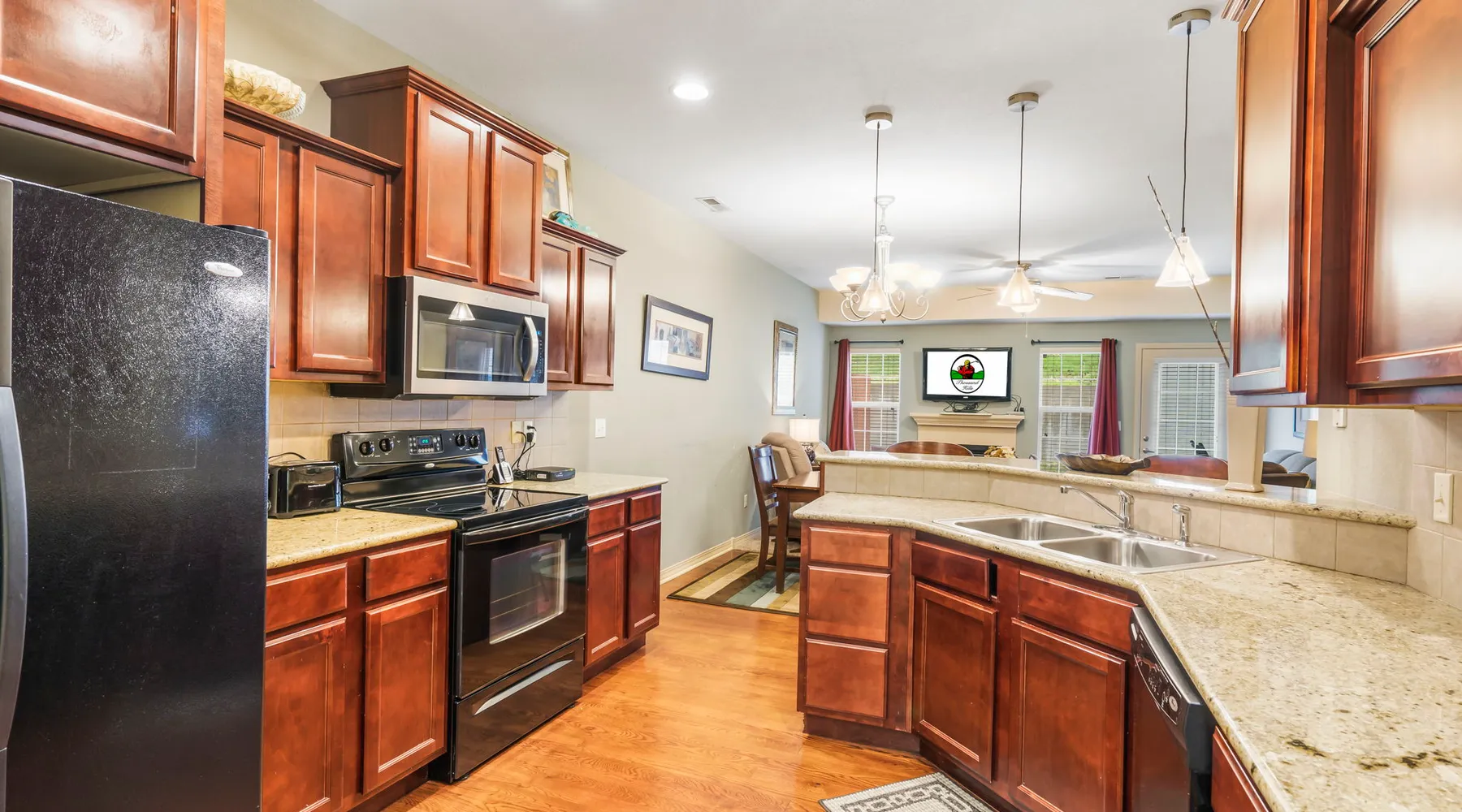✨ LOVELY 3BR TOWNHOUSE • PERFECT FOR FAMILIES & GROUPS • SLEEPS 8 • PRIVATE PATIO + GRILL ━━━━━━━━━━━━━━━━━━━━━━━━━━━━━━━━━━ Enjoy your Branson stay in this charming three-bedroom, two-and-a-half-bath townhouse! 🏡 Designed with families and groups in mind, this home comfortably accommodates up to eight guests and provides the perfect balance of privacy and shared spaces. Step inside and you’ll find a spacious, open-concept main level where everyone can gather. The living room offers cozy seating around the gas fireplace 🔥 and flows easily into the kitchen and dining area — making it just as simple to cook up family meals as it is to chat over morning coffee ☕. A convenient half bath on this level adds to the comfort. From the dining space, step outside to your private patio 🌳, complete with outdoor seating 🪑 and a propane grill 🍖, where you can enjoy cookouts or simply unwind in the fresh Ozarks air. The ground-floor master suite is a private retreat, featuring a king bed and an ensuite bathroom with both a walk-in shower 🚿 and a relaxing jetted tub 🛁. Upstairs, two more bedrooms provide plenty of space for everyone. One offers a king bed, while the other includes a queen — both with their own vanities and shared access to a Jack and Jill bathroom with a tub/shower combo 🚿🛁. A queen-size sleeper sofa in the living room adds extra sleeping space for larger groups. While the townhouse itself offers everything you need for a comfortable stay, the location makes it even better. Nestled just minutes from Thousand Hills Golf Resort ⛳, Tanger Outlets 🛍️, and Branson’s famous Highway 76 Entertainment District 🎶, you’ll be close to some of the best dining 🍴, shopping, and live shows 🎭 in town. A quick drive takes you to Branson Landing 🌊 or Table Rock Lake 🚤, while Silver Dollar City 🎢 is just 20 minutes away. With so much nearby, you can maximize your fun without spending your vacation time on long drives. After a day exploring the sights, you’ll appreciate conveniences like in-unit laundry 👕, free WiFi 📶, and secure parking for up to 3 vehicles 🚗 (2 in the garage, 1 in the driveway). Guests also enjoy access to the community’s seasonal outdoor pool 💦, just a short walk from your door. Whether you’re here for golf, shows, shopping, or simply relaxing, this townhouse is the perfect base for your Branson getaway. ✨ ━━━━━━━━━━━━━━━━━━━━━━━━━━━━━━━━━━ 🛏️ SLEEPING ARRANGEMENTS • Sleeps 8 ✦ ✦ Bedroom 1 (Main Level): King bed 🛏️ with private ensuite bath (shower 🚿 + jetted tub 🛁) ✦ ✦ Bedroom 2 (Upper Level): King bed 🛏️ with shared Jack & Jill bath access (tub/shower combo 🚿🛁 + private vanity) ✦ ✦ Bedroom 3 (Upper Level): Queen bed 🛏️ with shared Jack & Jill bath access (tub/shower combo 🚿🛁 + private vanity) ✦ ✦ Living Room (Main Level): Queen sleeper sofa 🛋️ ✦ ✦ Main Level Half Bath 🚻 ━━━━━━━━━━━━━━━━━━━━━━━━━━━━━━━━━━ 🍳 KITCHEN & DINING ✦ ✦ Full kitchen with full-size appliances, cookware & dishes 🍴 ✦ ✦ Small appliances: coffee maker ☕, toaster, & blender ✦ ✦ Dining area with seating for the group 🍽️ ━━━━━━━━━━━━━━━━━━━━━━━━━━━━━━━━━━ 📺 ENTERTAINMENT & AMENITIES ✦ ✦ Free WiFi 📶 ✦ ✦ Gas fireplace 🔥 in living room ✦ ✦ Private patio with outdoor seating 🪑 & propane grill 🍖 ✦ ✦ In-unit washer & dryer 👕 ✦ ✦ Attached 2-car garage with remote access 🚗 (3 vehicles total allowed with driveway) ━━━━━━━━━━━━━━━━━━━━━━━━━━━━━━━━━━ 💦 OUTDOOR FEATURES ✦ ✦ Seasonal outdoor pool (short walking distance) 🏊♂️ ✦ ✦ Private patio with seating 🪑 & propane grill 🍖 ✦ ✦ Quiet, family-friendly neighborhood 🏘️ ✦ ✦ Convenient access to Branson’s top attractions 🎶 ━━━━━━━━━━━━━━━━━━━━━━━━━━━━━━━━━━ 📍 WHAT’S NEARBY ✦ ✦ Thousand Hills Golf Resort – 2 minutes ⛳ ✦ ✦ Branson’s Entertainment District – 5 minutes 🎭 ✦ ✦ Tanger Outlets – 5 minutes 🛍️ ✦ ✦ Branson Landing – 10 minutes 🌊 ✦ ✦ Table Rock Lake – 15 minutes 🚤 ✦ ✦ Silver Dollar City – 20 minutes 🎢 ━━━━━━━━━━━━━━━━━━━━━━━━━━━━━━━━━━ 🎟️ DISCOUNTED SHOW TICKETS + GOLF PERKS As a guest of Thousand Hills Vacations, you’ll enjoy: ✦ ✦ Exclusive discounts on Branson’s top shows & attractions 🎶🎟️ ✦ ✦ Special guest-only perks at Thousand Hills Golf Resort ⛳ ✦ ✦ Tickets available at check-in or delivered digitally 📲 Availability is limited — book early to secure your preferred shows and tee times! ━━━━━━━━━━━━━━━━━━━━━━━━━━━━━━━━━━ 📝 THINGS TO KNOW ✦ ✦ Multi-level unit — stairs required to access upstairs bedrooms 🪜 ✦ ✦ Free parking in garage & driveway (limit 3 vehicles) 🚗 ✦ ✦ Seasonal outdoor pool is typically available Memorial Day through Labor Day 💦 Accessibility Features: Walk-In Level or Ramp Access Accommodations: Dryer, Meal delivery, Other Services Concierge, Other Services Private Chef, Tumble dryer, Wifi Amenities: Air Conditioning, Bed Linens, Cable/satellite TV, Clothing storage, Dryer, Essentials, Extra Pillows And Blankets, Fireplace, Free Wifi, Garage, Hair Dryer, Hangers, Heating, Internet, Internet Access, Iron, Iron Board, Linens provided, Parking, Parking space, Parking space Accessible, Private Entrance, Shampoo, Smart TV, TV, Towels, Towels provided