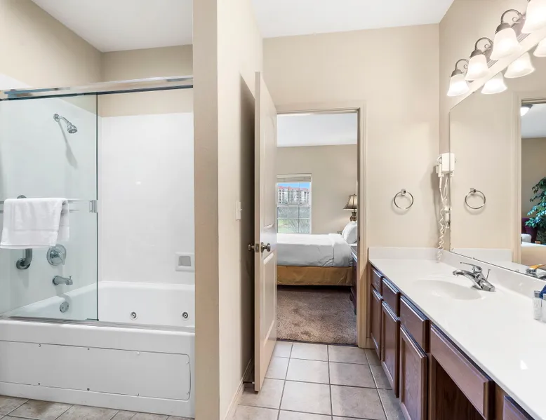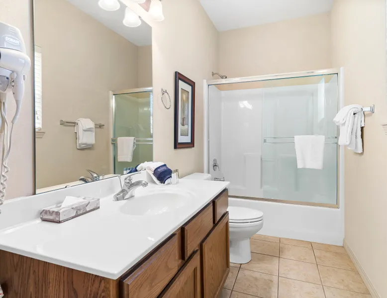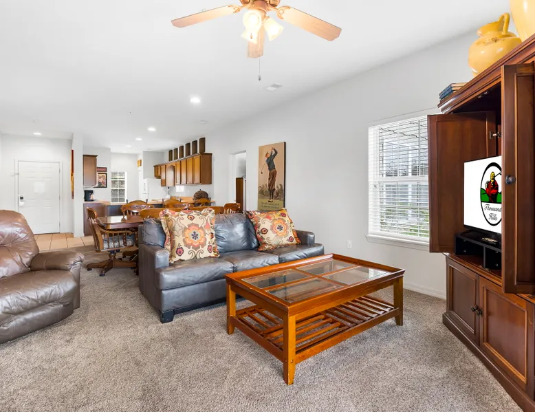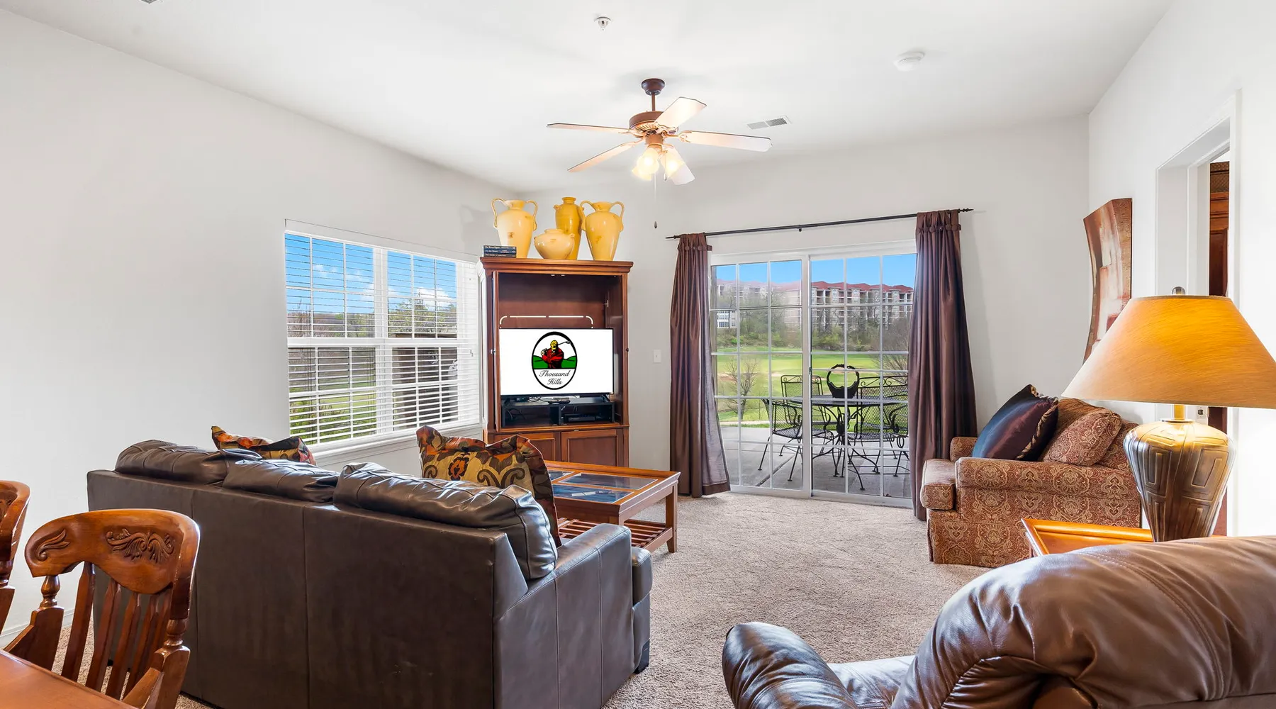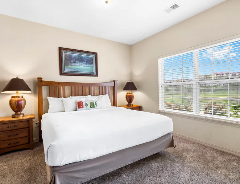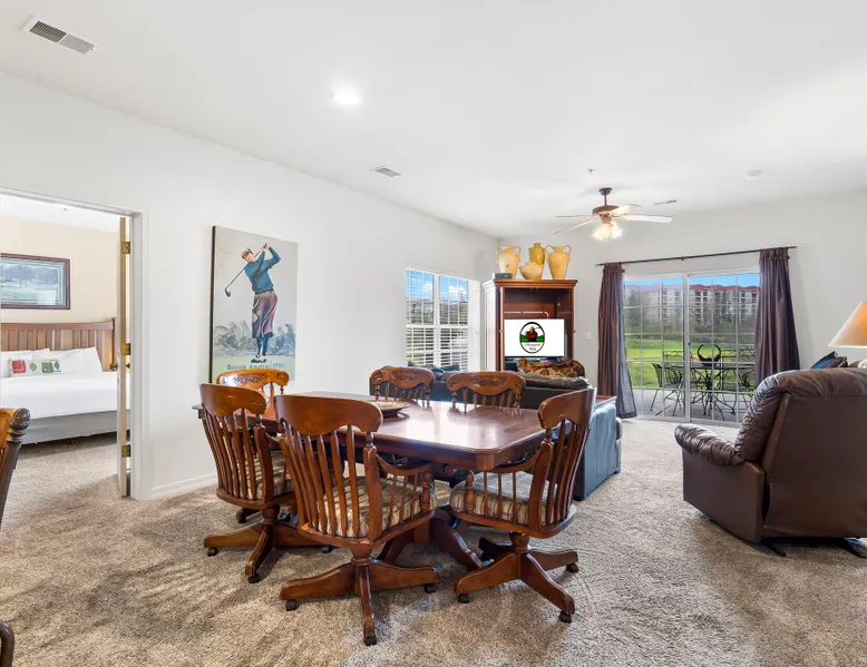 Enjoy exclusive savings on popular Branson shows and attractions just for booking with us! See details below! Located on our award-winning golf course and just a few minutes from Branson shows and attractions, this three-bedroom condominium is perfect for a larger family or group of up to eight. It offers a full kitchen, dining area, a living room with cable TV/DVD and a queen-size sofa bed, and a private patio with a view of the course. Each bedroom includes a king bed, cable TV, and a private bathroom. The master bedroom features a jetted tub and patio access. Enjoy an in-unit washer and dryer, free wireless internet, and seasonal outdoor pool access during your stay. This is a Garden Terrace level unit with one set of stairs down to enter. While the floor on which this unit is located is accessible by elevator, the unit is not close to the elevator and may not be suitable for persons with mobility concerns. Get 4 show or attraction tickets for only $119 PLUS free Shepherd of the Hills Inspiration Tower passes when you book with us! Choose from over 30 of the hottest entertainment options the Live Entertainment Capital of the World has to offer! Just follow two easy steps: 1.) Complete the booking process. 2.) Send us a message to let us know you want the best savings in town! We beat all prices on Branson tickets - guaranteed! Shows and attractions sell out quickly, so we highly recommend that you contact us in advance of your stay to ensure the best seats! **Offer exclusive to guests of Thousand Hills Vacations. Activities are subject to availability and partners' participation is subject to change at any time.** Accessibility Features: Elevator Access Accommodations: Dryer, Meal delivery, Other Services Concierge, Other Services Private Chef, Tumble dryer, Wifi Amenities: Air Conditioning, Bed Linens, Cable/satellite TV, Clothing storage, Dryer, Elevator, Essentials, Extra Pillows And Blankets, Free Wifi, Hair Dryer, Hangers, Heating, Internet, Internet Access, Iron, Iron Board, Linens provided, Parking, Parking space, Parking space Accessible, Private Entrance, Shampoo, Smart TV, TV, Towels, Towels provided, Washer Entertainment: Satellite or Cable Entertainment Options: Wi-Fi Kitchen and Dining: Baking sheet, Blender, Coffee, Coffee Maker, Cooking Basics, Dining Area, Dining table, Dishes Utensils, Dishwasher, Freezer, Fridge, Kitchen, Microwave, Oven, Refrigerator, Stove, Toaster, Wine glasses Leisure: Boating, Miniature Golf, Outlet Shopping, Shopping, Water Sports Local Features: ATM Bank, Fitness Center, Groceries, Hospital, Laundromat, Resort access Outdoor Amenities: Boat Access Nearby, Marina Nearby, Recreational Parks Nearby Pool/Spa: Outdoor pool shared Safety Features: Carbon Monoxide Detector, Fire Extinguisher, Outdoor Lighting, Smoke Detector Sports and Adventure: Basketball Court, Cycling, Cycling trips, Fishing nearby, Golf, Golf Optional, Hiking, Hiking trips, Hot Air Ballooning, Jet Skiing, Kayaking, Parasailing, Sailing, Scuba or Snorkeling, Skiing Water, Snorkeling, Snorkeling / Diving, Swimming, Tennis courts nearby, Tubing Water, Watersports nearby Suitability: Air Conditioning, Children Welcome, Free Parking Vacation Rental Pool/Spa: Community Outdoor Pool