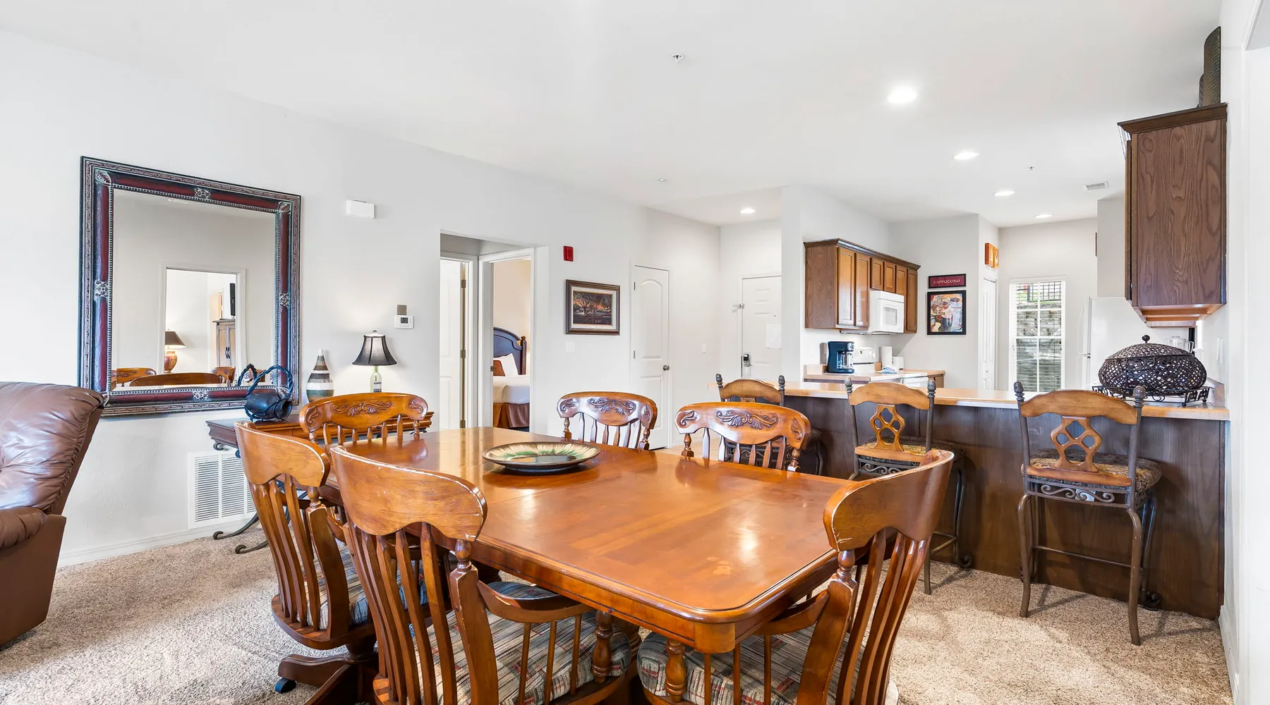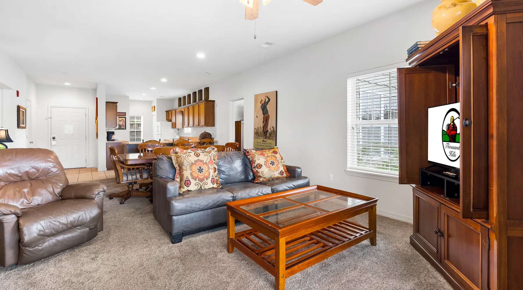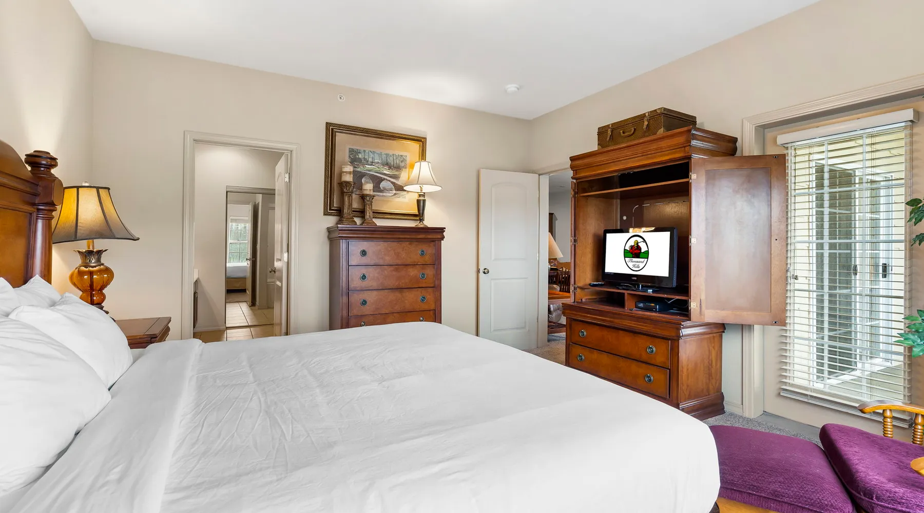 Enjoy exclusive savings on popular Branson shows and attractions just for booking with us! See details below! Located on our award-winning golf course and just a few minutes from Branson shows and attractions, this three-bedroom condominium is perfect for a larger family or group of up to eight. It offers a full kitchen, dining area, a living room with cable TV/DVD and a queen-size sofa bed, and a private patio with a view of the course. Each bedroom includes a king bed, cable TV, and a private bathroom. The master bedroom features a jetted tub and patio access. Enjoy an in-unit washer and dryer, free wireless internet, and seasonal outdoor pool access during your stay. This is a Garden Terrace level unit with one set of stairs down to enter. While the floor on which this unit is located is accessible by elevator, the unit is not close to the elevator and may not be suitable for persons with mobility concerns. Get 4 show or attraction tickets for only $119 PLUS free Shepherd of the Hills Inspiration Tower passes when you book with us! Choose from over 30 of the hottest entertainment options the Live Entertainment Capital of the World has to offer! Just follow two easy steps: 1.) Complete the booking process. 2.) Send us a message to let us know you want the best savings in town! We beat all prices on Branson tickets - guaranteed! Shows and attractions sell out quickly, so we highly recommend that you contact us in advance of your stay to ensure the best seats! **Offer exclusive to guests of Thousand Hills Vacations. Activities are subject to availability and partners' participation is subject to change at any time.** Accessibility Features: Elevator Access Accommodations: Dryer, Meal delivery, Other Services Concierge, Other Services Private Chef, Tumble dryer, Wifi Amenities: Air Conditioning, Bed Linens, Cable/satellite TV, Clothing storage, Dryer, Elevator, Essentials, Extra Pillows And Blankets, Free Wifi, Hair Dryer, Hangers, Heating, Internet, Internet Access, Iron, Iron Board, Linens provided, Parking, Parking space, Parking space Accessible, Private Entrance, Shampoo, Smart TV, TV, Towels, Towels provided, Washer Entertainment: Satellite or Cable Entertainment Options: Wi-Fi Kitchen and Dining: Baking sheet, Blender, Coffee, Coffee Maker, Cooking Basics, Dining Area, Dining table, Dishes Utensils, Dishwasher, Freezer, Fridge, Kitchen, Microwave, Oven, Refrigerator, Stove, Toaster, Wine glasses Leisure: Boating, Miniature Golf, Outlet Shopping, Shopping, Water Sports Local Features: ATM Bank, Fitness Center, Groceries, Hospital, Laundromat, Resort access Outdoor Amenities: Boat Access Nearby, Marina Nearby, Recreational Parks Nearby Pool/Spa: Outdoor pool shared Safety Features: Carbon Monoxide Detector, Fire Extinguisher, Outdoor Lighting, Smoke Detector Sports and Adventure: Basketball Court, Cycling, Cycling trips, Fishing nearby, Golf, Golf Optional, Hiking, Hiking trips, Hot Air Ballooning, Jet Skiing, Kayaking, Parasailing, Sailing, Scuba or Snorkeling, Skiing Water, Snorkeling, Snorkeling / Diving, Swimming, Tennis courts nearby, Tubing Water, Watersports nearby Suitability: Air Conditioning, Children Welcome, Free Parking Vacation Rental Pool/Spa: Community Outdoor Pool