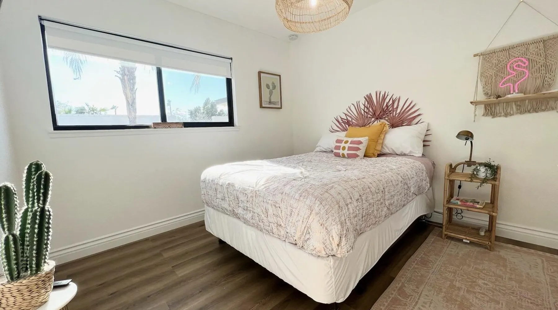 Welcome to your own personal oasis in Palm Springs!This 3Bedroom, 2 bathrooms Vacation home exudes a fun and vibrant Palm Springs vibe.The spacious living areas are perfect for entertaining,while the fully equipped kitchen makes it easy to whip up delicious meals.Take a dip in the inviting pool or relax in the spa after a long day of exploring all that Palm Springs has to offer.You ll love lounging on the outdoor patio,taking in the stunning desert views.City Id#5261 TOT permit#9381. This space available for 6 adult and 2 kids.We charge 150usd to heat pool and jacuzzy, and 70usd to heat just jacuzzy per day. It will take around 8hrs to heat big pool and 2 hr to heat just jacuzzy. ITS FREE TO USE POOL WITHOUT HEATING 3 cars allow to park in drive way.Pool might not available during windsorm Pool time until 10Pm No out door music. Private Pls call me if I dont respond yout text within 5mnt
