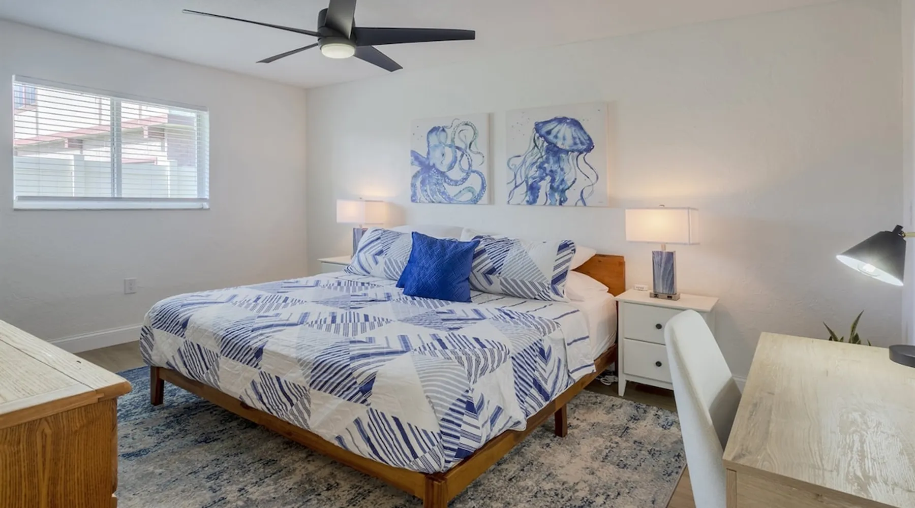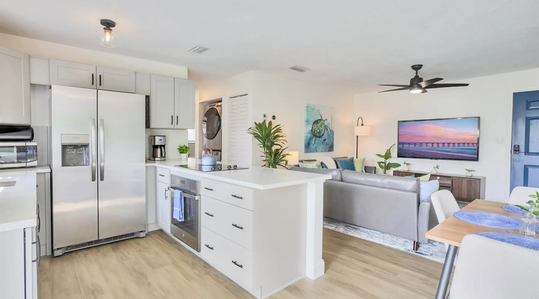 Welcome to Mai Tai Suites Dunedin With 100's Of Online 5 ⭐⭐⭐⭐⭐ Reviews ☞ 2 King Beds ☞ Parking Onsite 1 Space ☞ No Cleaning Fee ☞ 600 MPBS Mbps Wifi ☞ 2 Smart TVs (largest is 65 inches Free Honeymoon Island Beach Pass ☞ Dog Friendly ☞ Fully Equipped + Stocked Kitchen ☞ Self Check-In ☞ Onsite Washer + Dryer ☞ Beach Towels & Cooler Provided 》35 Mins to airport 》2 Mins to Honeymoon Island 》15 Mins to Clearwater Beach 》 Not Small Child Friendly age 13+ is OK The space Welcome to Mai Tai Suites Dunedin, the ultimate retreat in the charming city of Dunedin, Florida. This exquisite furnished rental is designed to provide a truly captivating experience for up to 4 people. Step into the stunning living room, tastefully adorned with ample seating to accommodate all guests. With two Smart TVs and WiFi connectivity, endless entertainment options await you. The fully equipped kitchen boasts modern appliances including a refrigerator, microwave, 4-burner cooktop, oven, dishwasher, and even a washer and dryer for your convenience. Indulge in the comfort of the two bedrooms, each featuring a luxurious king-size bed adorned with fresh linens and pillows. The bathroom is stocked with plush towels, essential toiletries, and a bathtub with a shower. Unwind in the outdoor seating area, where you can bask in the gentle breeze and relish in the tranquil ambiance. Embark on a leisurely stroll along the causeway beach and make sure to stop by the High and Dry Grill for some refreshing treats. Explore nearby attractions such as pristine beaches, picturesque parks, downtown Dunedin, and the Oldsmar Flea Market. Delight in the abundance of restaurants and shops waiting to be discovered. As an added bonus, this furnished rental is also pet-friendly, allowing up to two dogs free of charge. Experience the comforts of home while immersing yourself in the natural beauty of Dunedin, Florida. Whether you choose to cook your own meals in the fully equipped kitchen or venture out to Frenchy's Outpost for delectable cuisine and beverages, your culinary desires will be satisfied. Downtown Dunedin is just a short 3-mile drive away, offering an array of fantastic restaurants, entertainment options, and delightful shopping experiences. Make the most of your stay by visiting Honeymoon Island or renting bicycles to explore the scenic Pinellas Trail. Don't miss the opportunity to take the ferry from Honeymoon Island to Caladesi Island for an unforgettable adventure. Clearwater Beach, renowned for its pristine shores and vibrant nightlife, is just a 15-minute drive away. Immerse yourself in the beauty of one of the country's finest beaches while indulging in shopping and entertainment galore. To enhance your beach experience, we provide towels, and a cooler for your convenience. Inside the condo, you'll find a full-size washer and dryer, as well as an ironing board and iron. Extended stays, work-cations, staycations, girl's getaways, travel nurses, and business executives are all welcome at Mai Tai Suites Dunedin. Please note that our unit is not child-friendly and children under 12 are not permitted. Come and experience the epitome of comfort and luxury at Mai Tai Suites Dunedin. Your unforgettable retreat awaits you in the heart of Dunedin, Florida. Guest access Key Pad Lock. Detailed opening instructions will be sent to you via email and or over the platform that you have booked with. It is important to read the details carefully to avoid any frustrations upon arrival to the property. We also include free pass to Honeymoon Island State Park. The unit is not child friendly and children under 13 not allowed. Please let us know if you plan on bringing your pet. Other things to note Welcome to Mai Tai Suites Dunedin this beautiful furnished rental located in the quaint city of Dunedin, Florida has two bedrooms, one bath and is the perfect getaway for up to 4 people. NO CLEANING FEE The stunning space has a spacious living room with plenty of seating to accommodate 4 guests. With 2 Smart TV's and WiFi, you can keep everyone entertained for hours. The fully equipped kitchen includes a refrigerator, microwave, 4 burner cook top, oven, dishwasher and washer and dryer. The two bedrooms each have a comfortable king size bed, with fresh linens and pillows provided. The bathroom is stocked with towels, toiletries, and a bathtub with a shower. Take advantage of the outdoor space with small seating area outside each unit. Enjoy a stroll on the causeway beach and stop for refreshments at the High and Dry Grill. Nearby attractions include the beaches, parks, downtown Dunedin, and the Oldsmar Flea Market. There are also plenty of restaurants and shops to explore. This furnished rental is also dog friendly up to two free of charge. Enjoy the comforts of home while exploring the beauty of Dunedin, Florida. Cook your meals in the full-size kitchen or take a short stroll over to Frenchy's Outpost for delicious food and beverages. Downtown Dunedin is just a 3-mile drive away and has great restaurants, entertainment as well as walkable shopping. Spend the day at Honeymoon Island or rent bicycles and tour the Pinellas Trail. Take the ferry from Honeymoon Island over to Caladesi Island. You're a 15-minute drive to world famous Clearwater Beach which has one of the best beaches in the country as well as shopping and nightlife. Beach towels and cooler provided There is a full-size washer and dryer inside the condo for your use as well as an ironing board and iron. Extended stays, work-cation, staycation, girl's getaway, travel nurses as well as business executives welcome. The unit is not child friendly and children under 12 not allowed. Your hosts are John and Karen Bickford of Bolton MA. We are not local however can always be reached via the platform, text and email. City of Dunedin Short Term Rental Registration License Number STVR-000097