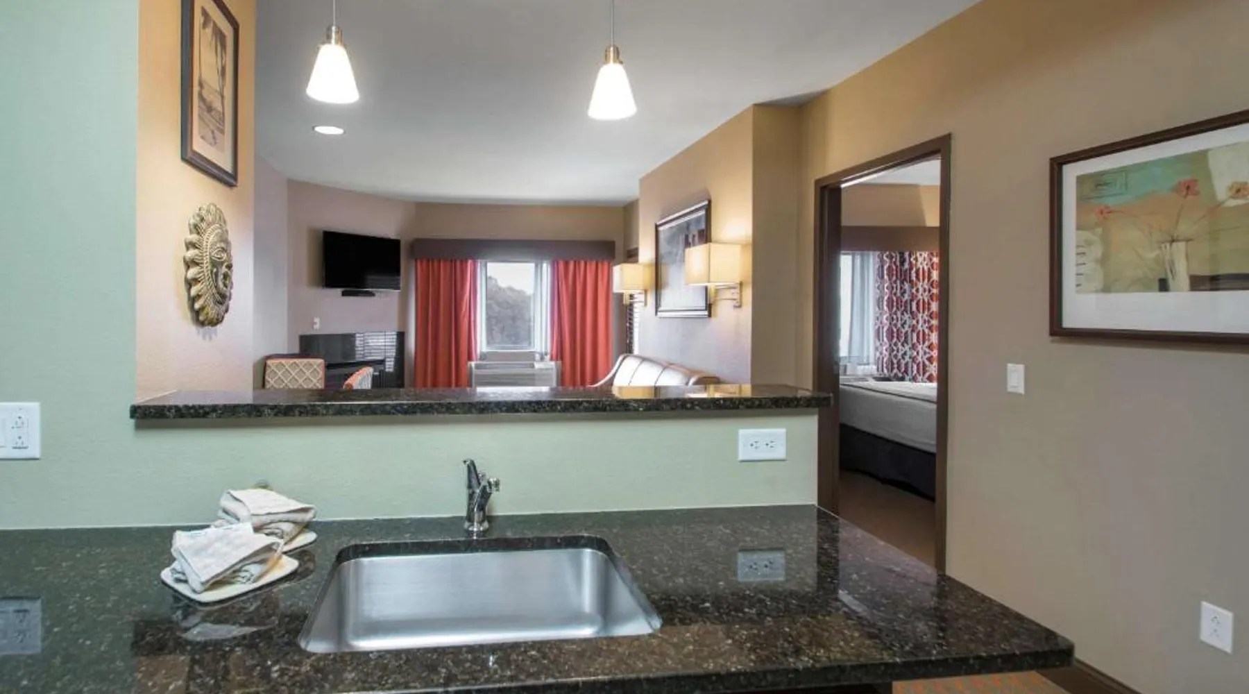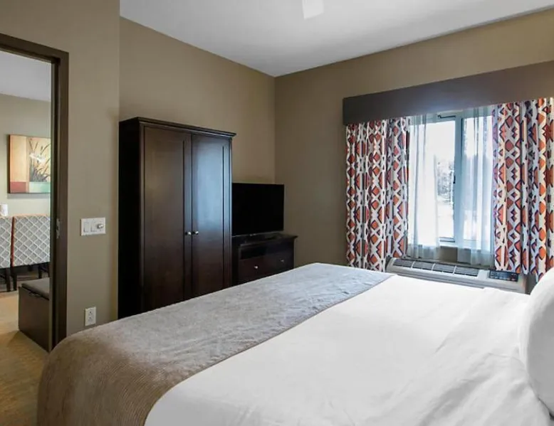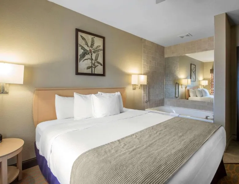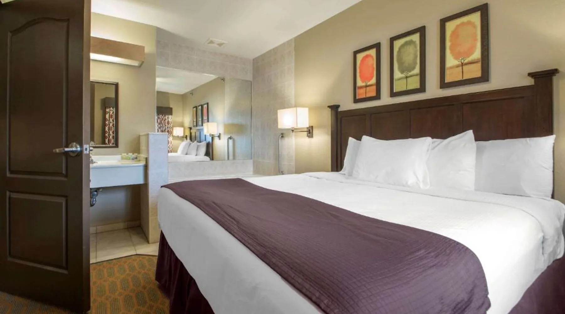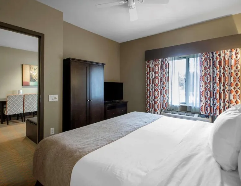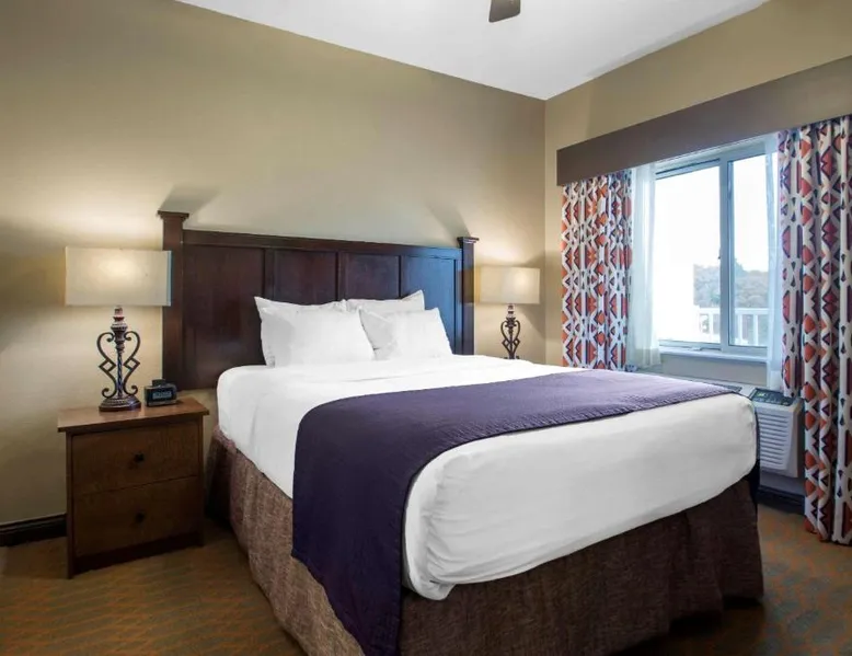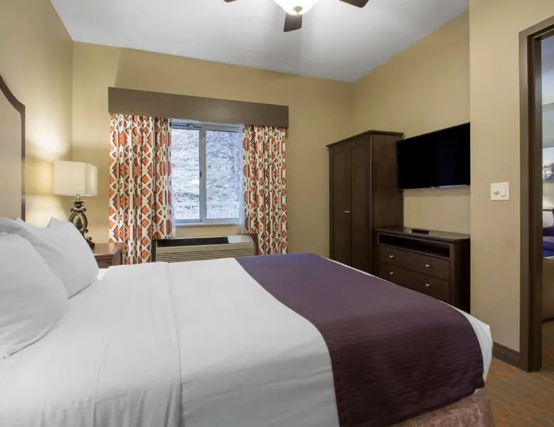 Comfortable Accommodations: Bluegreen Vacations Odyssey Dells Resort in Wisconsin Dells offers comfortable rooms with air-conditioning, balconies, and private bathrooms. Each room includes a tea and coffee maker, hairdryer, and free toiletries. Exceptional Facilities: Guests enjoy a fitness center, free WiFi, and a waterpark. Additional amenities include a fitness room, elevator, 24-hour front desk, concierge service, and free on-site parking. Prime Location: Located 46 mi from Dane County Regional Airport, the resort is close to attractions such as Rick Wilcox Magic Theater (5-minute walk), Noah S Ark Water Park (984 feet), and Mt Olympus Water Theme Park (4-minute walk). An ice-skating rink is also nearby. Guest Satisfaction: Highly rated for its attentive staff, excellent service, and family-friendly atmosphere, the resort ensures a pleasant stay for all visitors. This spacious suite consists of 1 living room, 2 separate bedrooms and 2 bathrooms with a bath and free toiletries. In the well-equipped kitchenette, guests will find a stovetop, a refrigerator, a dishwasher and kitchenware. This suite is air-conditioned and features a seating area with a flat-screen TV, a tea and coffee maker, a dining area, a wardrobe, as well as a safe deposit box. The unit offers 3 beds.