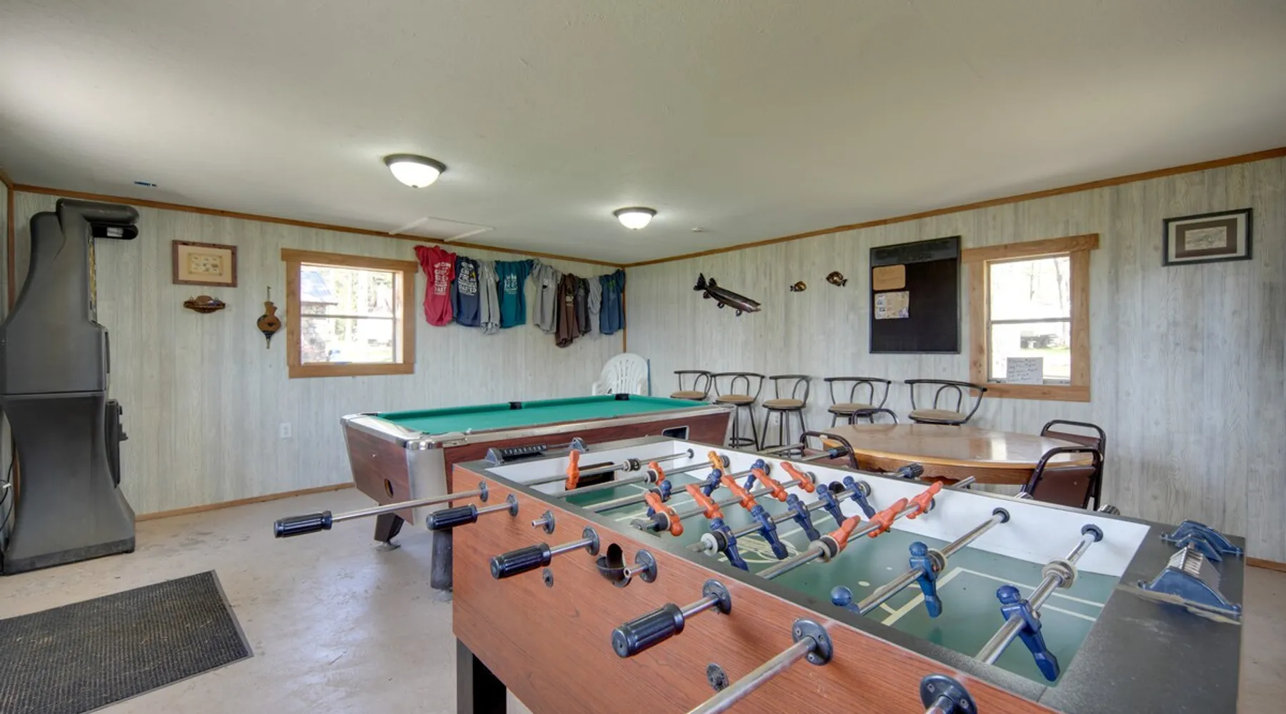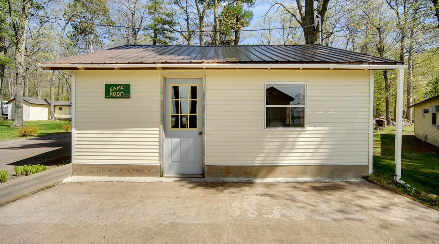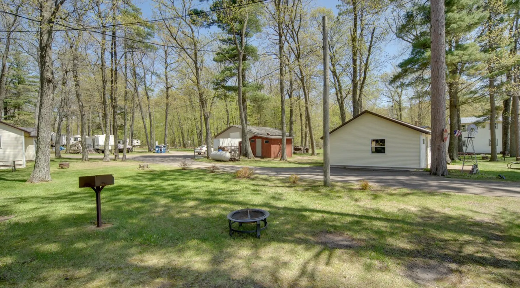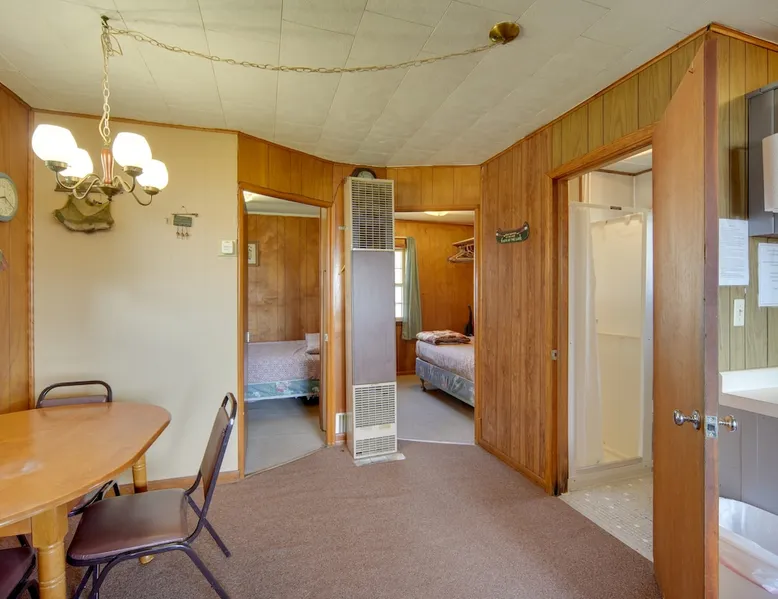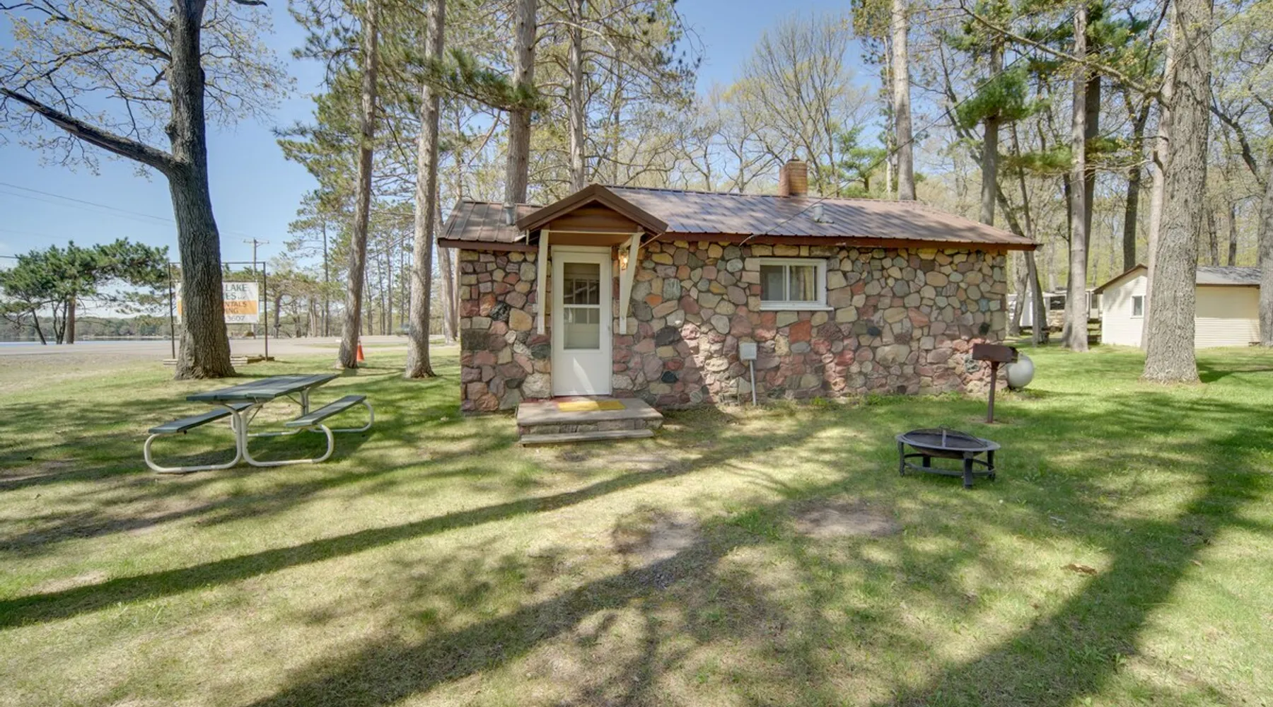 Let the wide stretches of Sand Lake take you away from your worries at this 2-bedroom, 1-bathroom getaway. With easy access to 3 community boat docks across the highway and a shared fish cleaning room on-site, this Stone Lake vacation rental makes it easy to seamlessly enjoy the great outdoors and return to your home-away-from-home. Get competitive in the community game room, settle down by the fire pit, or grill a meal as you unwind or head out to visit Wilderness Walk Zoo with the little ones. The space Community Game Room w/ Darts, Foosball & Pool | Fire Pit (Bring Your Own Wood) Bedroom 1: Full Bed | Bedroom 2: Full Bed COMMUNITY AMENITIES: 3 boat docks, fish cleaning room, playground, sand box OUTDOOR LIVING: Charcoal grill (bring your own charcoal), picnic table INDOOR LIVING: Flat-screen cable TV, 4-person dining table, A/C unit KITCHEN: Fridge, stove & oven, cooking basics, dishware & flatware, microwave, toaster, drip coffee maker, trash bags, paper towels GENERAL: Towels & linens FAQ: 2 steps to access, beds & bath on main floor, lake access via highway crossing, no WiFi PARKING: Driveway (2 vehicles) ADDT’L ACCOMMODATIONS: Three additional properties are available on-site, each with separate nightly rates: a 3-bedroom for 7 guests and 2 2-bedrooms for 5 guests. If you would like to reserve multiple rentals, please inquire for more information prior to booking Guest access Guests will have access to the entire property via self check-in Other things to note - No smoking - No pets allowed - No events, parties, or large gatherings - Must be at least 25 years old to book - Additional fees and taxes may apply - Photo ID may be required upon check-in - NOTE: This property does not have WiFi - NOTE: This property may not be suitable for young children or will require constant supervision of young children as the property is located next to a main highway and the highway must be crossed to get to the lake
