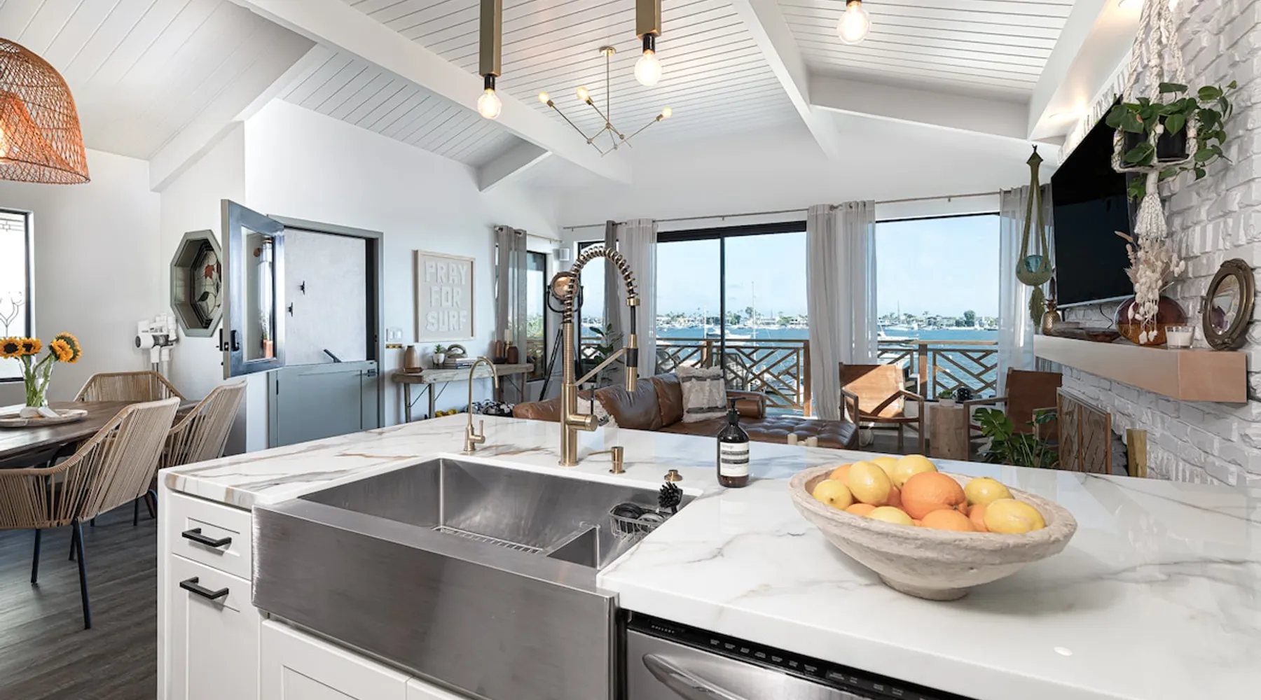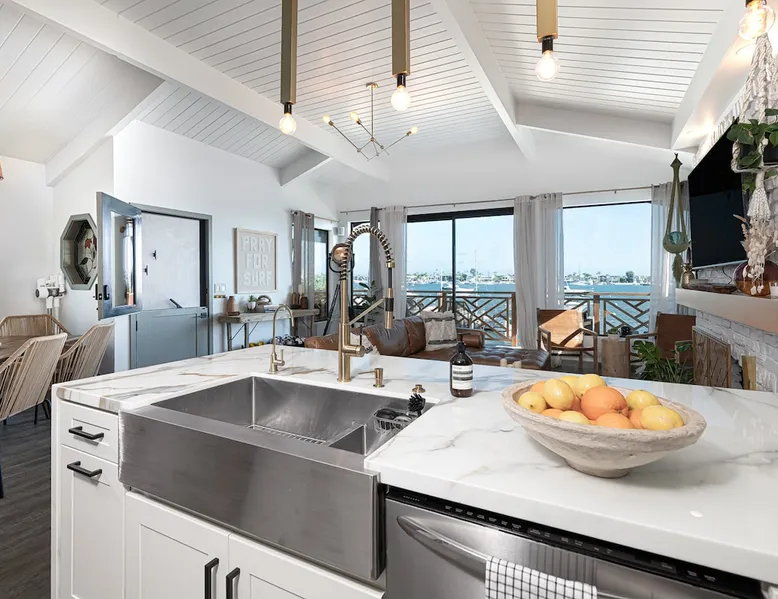 Beautiful Fully Remodeled Home on Historic Balboa Island. (Message us for last minute deals) On the Water overlooking iconic Newport Harbor with Boat and Bay Views as far as the eye can see! Walk to downtown in minutes. Breakfast, Brunch, Lunch, Snack, Ice Cream and Dinner and shopping. The ferry is a few blocks down the boardwalk. Rooftop Deck. House is Steps to the sand and bay and is right on the Boardwalk!! ZBfh6 The space *** Location *** Location *** Location *** Fully Remodelled Second Level Home on South Bayfront! 3 Bedroom / 3 Bathroom SLEEPS 10 with Rooftop, Balcony, Laundry This home will check off every box when looking for the perfect vacation getaway! The home is literally on the Boardwalk where you will be sitting just steps to the Beach + Bay. Not to mention the convenience of having the main street, Marine Ave., just around the corner where you can walk to all the shops, restaurants + sweet treats (the famous frozen bananas at Dad's). The home is a duplex. This is the upstairs home where you will feel the fresh ocean air from the balcony. It has three bedrooms and 3 bathrooms (one with a laundry area). The Master bedroom consists of a King Bed and a trundle bed (two twin beds). Second Bedroom has a King bed and the third bedroom is perfect for kids with 2 Full beds and one twin. Access the rooftop through a ladder with tremendous views of the Newport Bay. The kitchen is fully remodelled and the spacious living/dining room opens up to another amazing view of the bay with a balcony and sliding glass doors. We look forward to hosting you and your family where we know you will make many amazing memories that will be cherished for years to come. Please let us know if there are any special requests or accommodations and we will definitely see what we can do. Paddle Boards included in rental! (duffy rides, surf lessons, etc. upon request) Guest access You will have access to the whole upper level of the property with a front and back staircase. 1 garage space will be available as well. Other things to note All are pleasantly surprised by the location, amenities, decor and home when they come to stay with us! We are also here to help if you need anything at all before or during your stay. Registration Details SLP13621