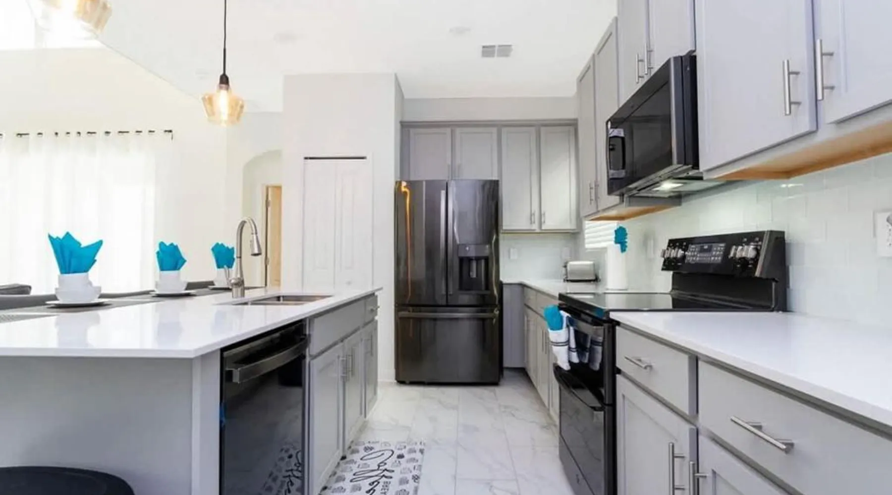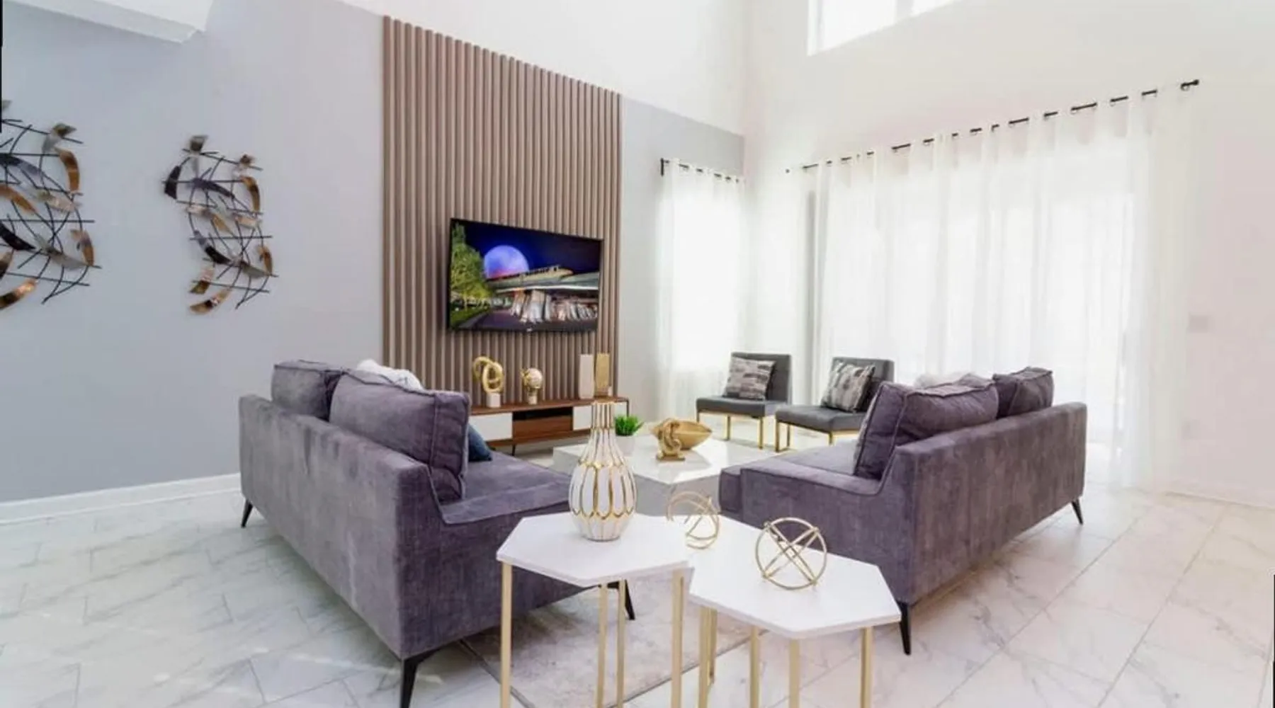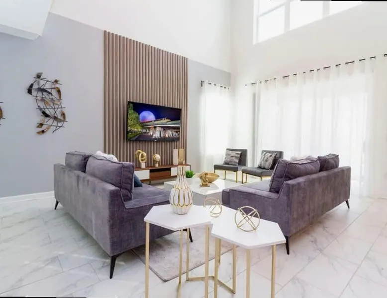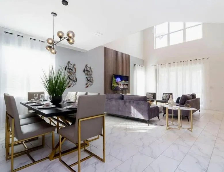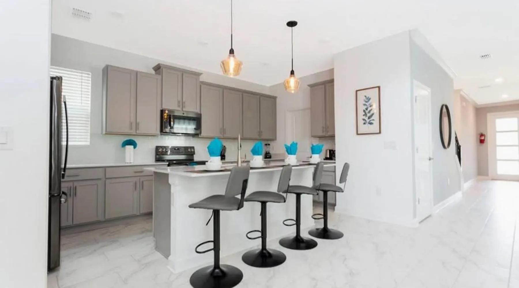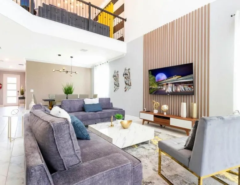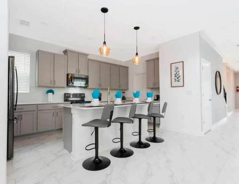 Spacious Accommodations: Stunning Family Friendly 5 Bd w/ Pool Close to Disney @ Story Lake 4242 in Kissimmee offers a spacious villa with five bedrooms and five bathrooms. The property features a private pool, garden, and outdoor swimming pool. Leisure Facilities: Guests can enjoy a spa and wellness center, fitness center, waterpark, and games room. Free WiFi is available throughout the villa. Convenient Amenities: The villa includes air-conditioning, a hot tub, washing machine, patio, kitchen, and private entrance. Additional amenities include a dishwasher, microwave, and work desk. Nearby Attractions: Located 21 mi from Orlando International Airport, the property is close to Gatorland (7.5 mi), Disney Springs (7.5 mi), and Disney's Boardwalk (8.1 mi). Boating is available in the surrounding area. This villa's standout features are the private pool and hot tub. Featuring a private entrance, this spacious villa also is consisted of of 5 separate bedrooms and 5 bathrooms with a bath and a hairdryer. In the fully equipped kitchen, guests will find a stovetop, a refrigerator, a dishwasher and kitchenware. The air-conditioned villa offers a TV with cable channels, a washing machine, a tea and coffee maker, a wardrobe as well as lake views. The unit offers 8 beds.