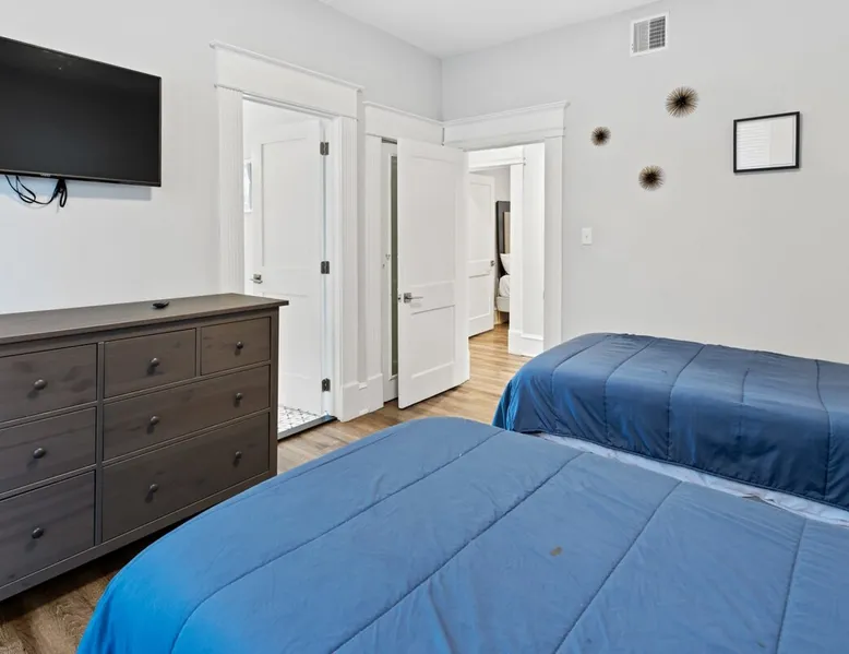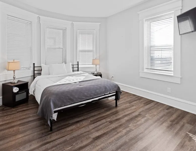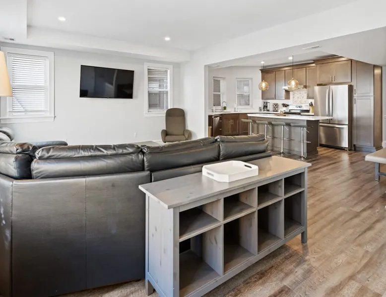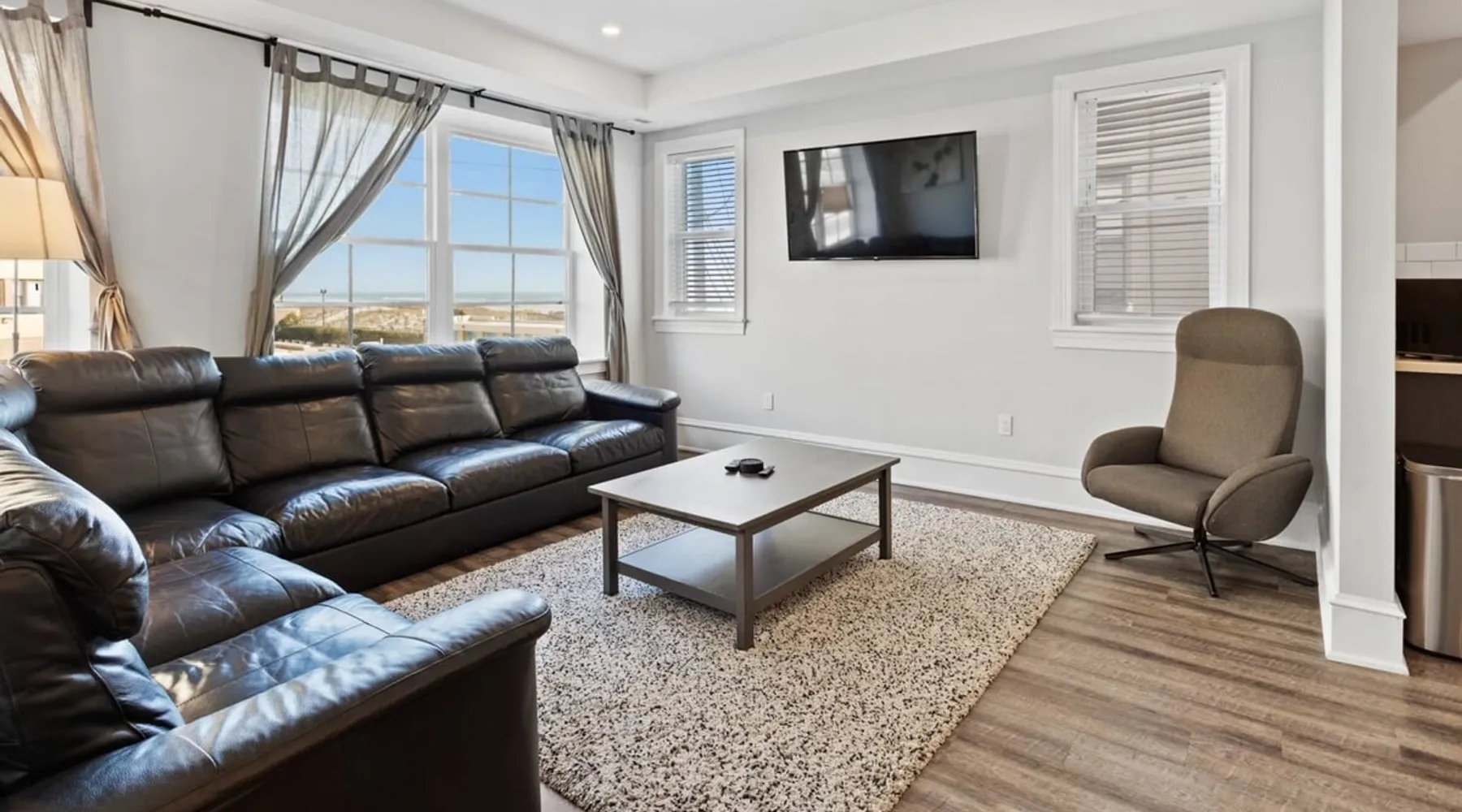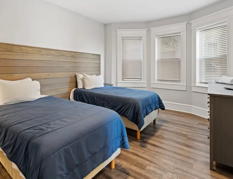 Welcome to the Residences at Raleigh in Atlantic City’s historic Chelsea neighborhood! Residences at Raleigh is a collection of (3) luxurious apartments steps from the Atlantic City Boardwalk in the city’s most sought after neighborhood. This listing consists of our oversized, 1,700 SF 2nd floor apartment, featuring: (4) separate bedrooms (2) renovated full bathrooms Designer kitchen w/island Open concept living room / dining Washer/Dryer Beach essentials Front balcony overlooking the Ocean The space Make your way up the front porch steps, check yourself in and feel instantly at home with bright, sun-filled rooms, soft comfortable furnishings and everything you could need for a relaxing stay right in historic Atlantic city. The entire condo features central A/C and heating, individually controlled for this unit. | LIVING | Make yourself at home in the comfortable living room, featuring a large sectional, a Smart TV, and ample seating while light floods in through the large windows facing the ocean. ✔ Plush Chaise Lounge ✔ Smart TV ✔ Access to Streaming Apps ✔ A/C | KITCHEN & DINING | Cook up everything from a simple breakfast, a quick snack or a 3-course gourmet dinner in our chef-friendly kitchen that comes fully equipped with everything you need. You’ll have ample space to prep meals on the sleek quartz countertops, and if you don’t feel like cooking, walk or drive to countless restaurants, coffee shops and bars surrounding the apartment. ✔ Stainless Steel Appliances ✔ Quartz Countertops ✔ Freestanding Oven ✔ Dishwasher ✔ Full Size Fridge/Freezer ✔ Coffee Maker ✔ Built-In Microwave ✔ Toaster ✔ Cookware, Dinnerware & Utensils ✔ Dining Table for (6) | BEDROOMS & BATHROOM | The spacious master bedroom is filled with a large queen bed that comes topped in soft, quality linen and bedding for a restful night’s sleep along with a full size mirror and chic exposed brick wall. Off the bedroom is the modern designer bathroom with an oversize walk in shower, a vanity stocked with all the essentials for your stay and plenty of fluffy towels for each guest. BEDROOM #1 ✔ (2) Twin-Sized Beds ✔ Night Stands ✔ Dresser ✔ Jack-and-Jill Bathroom ✔ Combination Shower/Tub ✔ Bathroom Essentials ✔ Soft Fluffy Towels BEDROOM #2 ✔ (1) Queen-Sized Bed ✔ Night Stands ✔ Dresser ✔ Jack-and-Jill Bathroom ✔ Wall-Mounted Flat Screen TV ✔ Combination Shower/Tub ✔ Bathroom Essentials ✔ Soft Fluffy Towels BEDROOM #3 ✔ (1) Full-Sized Bed ✔ Night Stands ✔ Armoire ✔ Jack-and-Jill Bathroom ✔ Wall-Mounted Flat Screen TV ✔ Oversize Walk-In Shower ✔ Bathroom Essentials ✔ Soft Fluffy Towels BEDROOM #4 ✔ (1) Full-Sized Bed ✔ Night Stands ✔ Armoire ✔ Adjacent Bathroom ✔ Oversize Walk-In Shower ✔ Bathroom Essentials ✔ Soft Fluffy Towels | OUTDOORS | Start your day with coffee on the front balcony overlooking the Atlantic Ocean and the historic Boardwalk. If you are looking for a great central apartment with its own unique designer style only minutes from Atlantic City’s best casinos, restaurants and white sandy beaches – look no further for your next getaway to “America's Playground.” Guest access Guests have private access to the entire apartment and outdoor areas as well as free Wi-Fi, complimentary coffee, and access to your own streaming apps on the Smart TV. We also have an outdoor shower and shared basement with access from the street. Other things to note 1) Pets are welcome for an additional pet fee. Please include them in the Guest Count of your search, and let us know. 2) There is one Smart TV in the living room and there are TVs in two of the bedrooms. Please note that we do not have cable TV. 3) In an effort to combat noise concerns and out of consideration for our neighbors, we have noise sensors installed at the property to monitor noise levels. We do not record audio of any type. This is strictly to ensure that noise does not eclipse a reasonable level, particularly in the evening hours. All we receive is a time-stamped decibel reading. You should have nothing to worry about as long as you're not engaging in excessive partying. 4) Please note that per Atlantic City's rules, we are not permitted to rent to groups under the age of 21. 5) Please note that this listing is one of (3) apartments in the building, and, similar to a hotel, noise can travel within the building. 6) Please also note that while fully renovated and modernized, the home was built over 100 years ago, so it may have some quirks to embrace. 7) This unit is on the second level, with about (8) steps up from the street to access the entrance, and an additional flight of stairs inside the building to reach the 2nd floor. 8) FOR PARKING - Paid parking is accessible nearby at Stockton College, just a few blocks away. There is street parking available for some spots, but just for limited hours.