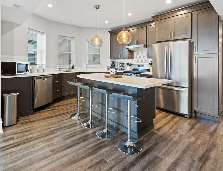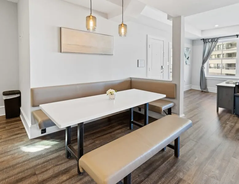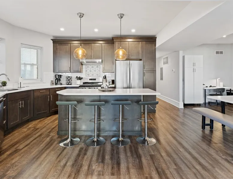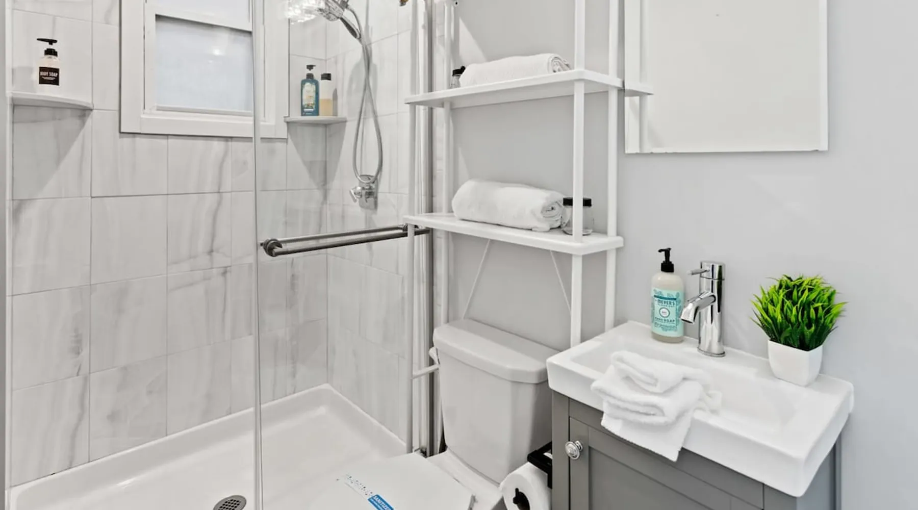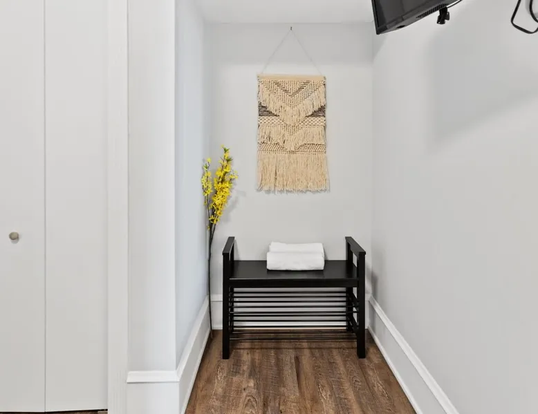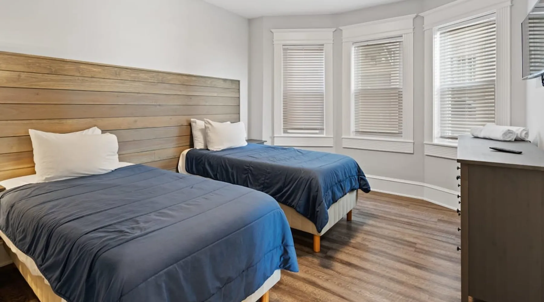 Welcome to the Residences at Raleigh in Atlantic City’s historic Chelsea neighborhood! Residences at Raleigh is a collection of (3) luxurious apartments steps from the Atlantic City Boardwalk in the city’s most sought after neighborhood. This listing consists of our oversized, 1,700 SF 2nd floor apartment, featuring: (4) separate bedrooms (2) renovated full bathrooms Designer kitchen w/island Open concept living room / dining Washer/Dryer Beach essentials Front balcony overlooking the Ocean The space Make your way up the front porch steps, check yourself in and feel instantly at home with bright, sun-filled rooms, soft comfortable furnishings and everything you could need for a relaxing stay right in historic Atlantic city. The entire condo features central A/C and heating, individually controlled for this unit. | LIVING | Make yourself at home in the comfortable living room, featuring a large sectional, a Smart TV, and ample seating while light floods in through the large windows facing the ocean. ✔ Plush Chaise Lounge ✔ Smart TV ✔ Access to Streaming Apps ✔ A/C | KITCHEN & DINING | Cook up everything from a simple breakfast, a quick snack or a 3-course gourmet dinner in our chef-friendly kitchen that comes fully equipped with everything you need. You’ll have ample space to prep meals on the sleek quartz countertops, and if you don’t feel like cooking, walk or drive to countless restaurants, coffee shops and bars surrounding the apartment. ✔ Stainless Steel Appliances ✔ Quartz Countertops ✔ Freestanding Oven ✔ Dishwasher ✔ Full Size Fridge/Freezer ✔ Coffee Maker ✔ Built-In Microwave ✔ Toaster ✔ Cookware, Dinnerware & Utensils ✔ Dining Table for (6) | BEDROOMS & BATHROOM | The spacious master bedroom is filled with a large queen bed that comes topped in soft, quality linen and bedding for a restful night’s sleep along with a full size mirror and chic exposed brick wall. Off the bedroom is the modern designer bathroom with an oversize walk in shower, a vanity stocked with all the essentials for your stay and plenty of fluffy towels for each guest. BEDROOM #1 ✔ (2) Twin-Sized Beds ✔ Night Stands ✔ Dresser ✔ Jack-and-Jill Bathroom ✔ Combination Shower/Tub ✔ Bathroom Essentials ✔ Soft Fluffy Towels BEDROOM #2 ✔ (1) Queen-Sized Bed ✔ Night Stands ✔ Dresser ✔ Jack-and-Jill Bathroom ✔ Wall-Mounted Flat Screen TV ✔ Combination Shower/Tub ✔ Bathroom Essentials ✔ Soft Fluffy Towels BEDROOM #3 ✔ (1) Full-Sized Bed ✔ Night Stands ✔ Armoire ✔ Jack-and-Jill Bathroom ✔ Wall-Mounted Flat Screen TV ✔ Oversize Walk-In Shower ✔ Bathroom Essentials ✔ Soft Fluffy Towels BEDROOM #4 ✔ (1) Full-Sized Bed ✔ Night Stands ✔ Armoire ✔ Adjacent Bathroom ✔ Oversize Walk-In Shower ✔ Bathroom Essentials ✔ Soft Fluffy Towels | OUTDOORS | Start your day with coffee on the front balcony overlooking the Atlantic Ocean and the historic Boardwalk. If you are looking for a great central apartment with its own unique designer style only minutes from Atlantic City’s best casinos, restaurants and white sandy beaches – look no further for your next getaway to “America's Playground.” Guest access Guests have private access to the entire apartment and outdoor areas as well as free Wi-Fi, complimentary coffee, and access to your own streaming apps on the Smart TV. We also have an outdoor shower and shared basement with access from the street. Other things to note 1) Pets are welcome for an additional pet fee. Please include them in the Guest Count of your search, and let us know. 2) There is one Smart TV in the living room and there are TVs in two of the bedrooms. Please note that we do not have cable TV. 3) In an effort to combat noise concerns and out of consideration for our neighbors, we have noise sensors installed at the property to monitor noise levels. We do not record audio of any type. This is strictly to ensure that noise does not eclipse a reasonable level, particularly in the evening hours. All we receive is a time-stamped decibel reading. You should have nothing to worry about as long as you're not engaging in excessive partying. 4) Please note that per Atlantic City's rules, we are not permitted to rent to groups under the age of 21. 5) Please note that this listing is one of (3) apartments in the building, and, similar to a hotel, noise can travel within the building. 6) Please also note that while fully renovated and modernized, the home was built over 100 years ago, so it may have some quirks to embrace. 7) This unit is on the second level, with about (8) steps up from the street to access the entrance, and an additional flight of stairs inside the building to reach the 2nd floor. 8) FOR PARKING - Paid parking is accessible nearby at Stockton College, just a few blocks away. There is street parking available for some spots, but just for limited hours.