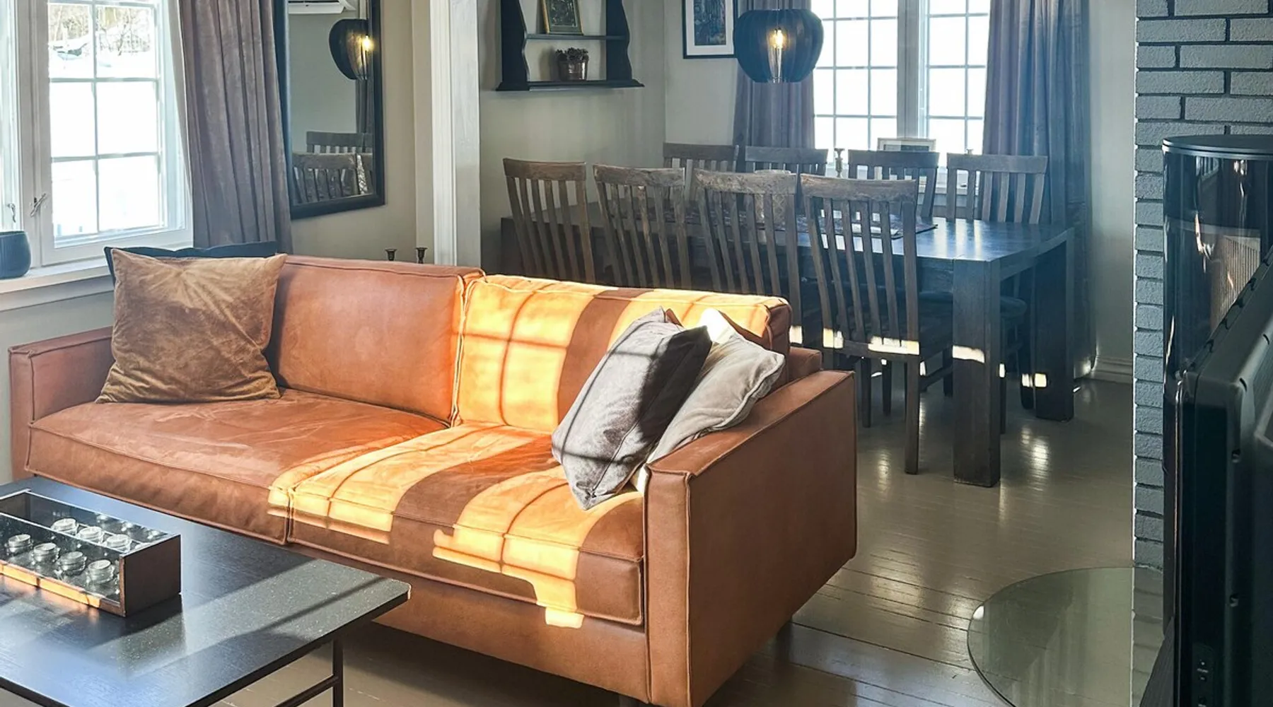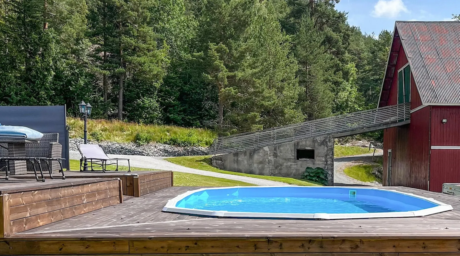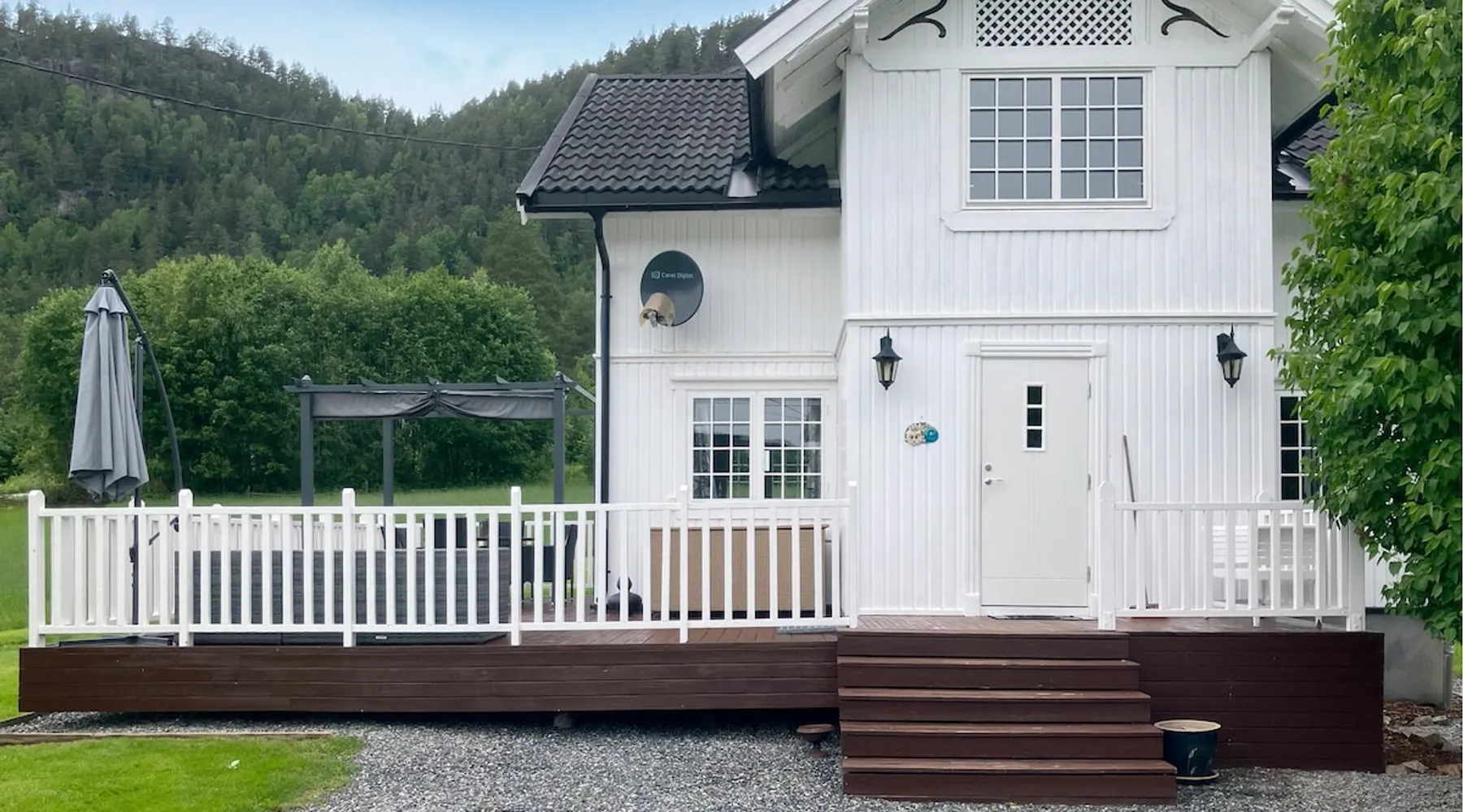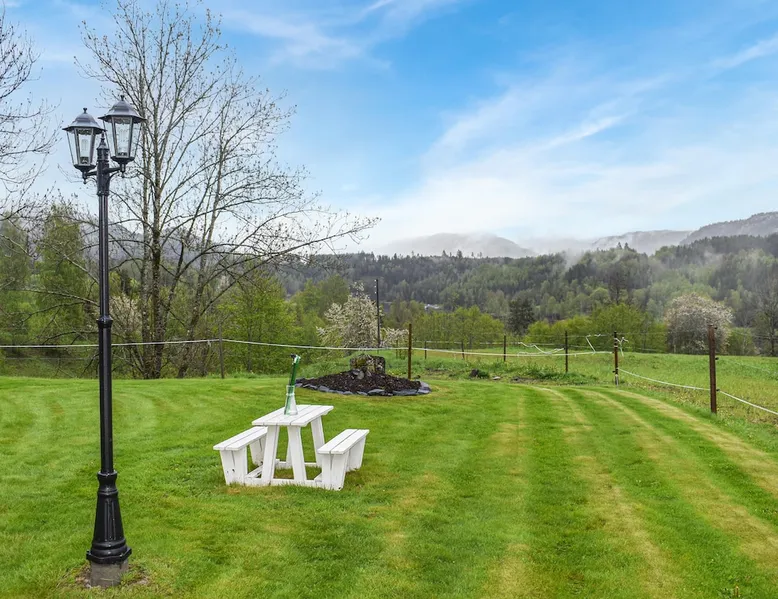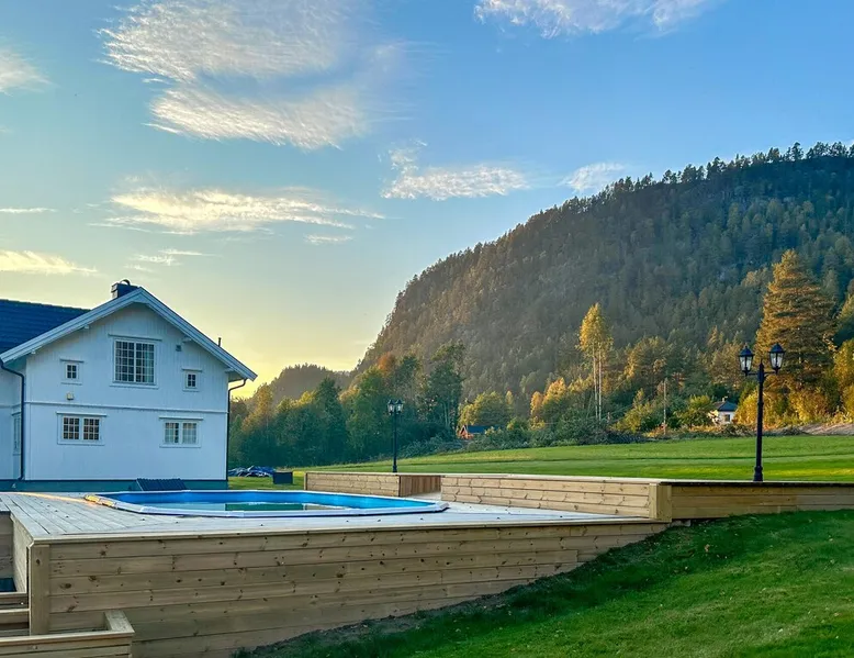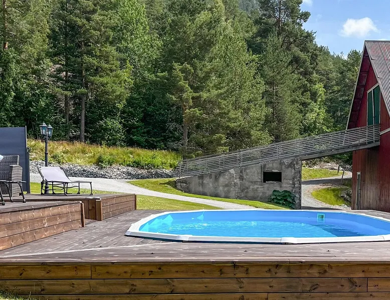 Welcome to Telemark and this jewel directly on the Telemark Canal. The space Welcome to Telemark and this jewel directly on the Telemark Canal. The holiday home is lovingly furnished and makes for a comfortable holiday with family or friends. It is situated on a large plot with plenty of space for outdoor play. There are several pieces of play equipment in the garden for the little ones. You can relax in the sun on the large terrace and eat outside when the weather is nice. The holiday home is located in an area with a wide range of activities all year round. In winter, you can go cross-country skiing on groomed trails. Or how about a downhill run on the alpine slopes in Vrådal, Lifjell or Gautefall? Hikes on skis are recommended for the more experienced. The rest of the year, the holiday home is a great starting point for a boat trip on the Telemark Canal, a visit to Ulefoss Sluse or for beautiful cycling tours and hikes in the surrounding area. In summer you can visit Bø Sommarland with the children or say hello to the neighbour's horses. Take a holiday in Telemark and enjoy this beautiful holiday home - all year round. Note: The neighbouring house belongs to the property and is not inhabited. Can comfortably fit up to 7 people Other things to note Please note that: Consumption costs are included in the room rate. Up to two pets are allowed. Outdoor private pool on site is open May - end September. Property is located near a highway.