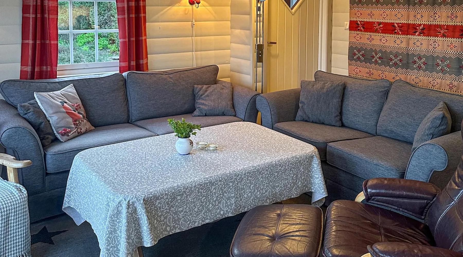 Beautifully located cottage with panoramic views of the Sognefjord and the majestic mountains. The space Beautifully located cottage with panoramic views of the Sognefjord and the majestic mountains. The Sognefjord is one of the most beautiful fjords in Western Norway, and it alone is a popular tourist destination. The cottage has south-facing terraces where you can enjoy the fantastic view, perhaps with a cup of hot coffee. For the hiking enthusiasts, there are many beautiful hiking trails nearby. 300 meters away is a private quay with boats waiting for their tour in the fjord. It is possible to rent a boat with driver that can take guests further out to sea for fishing. The price is to be agreed with the owner of the house. The cottage is ideal for a quiet and relaxing vacation with easy access to swimming and fishing in the fjord and unique nature. Nearest neighbor N21045. Can comfortably fit up to 6 people Other things to note Please note that: Bed linen and towels are not included in the room rate in 2025; guests can rent them at the property for an additional charge of NOK 200.00 per person, or bring their own. Consumption costs are included in the room rate.