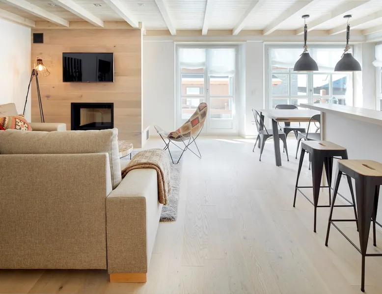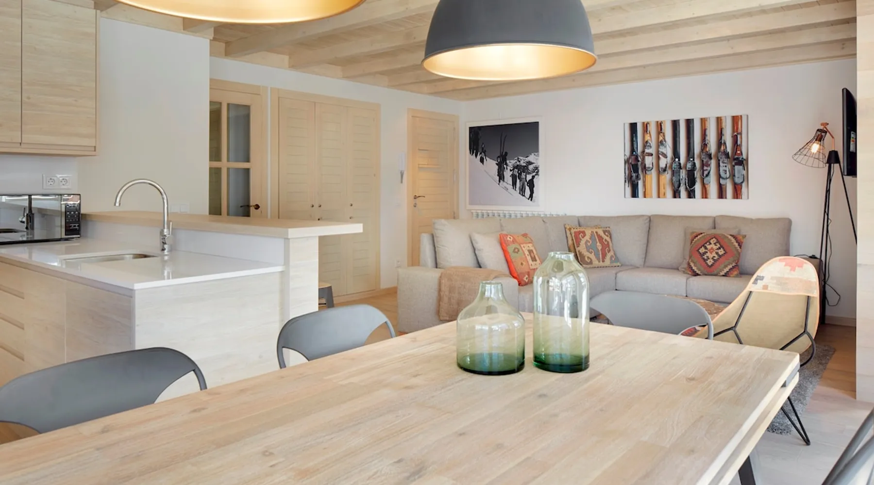 The Val de Ruda Luxe 52 apartment is located in the exclusive private complex known as "Urbanization Ruda", located on the slopes at the Baqueira 1500. The access to the ski slopes is unbeatable. There is an elevator with direct access to the garage where the heated ski-stand is located and from here another elevator can take you directly to the exit of the new gondola lift. The space Once inside the apartment, the first thing we find is a spacious and cozy living-dining room. The living area has a comfortable L-shaped sofa, a closed fireplace and a Smart Tv. Next to the large french-style window is the dining table where you can enjoy pleasant evenings during your holidays. The modern open kitchen is opened to the living area and offers high-end appliances as well as full kitchenware. With capacity up to 5 people, Val de Ruda Luxe 52 has two comfortable bedrooms and two bathrooms. The master bedroom has two single beds, en-suite bathroom and a Smart TV, while the second bedroom has a bunk bed and a trundle bed. Both rooms have been tastefully decorated taking care of every detail. The Val de Ruda Luxe 52 Apartment also offers Wi-Fi and two parking spaces and two ski lockers in the same building, all services included in the price. You will find other FeelFree managed apartments in the best valley locations, where you will be able to enjoy winter sports in the Baqueira Beret ski resort, such as skiing or hiking and also trekking throughout the beautiful Aran Valley. NRA: ESFCTU0000250090003567890000000000000000HUT 687/20170 Other things to note To access your apartment, it is mandatory to complete the online check-in with the details of all travelers over 14 years old and provide a credit card to the host. Registration Details Catalonia - Regional registration number HUTVA-000771
