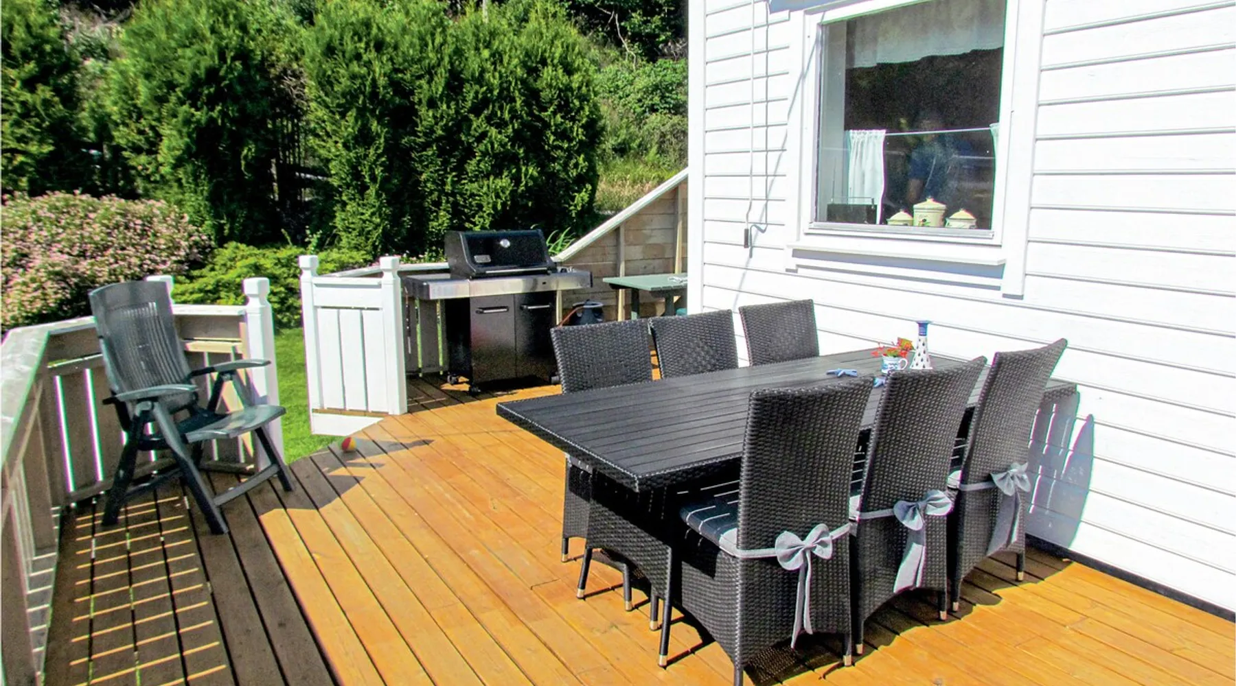 Look forward to spending your next vacation in beautiful Norwegian nature. The space Look forward to spending your next vacation in beautiful Norwegian nature. This large and beautiful cottage is beautifully decorated with bright colors and nice furniture. At the dining table you can gather for meals and plan the day's activities. After a beautiful day in nature or a fishing trip, you can sink into the large sofa with an exciting book and a warm drink. Free wifi is available in the house. From the dining room you have access to a sunny terrace. There you can have your meals on nice days. Maybe there is fresh grilled fish for dinner? In this case, a large Weber gas grill can be rented here. In the cottage there is also a separate smoker for fish. Otherwise, in the outdoor area there is plenty of space for outdoor play and activities for young and old. The area where the cottage is located is rural and offers you unforgettable vacations with exciting experiences. There are many marked hiking trails in the area. So pack your backpack and head out for beautiful walks. For those who are interested in fishing, it is good to know that Western Norway's best fishing fjord is located near this particular vacation home. So there are good opportunities for fishing here. For excursions from the vacation home, it is recommended to visit the spectacular Prekestolen and the cities of Bergen, Stavanger and Haugesund, which all offer nice cultural experiences. For history buffs, the house is also not far from the Arquebus War History Museum. This is a perfect place if you want to enjoy your vacation in Norway with fishing, hiking and cultural experiences. The house owner rents an additional boat on request. You will need a boat license. The large additional boat has a 40hp Yamaha outboard engine. Can comfortably fit up to 7 people Other things to note Please note that: Consumption costs are not included in the room rate and will be charged according to guest use within three weeks after check-out.