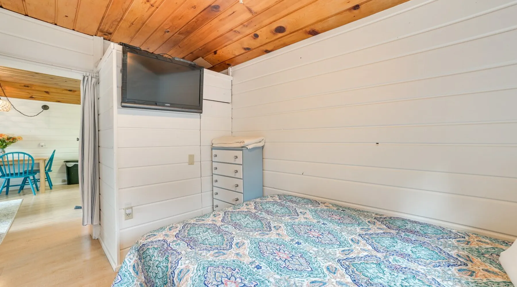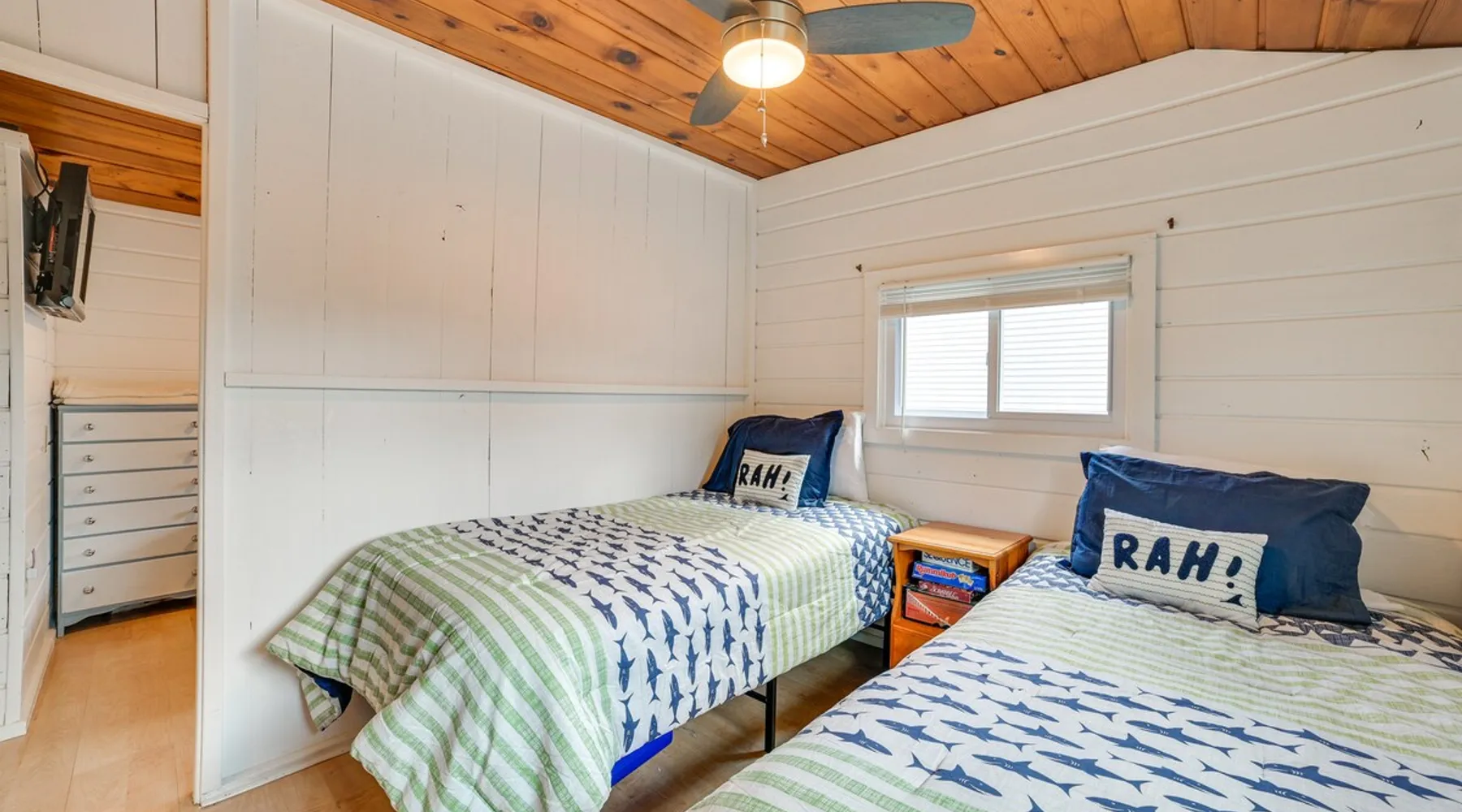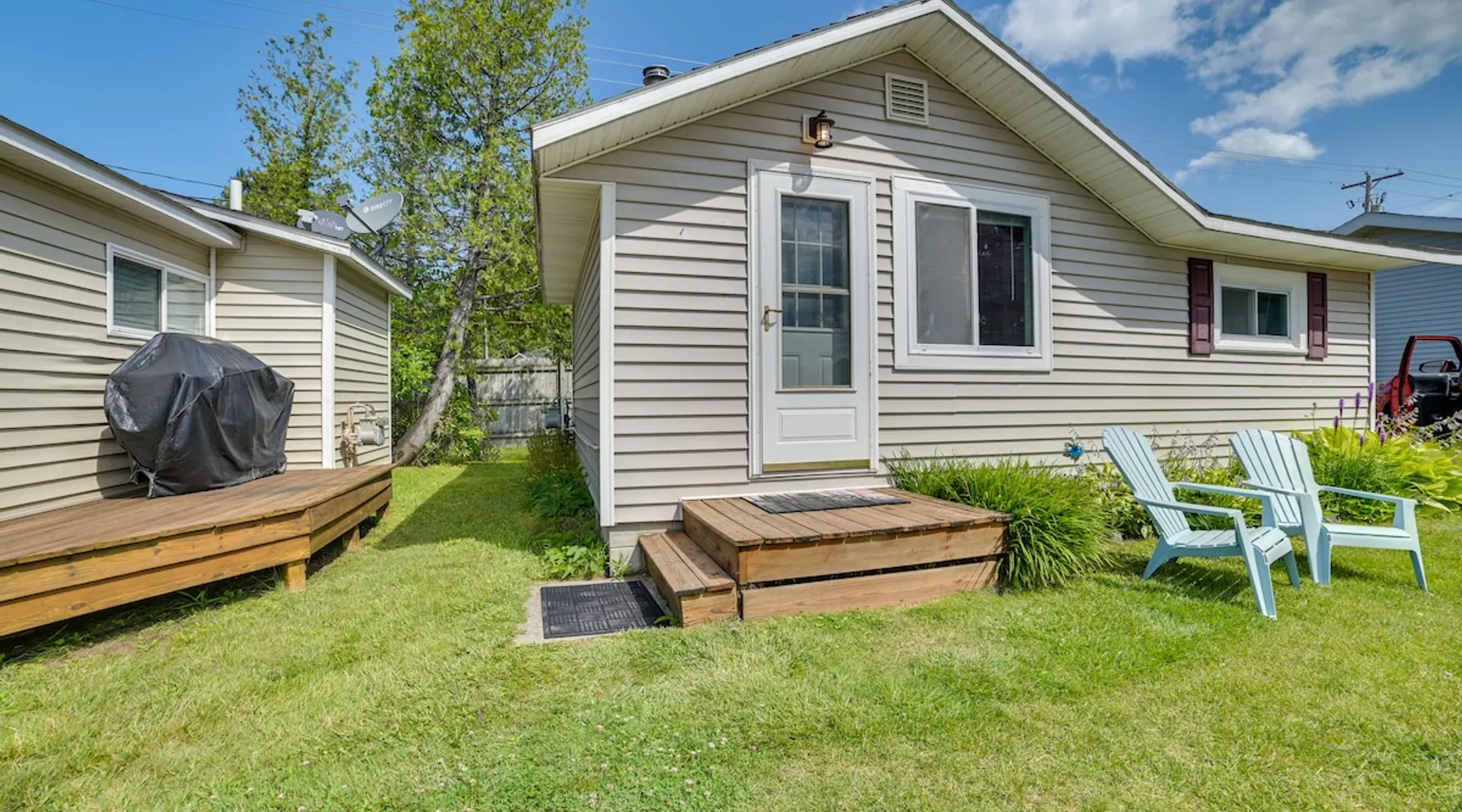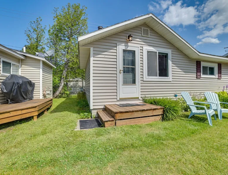 Venture ‘Up North’ and make this cozy Alanson cottage your launching point for lakeside fun! The 2-bedroom, 1-bathroom vacation rental has comfortable quarters and enough space to kick back between adventures. Enjoy quick access to Crooked Lake, plus epic trails and sightseeing await at state parks nearby. The property also features a gas grill and picnic areas, perfect for ending the day with a family barbeque. Top off your travels with day outings in Harbor Springs, Charlevoix, or Petoskey! The space Community Fire Pit & Picnic Tables | Close to Vineyards & Wineries | ~ 5 Mi to Petoskey State Park Bedroom 1: Full Bed | Bedroom 2: 2 Twin Beds | Living Room: Full Sleeper Sofa COTTAGE FEATURES: Shared boat dock & lake access with other cottages (short walk to lake), gas grill, flat-screen TV w/ cable, ceiling fans, ample lighting KITCHENETTE: Stove/oven, microwave, refrigerator, toaster, coffee maker, blender, dishware + flatware, trash bags + paper towels GENERAL: Free WiFi, window A/C unit, ceramic oscillating temperature set electric heater, towels/linens, hair dryer, hangers FAQ: 3 steps to enter, 2 cottages away from lake (not lakefront) PARKING: Driveway (1 vehicle), boat trailer parking (available upon request) ADDT’L ACCOMMODATIONS: An additional studio property for 4 guests is available on-site with a separate nightly rate. If you would like to reserve both rentals, please inquire for more information prior to booking Guest access Guests will have access to the entire property via lockbox Other things to note - No smoking - No pets allowed - No events, parties, or large gatherings - Must be at least 25 years old to book - Additional fees and taxes may apply - Photo ID may be required upon check-in - NOTE: The property requires 3 steps to enter - NOTE: Please note there are other cottages on-site with some shared outdoor amenities (including the water access); other travelers may be present during your stay - NOTE: While the cottage is situated 2 cottages away from the lakeshore, it is not directly on the water