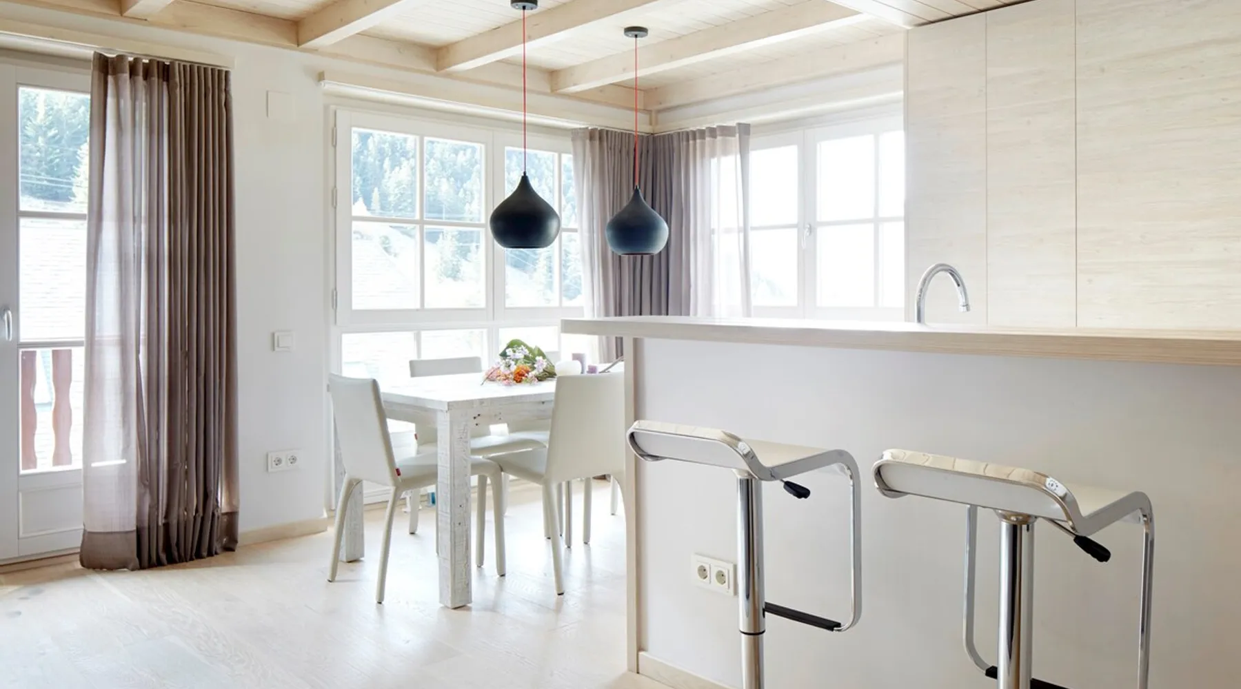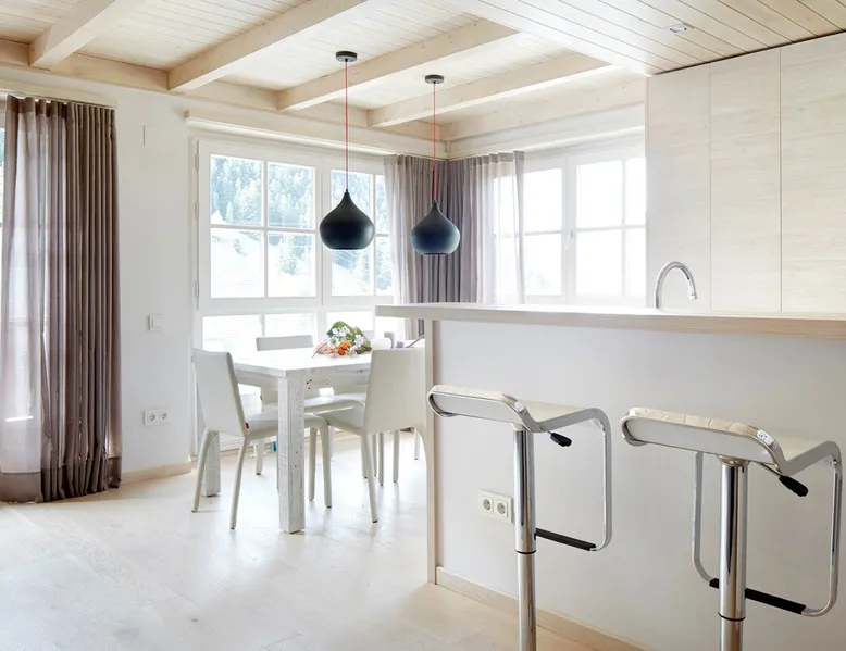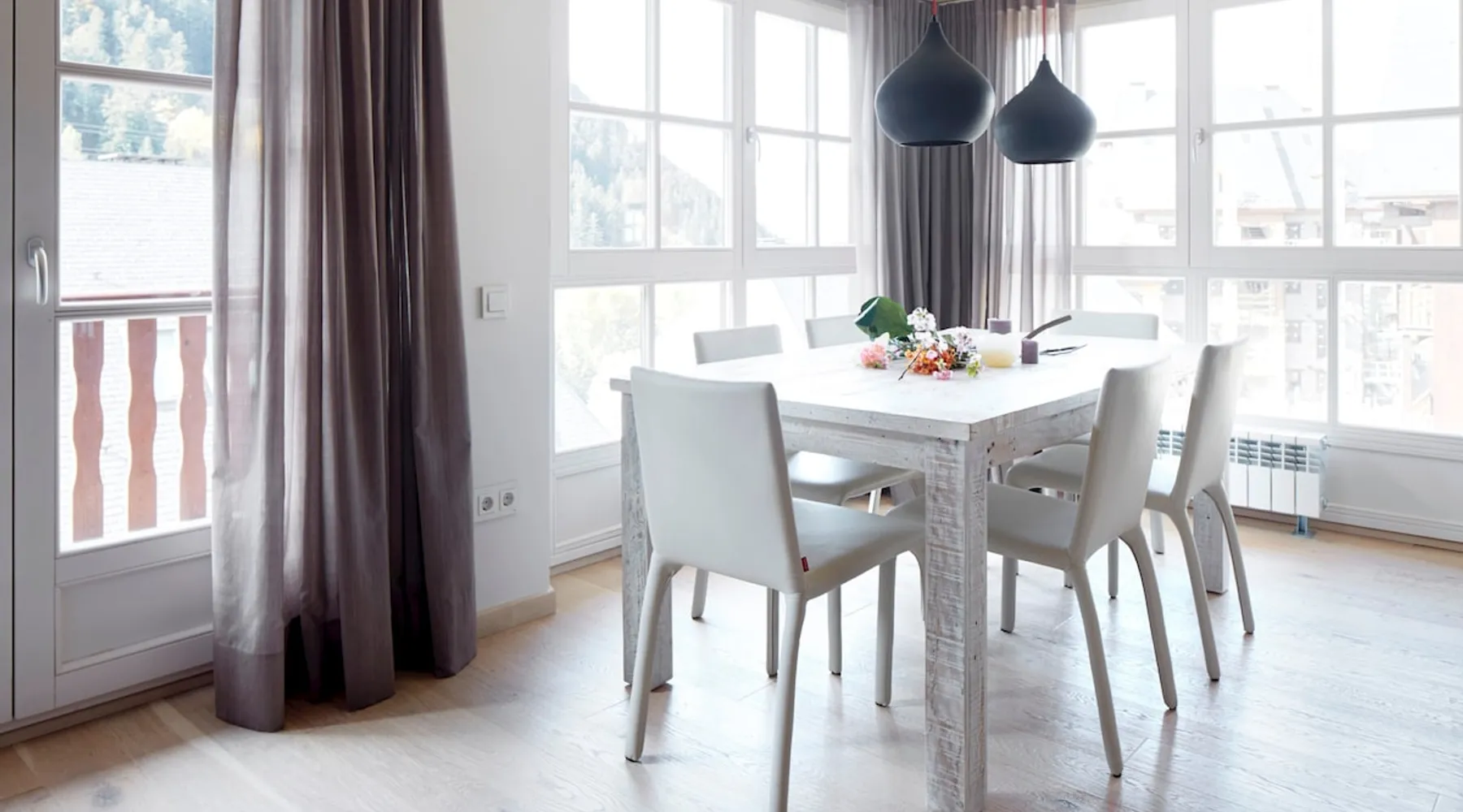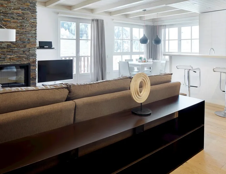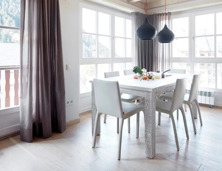Val de Ruda Luxe 32 is the perfect accommodation for a family or group of friends looking for unbeatable location as well as all sorts of comforts in a totally equipped apartment. It offers a roomy open plan lounge-dining room with kitchenette, three bedrooms and two fully fitted bathrooms. The space The apartment is situated in a private residential complex known as "Urbanización Ruda", located at the foot of the ski runs at 1500 metres elevation mark in Baqueira. The access to the cable car is unbeatable. From the apartment, a lift takes us directly to the heated ski equipment room and from here another lift takes us directly to the cable car. On entering the apartment we come into the open plan lounge-dining room and kitchenette. In the lounge area there is a gorgeous L-shape sofa and to the right, by the large windows and French door with direct access to the balcony, you will find a beautiful dining table where you and your party will be able to enjoy wonderful evenings at the end of your day in the ski runs. The kitchenette situated by the dining area is fully equipped with high-quality electric appliances and complete kitchenware as well as a practical breakfast bar. The main bedroom at Val de Ruda Luxe 32 offers a queen size bed and an en-suite bathroom equipped with a shower cubicle. The second bedroom has a triple bunk bed while the third one offers two single beds. These two bedrooms share the second bathroom in the accommodation which is equipped with a bath tub. This accommodation also offers a parking space and a heated ski equipment room in the garage located underneath the building, everything included in the total cost of the rent. You will find other FeelFree managed apartments in the best valley locations, where you will be able to enjoy winter sports in the Baqueira Beret ski resort, such as skiing or hiking and also trekking throughout the beautiful Aran Valley. Other things to note To access your apartment, it is mandatory to complete the online check-in with the details of all travelers over 14 years old and provide a credit card to the host. Registration details Catalonia – Regional registration number HUTVA-000300