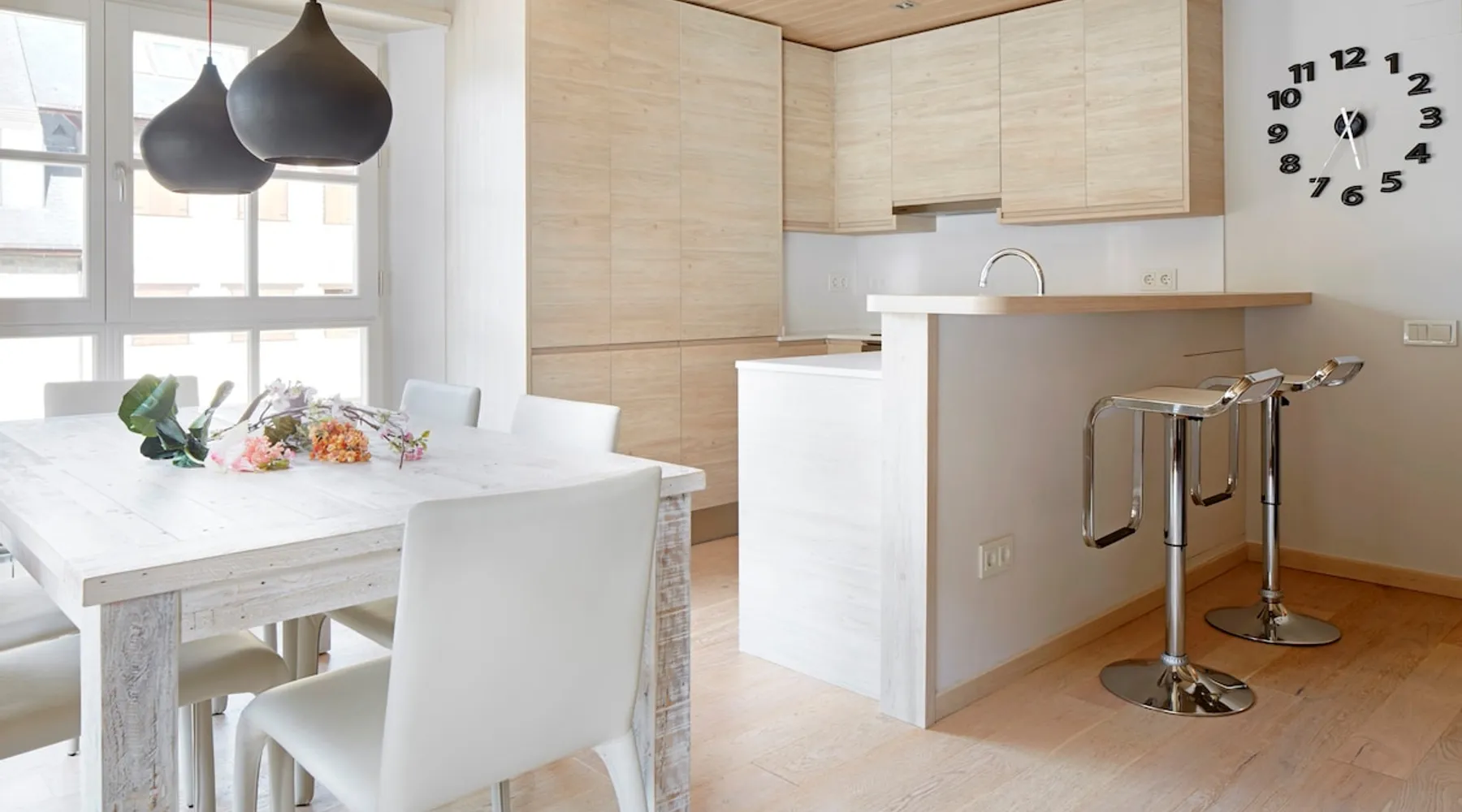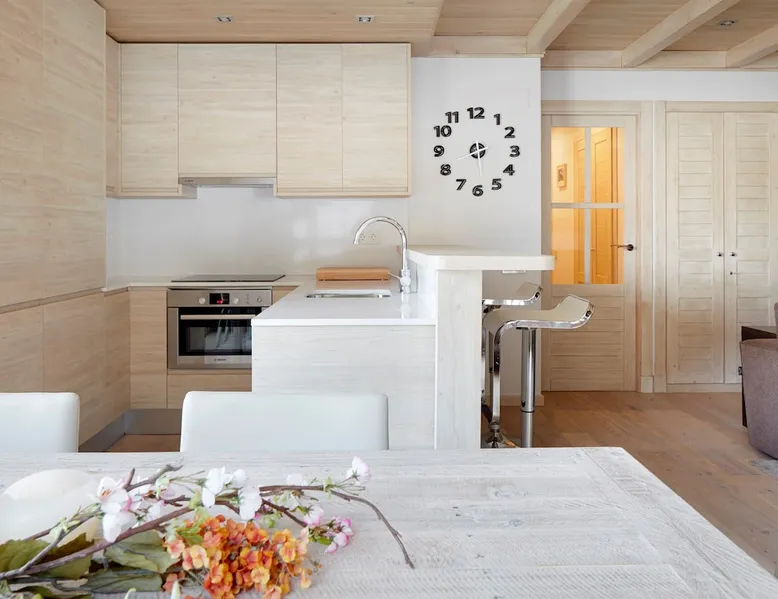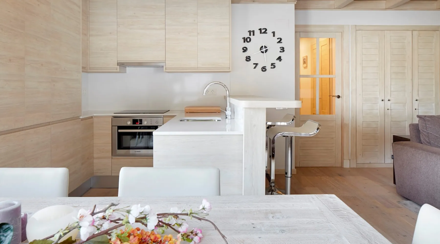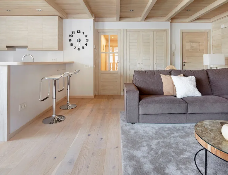 Val de Ruda Luxe 32 is the perfect accommodation for a family or group of friends looking for unbeatable location as well as all sorts of comforts in a totally equipped apartment. It offers a roomy open plan lounge-dining room with kitchenette, three bedrooms and two fully fitted bathrooms. The space The apartment is situated in a private residential complex known as "Urbanización Ruda", located at the foot of the ski runs at 1500 metres elevation mark in Baqueira. The access to the cable car is unbeatable. From the apartment, a lift takes us directly to the heated ski equipment room and from here another lift takes us directly to the cable car. On entering the apartment we come into the open plan lounge-dining room and kitchenette. In the lounge area there is a gorgeous L-shape sofa and to the right, by the large windows and French door with direct access to the balcony, you will find a beautiful dining table where you and your party will be able to enjoy wonderful evenings at the end of your day in the ski runs. The kitchenette situated by the dining area is fully equipped with high-quality electric appliances and complete kitchenware as well as a practical breakfast bar. The main bedroom at Val de Ruda Luxe 32 offers a queen size bed and an en-suite bathroom equipped with a shower cubicle. The second bedroom has a triple bunk bed while the third one offers two single beds. These two bedrooms share the second bathroom in the accommodation which is equipped with a bath tub. This accommodation also offers a parking space and a heated ski equipment room in the garage located underneath the building, everything included in the total cost of the rent. You will find other FeelFree managed apartments in the best valley locations, where you will be able to enjoy winter sports in the Baqueira Beret ski resort, such as skiing or hiking and also trekking throughout the beautiful Aran Valley. Other things to note To access your apartment, it is mandatory to complete the online check-in with the details of all travelers over 14 years old and provide a credit card to the host. Registration details Catalonia – Regional registration number HUTVA-000300