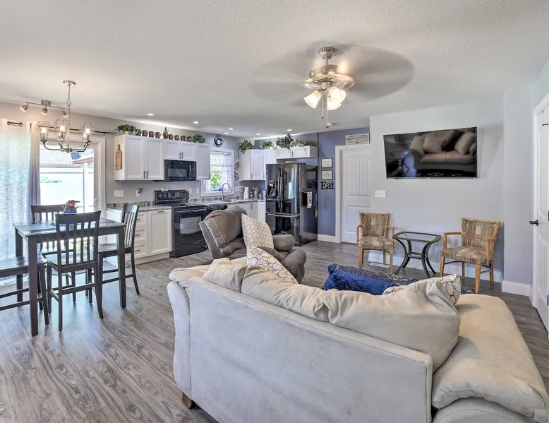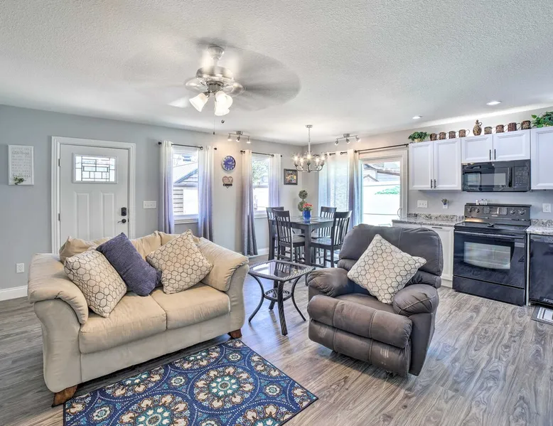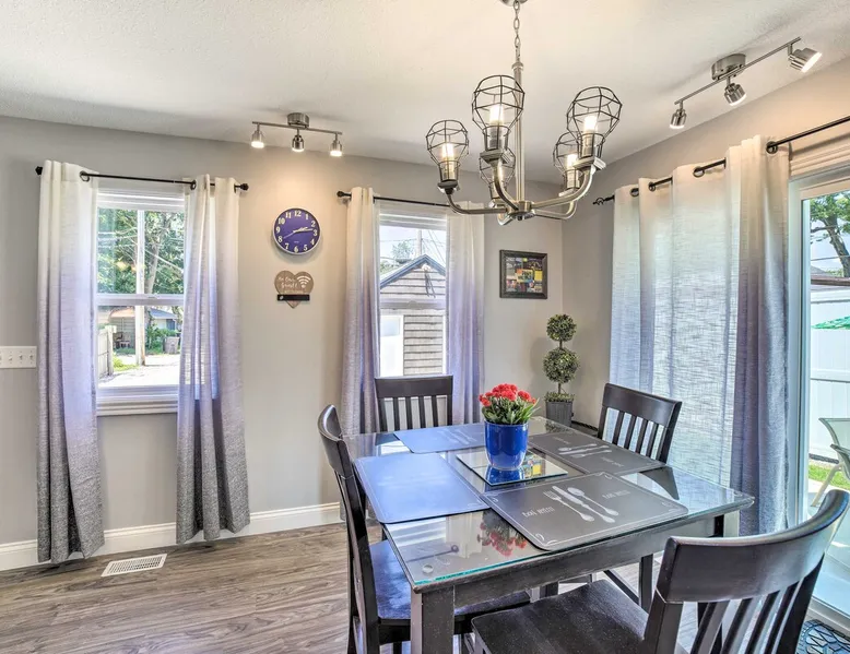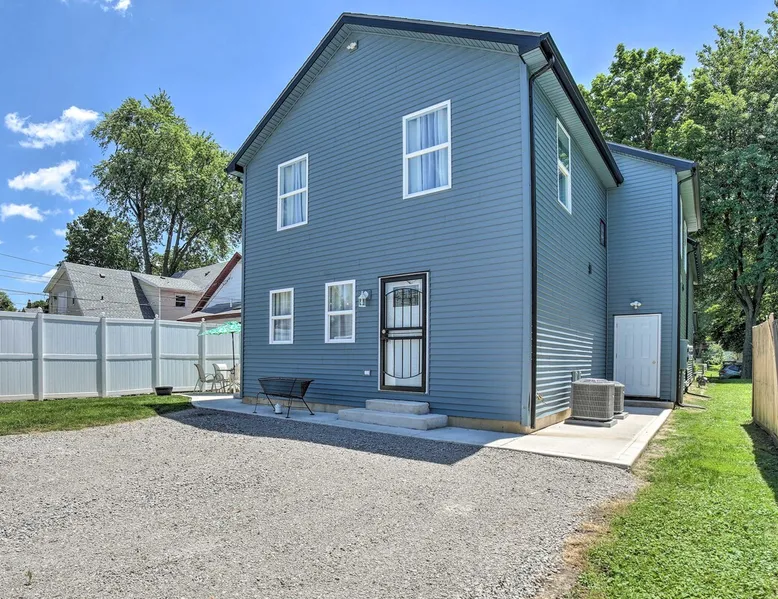 Retreat to Northeast Indiana with your family when you book this fully stocked Fort Wayne duplex! The 3-bedroom, 1.5-bathroom vacation rental offers the perfect launching point as you stroll the riverside trails, visit Main Street's endless shops and eateries, or enjoy a picnic at Headwaters Park. However you choose to spend your days, this abode is the perfect spot to retire early as it comes complete with a full kitchen to prep homemade meals and Smart TVs for family movie nights. The space Half-Mile to Lakeside Park | WFH Friendly | Easy Access to Riverfront Trails Bedroom 1: Queen Bed | Bedroom 2: Twin Bed | Bedroom 3: Twin Bed | Additional Sleeping: Pack 'n Play OUTDOOR LIVING: Front porch w/ seating, bistro set, back patio, dining area w/ umbrella, storage shed INDOOR LIVING: Smart TVs w/ cable, laminate flooring, ceiling fans, dining table, desk workspace, board games, books KITCHEN: Gas stovetop, microwave, dishwasher, blender, coffee maker, Crockpot, toaster, spices, cooking basics, dishware & flatware GENERAL: Free WiFi, central heating & A/C, washer & dryer, linens & towels, complimentary toiletries, hair dryer, keyless entry, safe FAQ: 2 steps up to access, stairs required to access all bedrooms, grab rail in shower, 1 exterior security camera (facing out), pet fee (paid pre-trip, max 1) PARKING: Shared driveway (2 vehicles), free street parking (first-come, first-served) ADDT'L ACCOMMODATIONS: An additional 3-bedroom property for 4 guests is available on-site with a separate nightly rate. If you would like to reserve both rentals, please inquire for more information prior to booking Guest access Guests will have access to the entire property via keyless entry Other things to note - No smoking - Pet friendly w/ $75 fee (+ fees & taxes, max 1) - No events, parties, or large gatherings - Must be at least 25 years old to book - Additional fees and taxes may apply - Photo ID may be required upon check-in - NOTE: There are other bookable vacation rentals on-site; other travelers may be present during your stay - NOTE: The property requires stairs to enter and access all bedrooms - NOTE: Your safety matters. This property features 1 exterior security camera located on the side of the house facing the front/back door. It does not look into any interior spaces. The camera records video and sound at all times