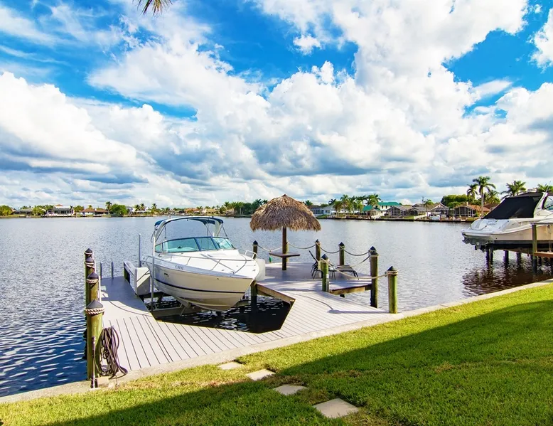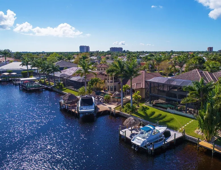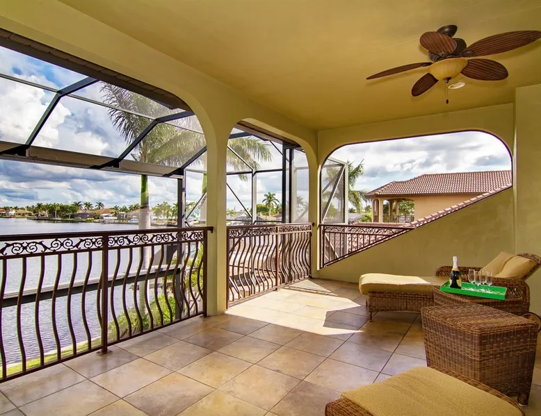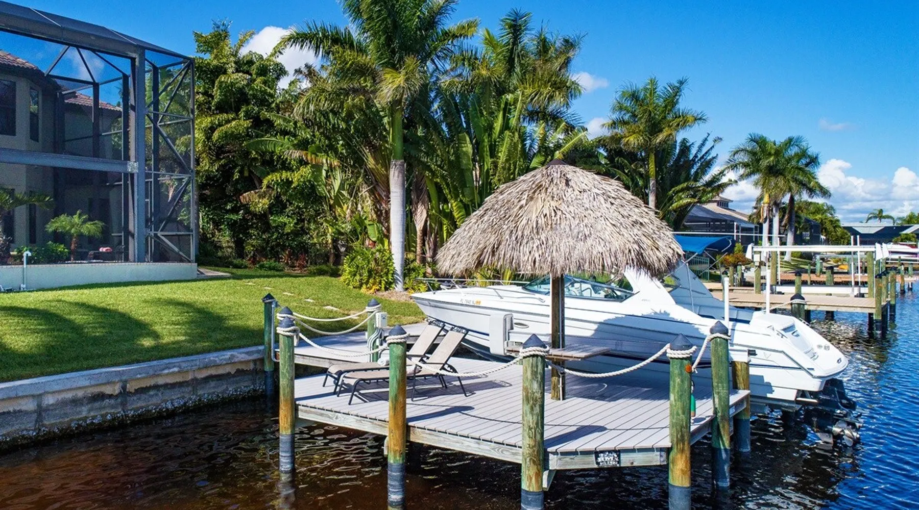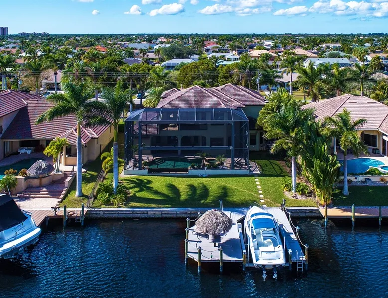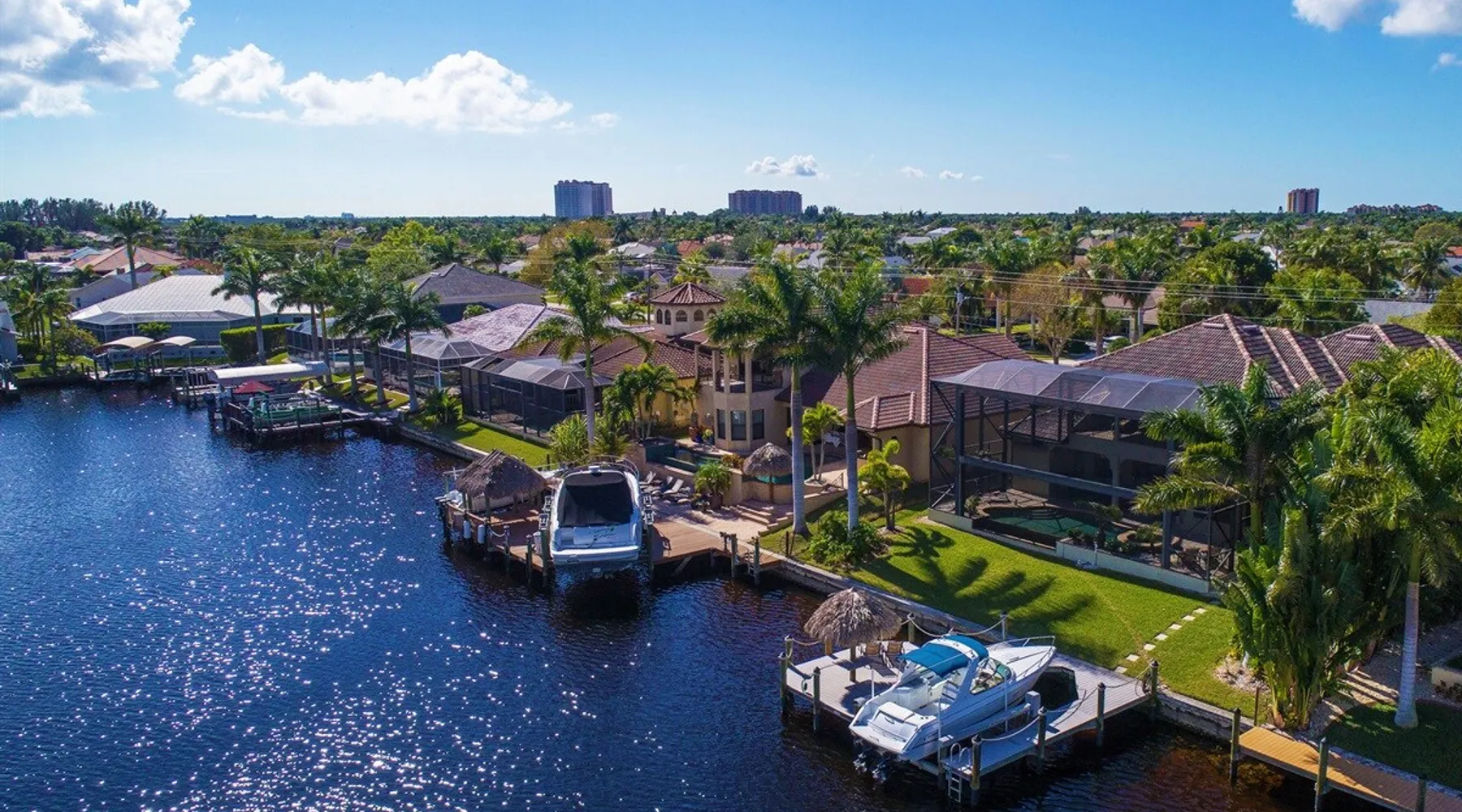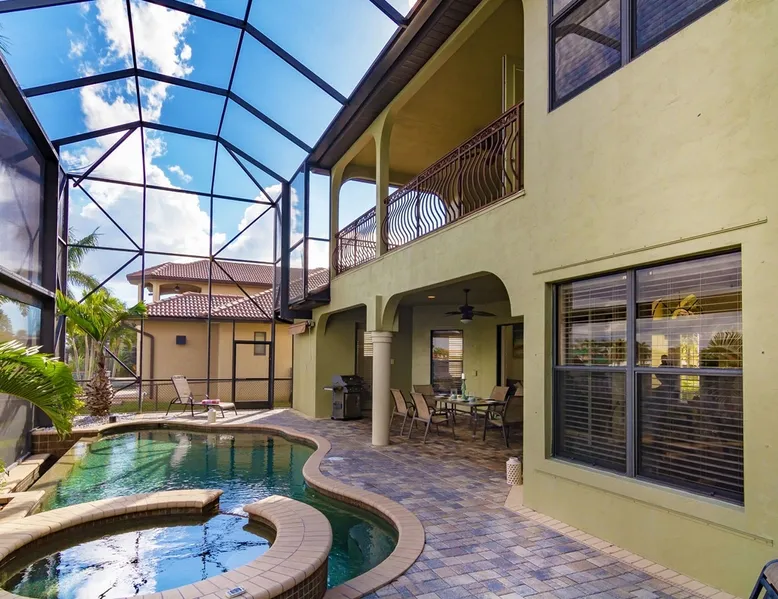 Tropical Waterfront Paradise with Gulf Access. Heated infinity pool and spa. The space Stylish, spacious villa for 10 people in a prime location on Britannia Lake, dream view. This high standard 5 bedrooms (two king-size, three queen-size), 4-bathroom villa offers everything for a memorable holiday. Enjoy the expansive, breathtaking views of the water from the large sun deck with a heated infinity pool and spa, or from the inviting veranda on the 2nd floor. The master suite as well as the second living room are upstairs on the second floor so you'll have plenty of space for yourself. Relax under the tiki hat on the boat dock for happy hour and watch the fish and dolphins. Early risers will be rewarded with unique sunrises over the lake. By boat you can reach the river in 20 minutes (without lock), the marina, restaurants, and supermarkets are in the immediate vicinity. The same applies to a large selection of golf courses and the tropical islands of Sanibel and Captiva. The house has full entertainment electronics including free wireless internet access, each bedroom is equipped with a TV. You will be required to sign a rental agreement and credit card authorization form, which can be done electronically. You must be at least 25 years old to rent this property. Access to the home will be restricted if requirements are not completed. This property requires an energy contribution payment of $0.22 per KWh plus tax. Please note it when making your reservation. Short Description Stylish, spacious villa for 10 people in a prime location on Britannia Lake, dream view. This high standard 5 bedrooms (two king-size, three queen-size), 4-bathroom villa offers everything for a memorable holiday. Enjoy the breathtaking views of the water from the large sun deck with a heated infinity pool and spa, or from the inviting veranda on the 2nd floor. The Space Relax under the tiki hat on the boat dock for happy hour and watch the fish and dolphins. Early risers will be rewarded with unique sunrises over the lake. By boat you can reach the river in 20 minutes (without lock), the marina, restaurants, and supermarkets are in the immediate vicinity. The same applies to a large selection of golf courses and the tropical islands of Sanibel and Captiva. The house has full entertainment electronics including free wireless internet access, each bedroom is equipped with a TV. On the terrace is a large Weber grill available. Features Description You will be required to sign a rental agreement and credit card authorization form, which can be done electronically. The minimum age to place a reservation is 25 years. Access to the home can be restricted if requirements are not completed. This property requires an energy contribution payment of $0.22 per KWh plus tax. A hold of $15 per day is required and will be placed on your card prior to your arrival. The actual amount will be charged after your stay based on your energy consumption.