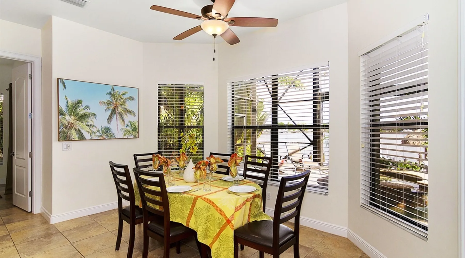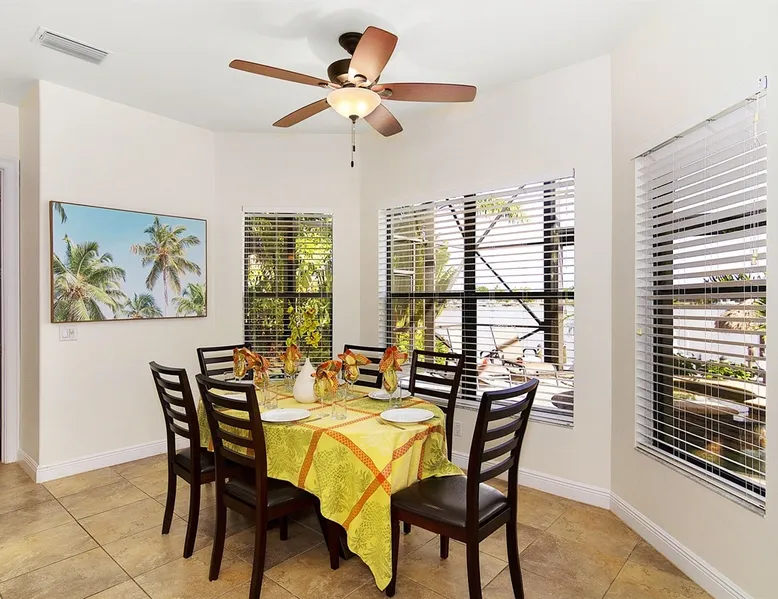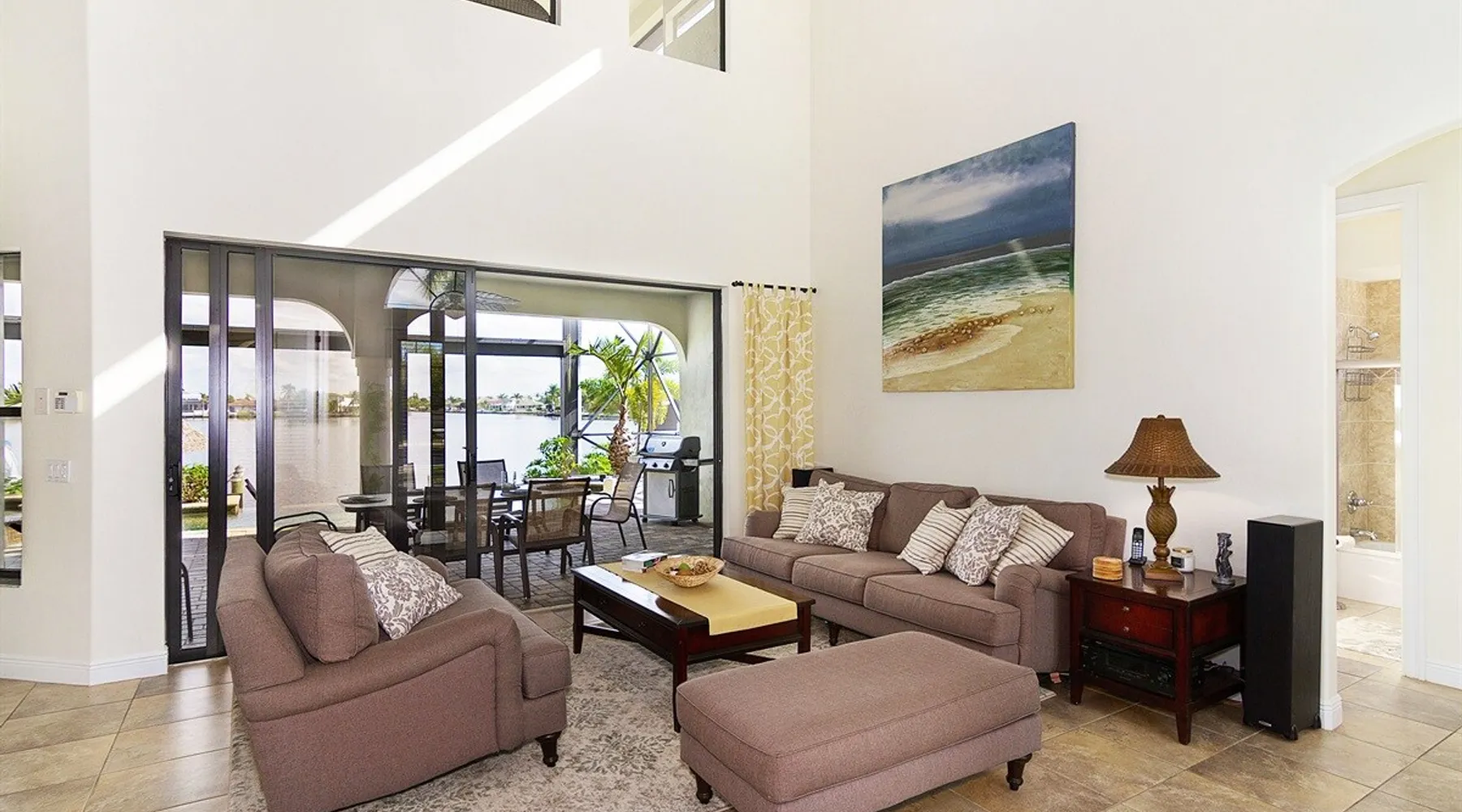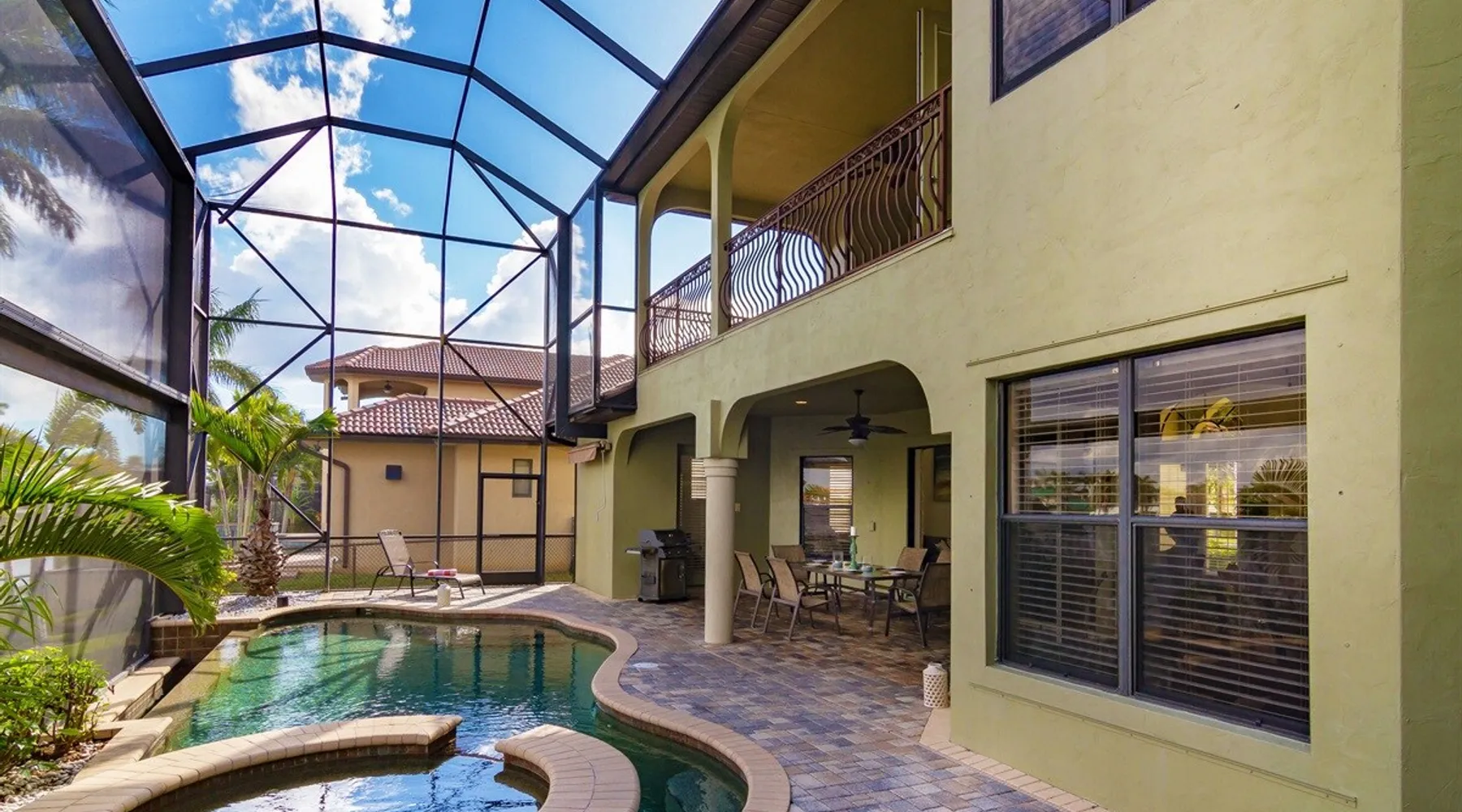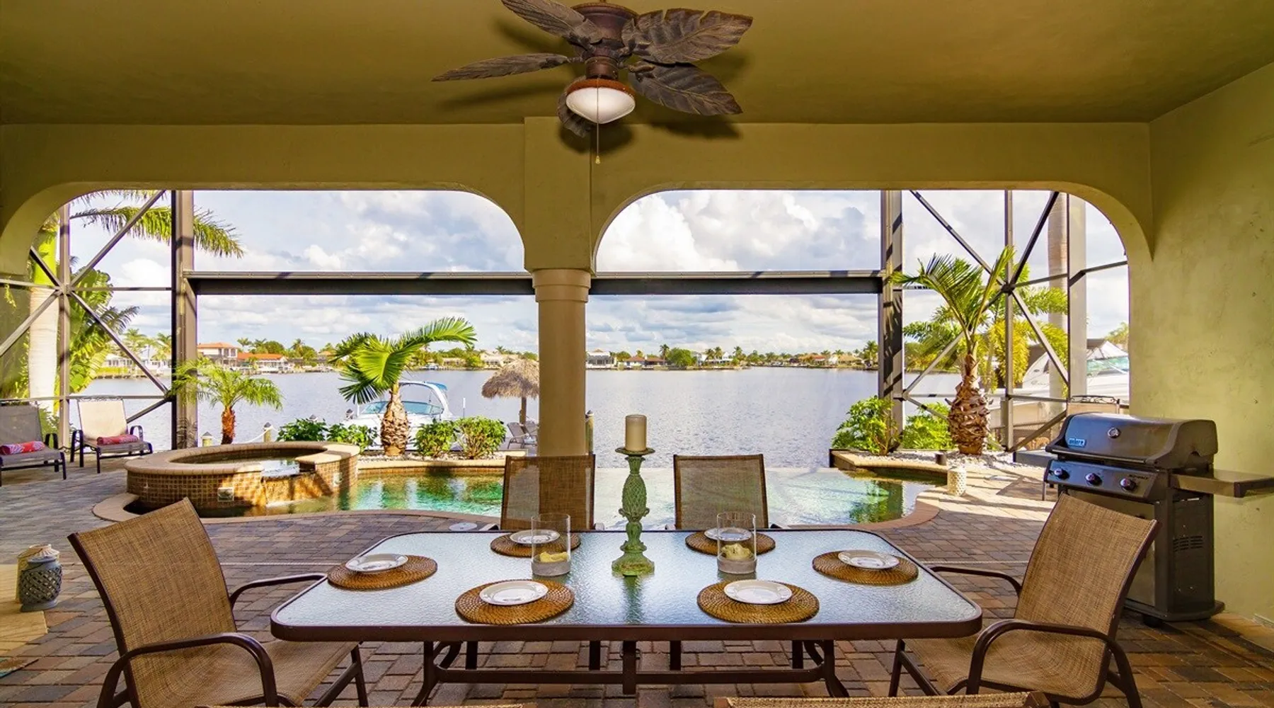 Tropical Waterfront Paradise with Gulf Access. Heated infinity pool and spa. The space Stylish, spacious villa for 10 people in a prime location on Britannia Lake, dream view. This high standard 5 bedrooms (two king-size, three queen-size), 4-bathroom villa offers everything for a memorable holiday. Enjoy the expansive, breathtaking views of the water from the large sun deck with a heated infinity pool and spa, or from the inviting veranda on the 2nd floor. The master suite as well as the second living room are upstairs on the second floor so you'll have plenty of space for yourself. Relax under the tiki hat on the boat dock for happy hour and watch the fish and dolphins. Early risers will be rewarded with unique sunrises over the lake. By boat you can reach the river in 20 minutes (without lock), the marina, restaurants, and supermarkets are in the immediate vicinity. The same applies to a large selection of golf courses and the tropical islands of Sanibel and Captiva. The house has full entertainment electronics including free wireless internet access, each bedroom is equipped with a TV. You will be required to sign a rental agreement and credit card authorization form, which can be done electronically. You must be at least 25 years old to rent this property. Access to the home will be restricted if requirements are not completed. This property requires an energy contribution payment of $0.22 per KWh plus tax. Please note it when making your reservation. Short Description Stylish, spacious villa for 10 people in a prime location on Britannia Lake, dream view. This high standard 5 bedrooms (two king-size, three queen-size), 4-bathroom villa offers everything for a memorable holiday. Enjoy the breathtaking views of the water from the large sun deck with a heated infinity pool and spa, or from the inviting veranda on the 2nd floor. The Space Relax under the tiki hat on the boat dock for happy hour and watch the fish and dolphins. Early risers will be rewarded with unique sunrises over the lake. By boat you can reach the river in 20 minutes (without lock), the marina, restaurants, and supermarkets are in the immediate vicinity. The same applies to a large selection of golf courses and the tropical islands of Sanibel and Captiva. The house has full entertainment electronics including free wireless internet access, each bedroom is equipped with a TV. On the terrace is a large Weber grill available. Features Description You will be required to sign a rental agreement and credit card authorization form, which can be done electronically. The minimum age to place a reservation is 25 years. Access to the home can be restricted if requirements are not completed. This property requires an energy contribution payment of $0.22 per KWh plus tax. A hold of $15 per day is required and will be placed on your card prior to your arrival. The actual amount will be charged after your stay based on your energy consumption.