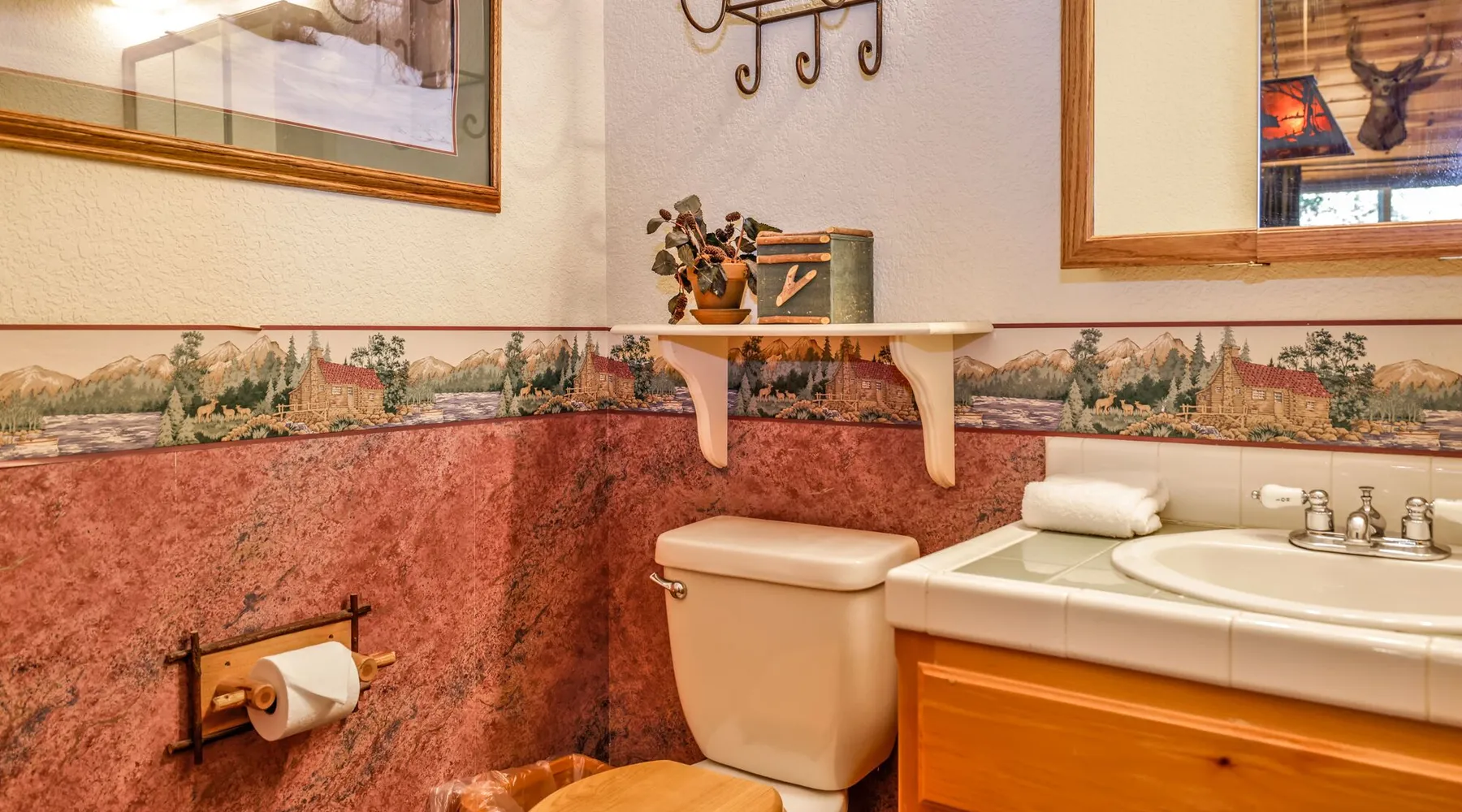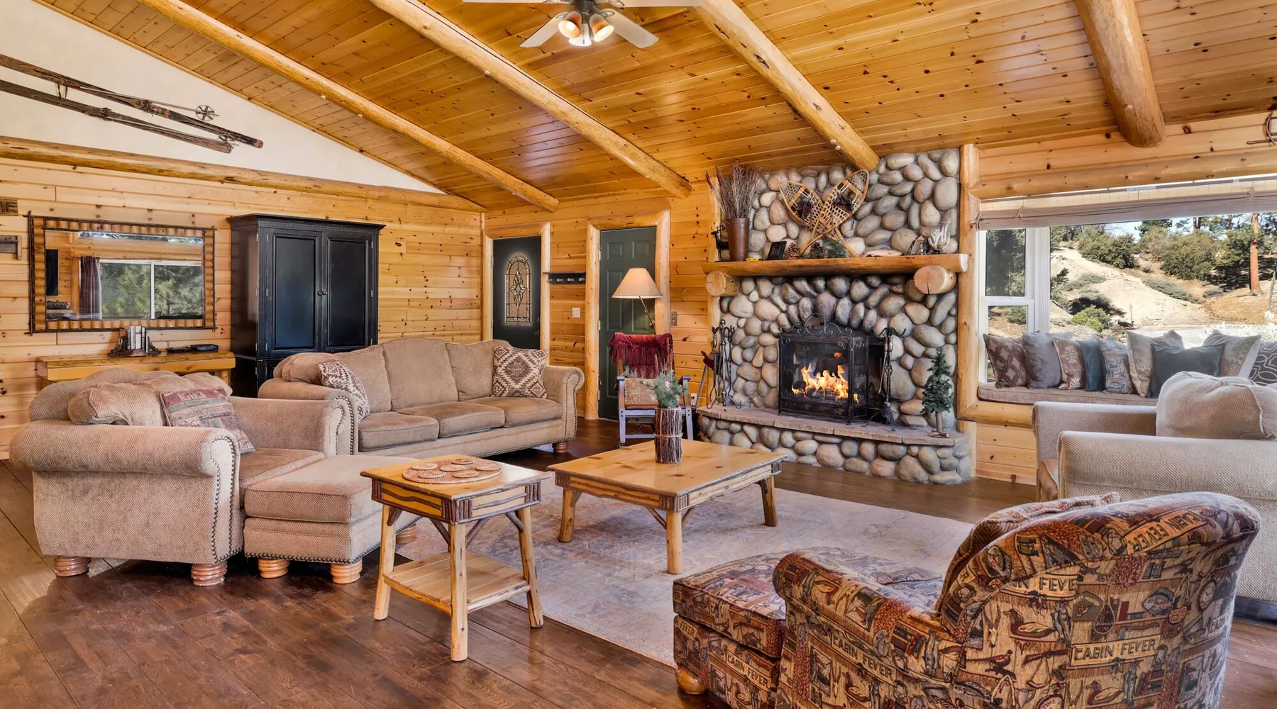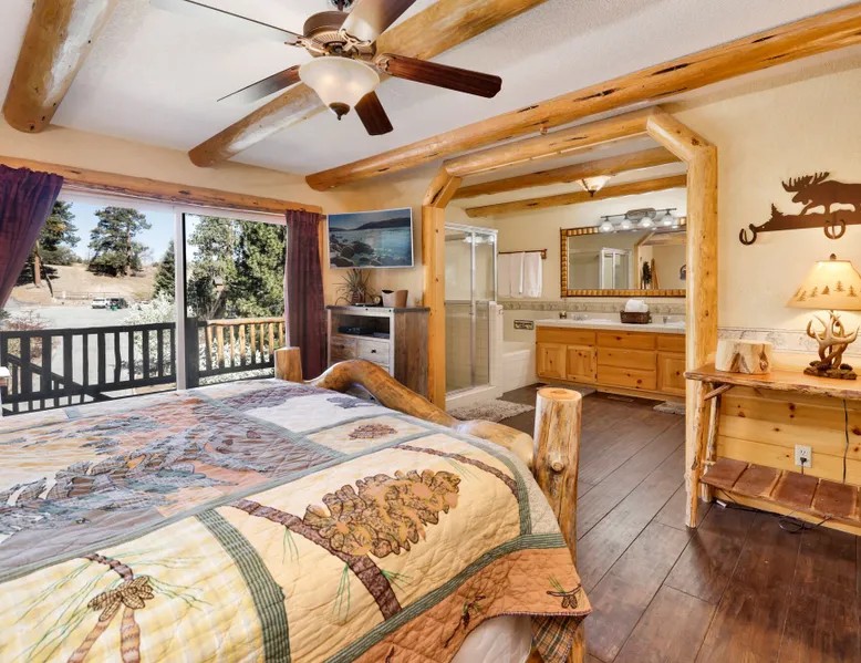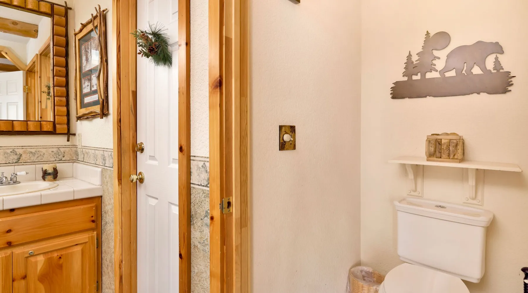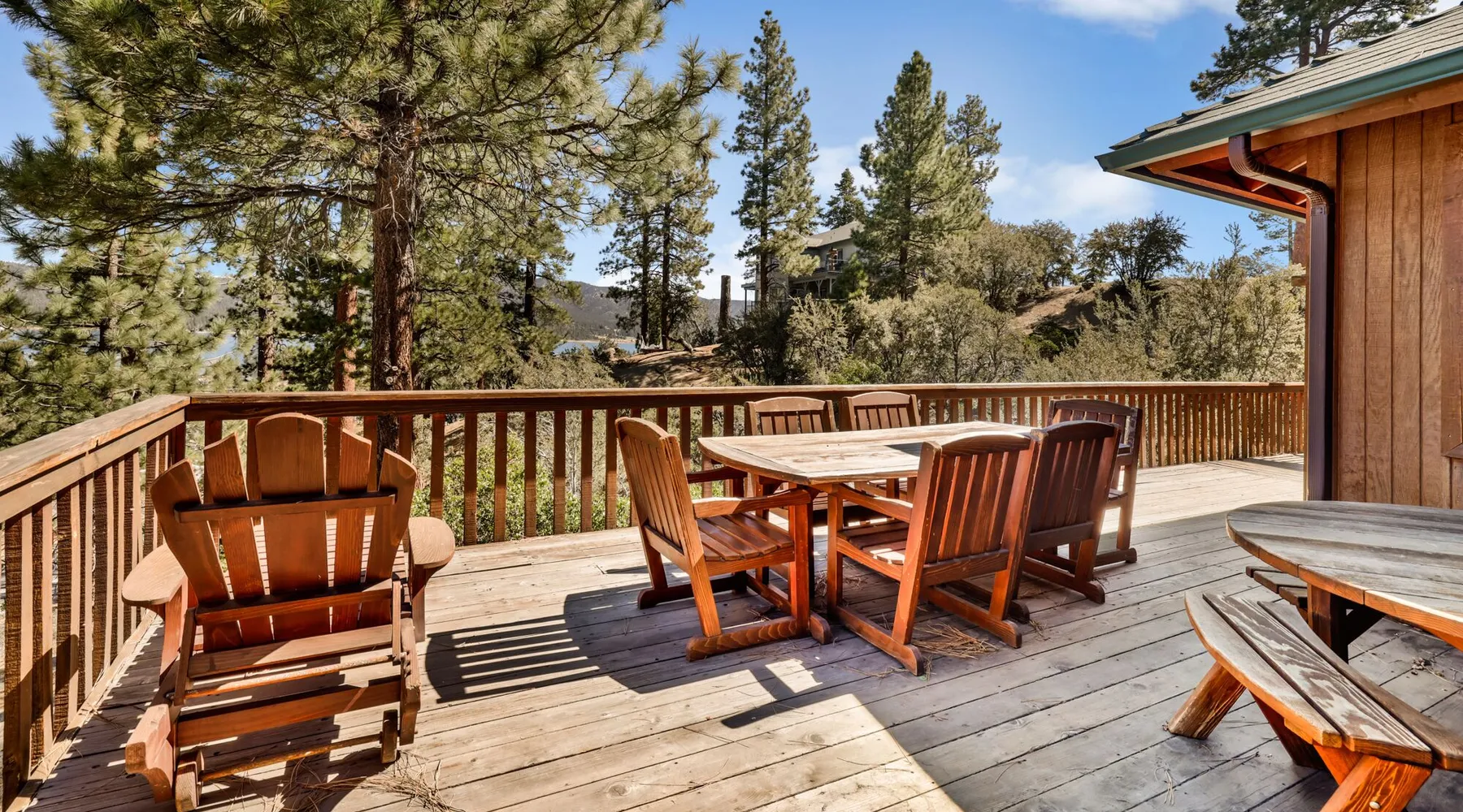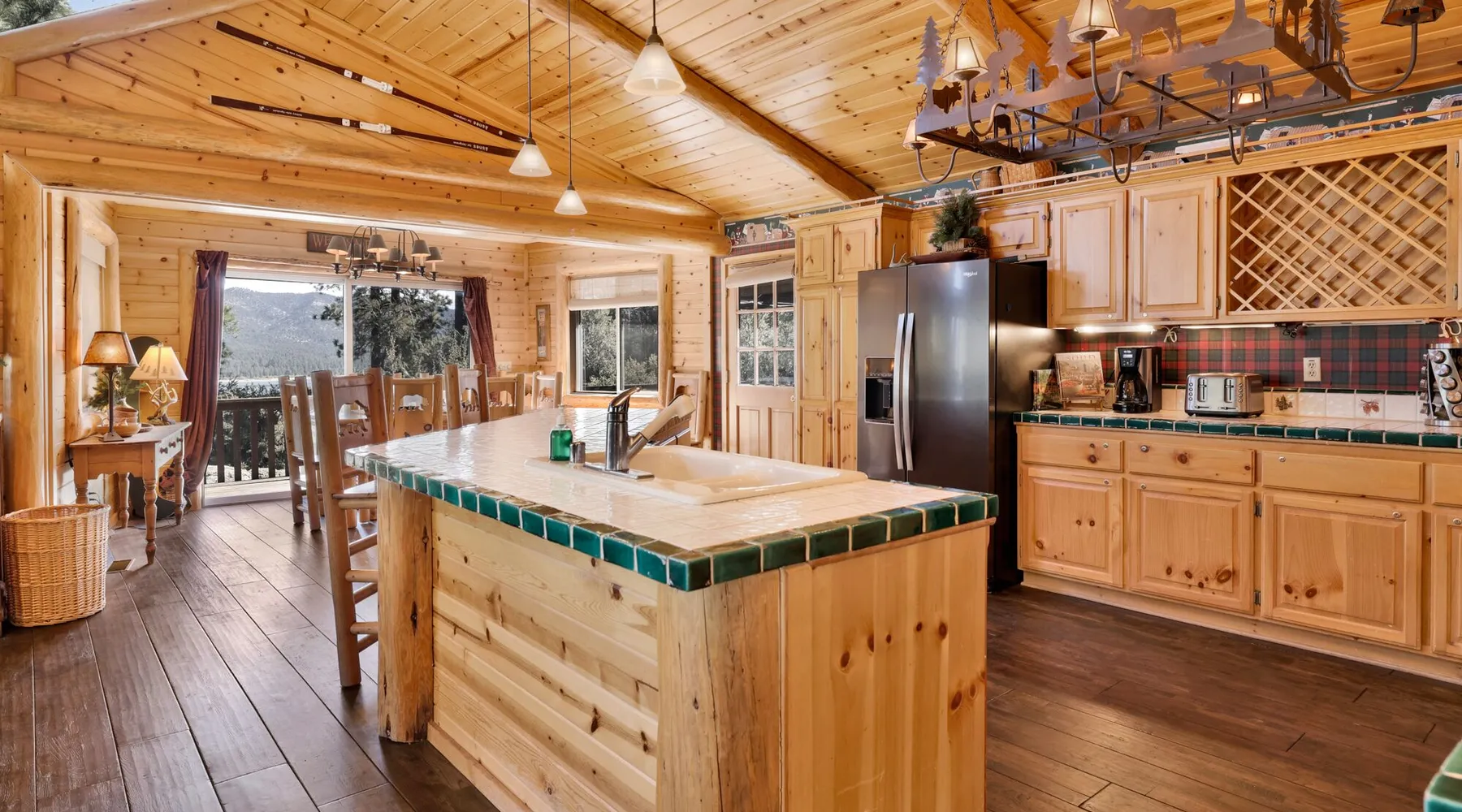 Alpine Lodge Cozy Cabin w/ Hot Tub Alpine Lodge is the perfect getaway log cabin for those looking to enjoy the best of Big Bear at their fingertips. Our charming lake-view home sits just above the Village and lake, featuring the essentials for a perfect mountain vacation in the trees, and the best walkable location in town year round. Boasting central forced heat, cathedral pine beamed ceilings, a packed game room guest apartment above the garage, and your own private hot tub under the stars on the sun deck, your group will be comfortable and cozy no matter the season! After climbing the stairs you will enter into your cozy and comfortable living room area which boasts custom mountain furnishings and décor, wonderful mountain views, and breathtaking floor to ceiling windows for you to enjoy the views or snow falling outside. Snuggle up on the plush couches and chairs as you warm up around the toasty river rock wood burning fireplace or enjoy a movie night or Game Day on the mounted flat screen TV with complimentary Cable and hi speed WIFI provided for your enjoyment. Enjoy direct access here out to your gorgeous sun deck with ample patio furnishings and a propane BBQ for your enjoyment. Soak up your day of adventures on the lake here in your own private hot tub under the stars in the evenings. The chef of your group will love the equipped open floor-plan kitchen and dining room areas, complete with massive windows overlooking the gorgeous lake and valley, you will love enjoying your meals here at the custom log dining table! The beautiful kitchen offers pine cabinets stocked with cooking essentials and appliances including a dishwasher to whip up your home-cooked meals. This main level boasts a separate laundry room area with a washer and dryer for those wet snow clothes and long term stays while you can enjoy direct deck access to the wonderful sun deck here. Being a single level chalet you will have easy and convenient access to your main house bedrooms and bathrooms each of which is made up for your group with warm linens, blankets, pillows, and fresh shower towels when you arrive for your vacation. Head outside and down the stairs through the 2 car garage to gain access to your SEPARATE game room and 4th bedroom guest apartment. This private escape offers a comfy Sleeper Sofa and half bath paired with a full size pool table, toasty gas faux log fireplace, and an added TV with Cable available. This is the perfect separation for the teens or a couple vacationing along that deserves a little bit more privacy while still being able to enjoy the mountain together. Alpine Lodge truly has it all- pairing the necessities from home with all that you would need in your next vacation home along with a prime downtown location, your group will be sure to make the best memories here! Hop in the car and you are at either ski resort or the grocery store in under ten minutes! Sleeping Arrangements: Bedroom 1: Queen Bed, TV w/Cable, Private Open Bath, Private Balcony Bedroom 2: Queen Bed Bedroom 3: Full/Twin Bunk Separate Apartment Above Garage- Queen Sofa Sleeper, Pool Table, TV w/ Cable, Half Bath Bathroom Arrangements Private Full Bath- Bedroom 1- Hallway Full Bath- Half Bath- Apartment Above Garage -Sleeps 9 -3 Car Parking | Driveway (2) + Garage (1) -2 Pets Welcome w/ Additional Fee -2,204 Square Feet City Permit # VRR-2024-2380