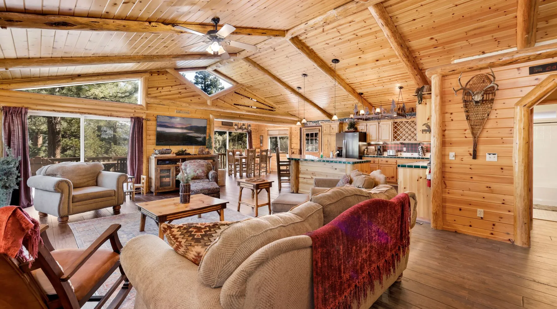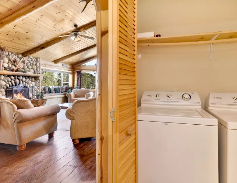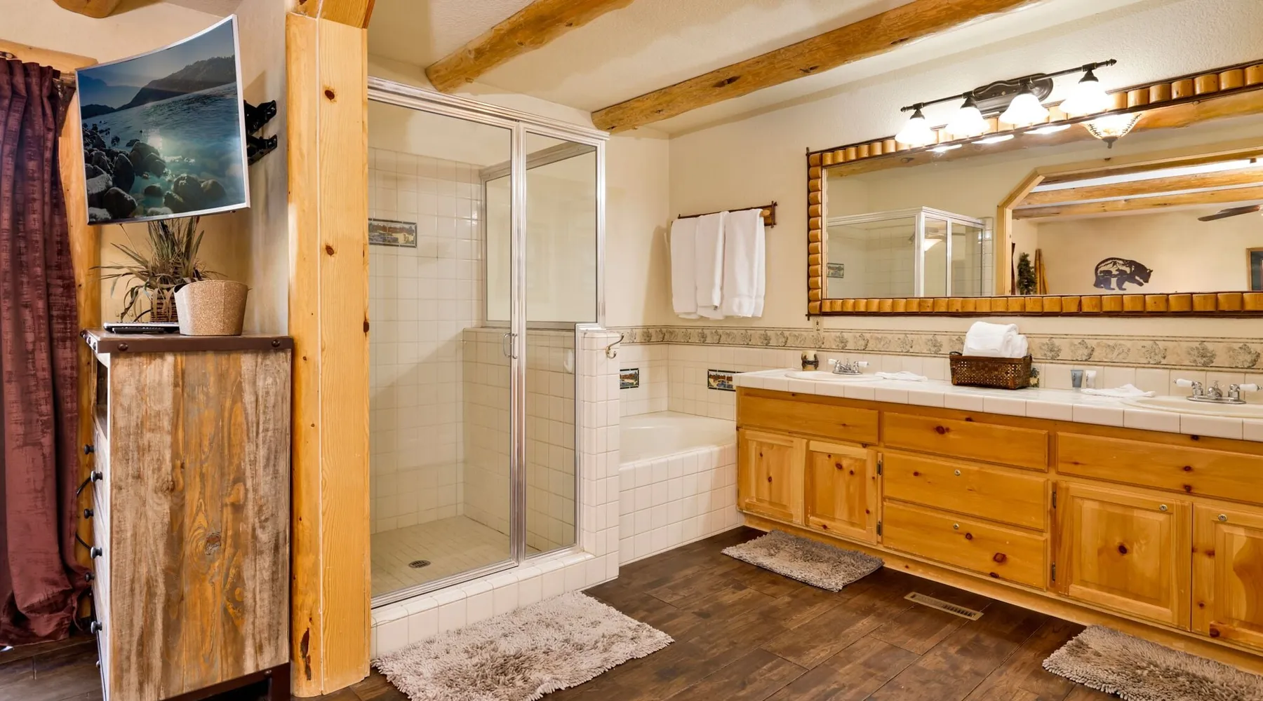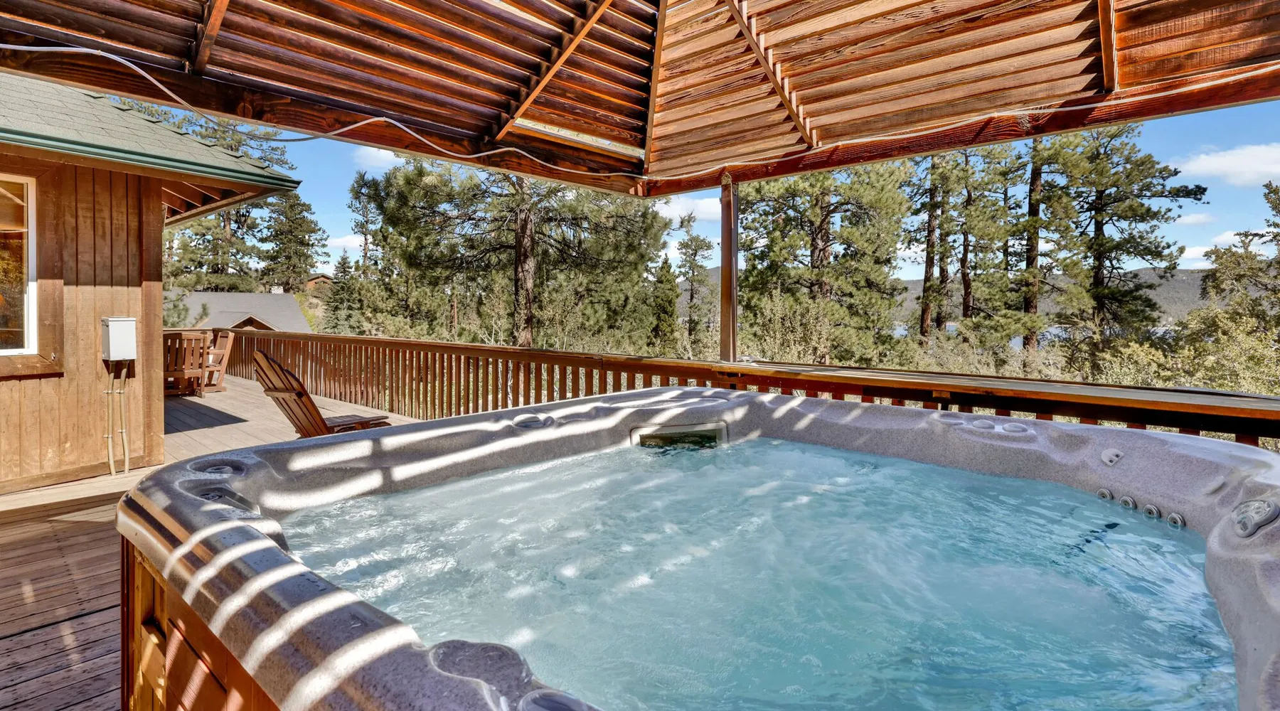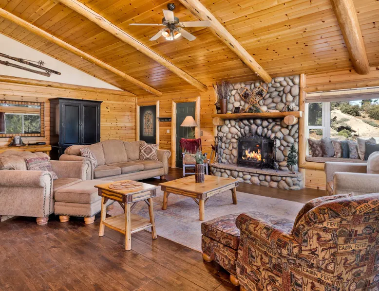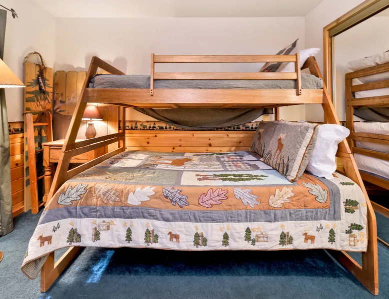 Alpine Lodge Cozy Cabin w/ Hot Tub Alpine Lodge is the perfect getaway log cabin for those looking to enjoy the best of Big Bear at their fingertips. Our charming lake-view home sits just above the Village and lake, featuring the essentials for a perfect mountain vacation in the trees, and the best walkable location in town year round. Boasting central forced heat, cathedral pine beamed ceilings, a packed game room guest apartment above the garage, and your own private hot tub under the stars on the sun deck, your group will be comfortable and cozy no matter the season! After climbing the stairs you will enter into your cozy and comfortable living room area which boasts custom mountain furnishings and décor, wonderful mountain views, and breathtaking floor to ceiling windows for you to enjoy the views or snow falling outside. Snuggle up on the plush couches and chairs as you warm up around the toasty river rock wood burning fireplace or enjoy a movie night or Game Day on the mounted flat screen TV with complimentary Cable and hi speed WIFI provided for your enjoyment. Enjoy direct access here out to your gorgeous sun deck with ample patio furnishings and a propane BBQ for your enjoyment. Soak up your day of adventures on the lake here in your own private hot tub under the stars in the evenings. The chef of your group will love the equipped open floor-plan kitchen and dining room areas, complete with massive windows overlooking the gorgeous lake and valley, you will love enjoying your meals here at the custom log dining table! The beautiful kitchen offers pine cabinets stocked with cooking essentials and appliances including a dishwasher to whip up your home-cooked meals. This main level boasts a separate laundry room area with a washer and dryer for those wet snow clothes and long term stays while you can enjoy direct deck access to the wonderful sun deck here. Being a single level chalet you will have easy and convenient access to your main house bedrooms and bathrooms each of which is made up for your group with warm linens, blankets, pillows, and fresh shower towels when you arrive for your vacation. Head outside and down the stairs through the 2 car garage to gain access to your SEPARATE game room and 4th bedroom guest apartment. This private escape offers a comfy Sleeper Sofa and half bath paired with a full size pool table, toasty gas faux log fireplace, and an added TV with Cable available. This is the perfect separation for the teens or a couple vacationing along that deserves a little bit more privacy while still being able to enjoy the mountain together. Alpine Lodge truly has it all- pairing the necessities from home with all that you would need in your next vacation home along with a prime downtown location, your group will be sure to make the best memories here! Hop in the car and you are at either ski resort or the grocery store in under ten minutes! Sleeping Arrangements: Bedroom 1: Queen Bed, TV w/Cable, Private Open Bath, Private Balcony Bedroom 2: Queen Bed Bedroom 3: Full/Twin Bunk Separate Apartment Above Garage- Queen Sofa Sleeper, Pool Table, TV w/ Cable, Half Bath Bathroom Arrangements Private Full Bath- Bedroom 1- Hallway Full Bath- Half Bath- Apartment Above Garage -Sleeps 9 -3 Car Parking | Driveway (2) + Garage (1) -2 Pets Welcome w/ Additional Fee -2,204 Square Feet City Permit # VRR-2024-2380