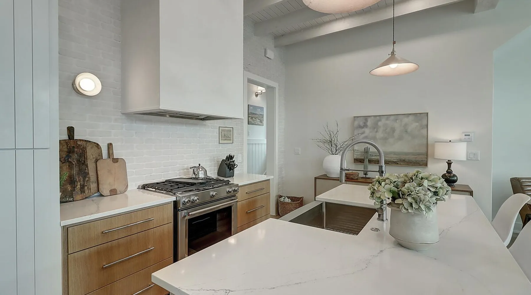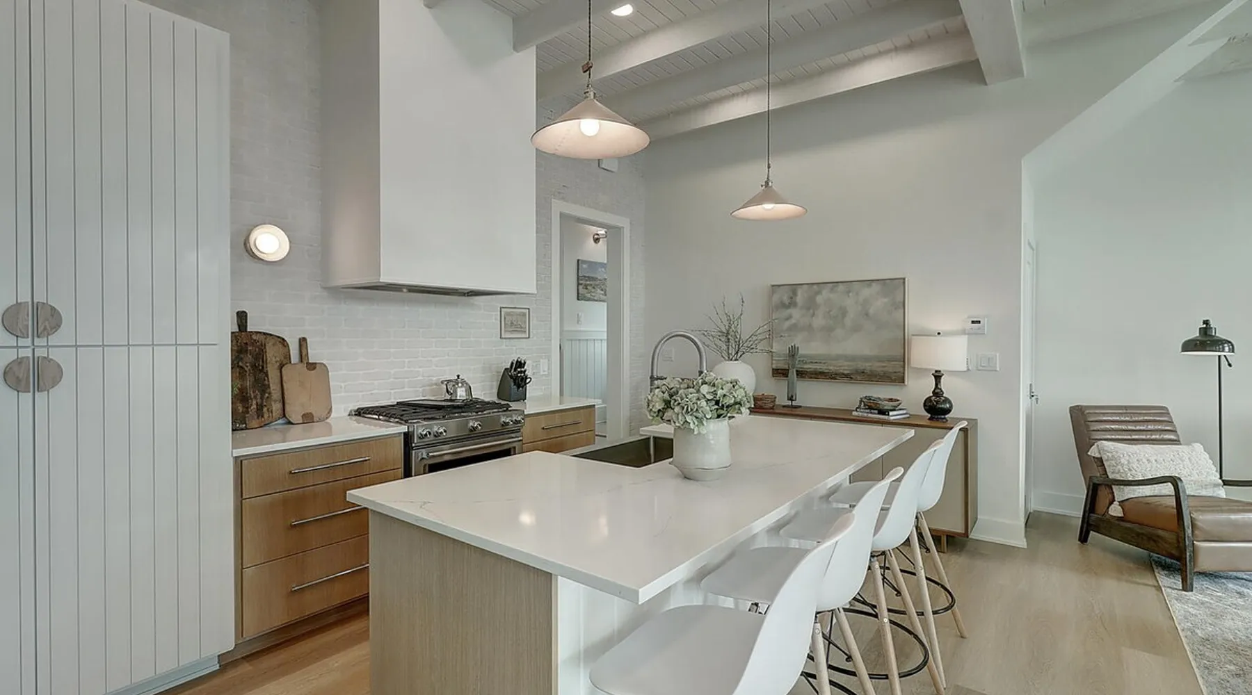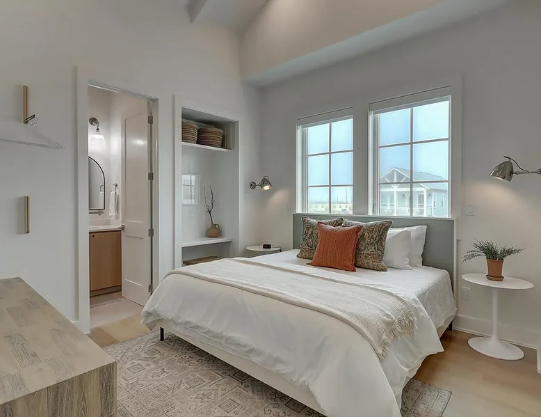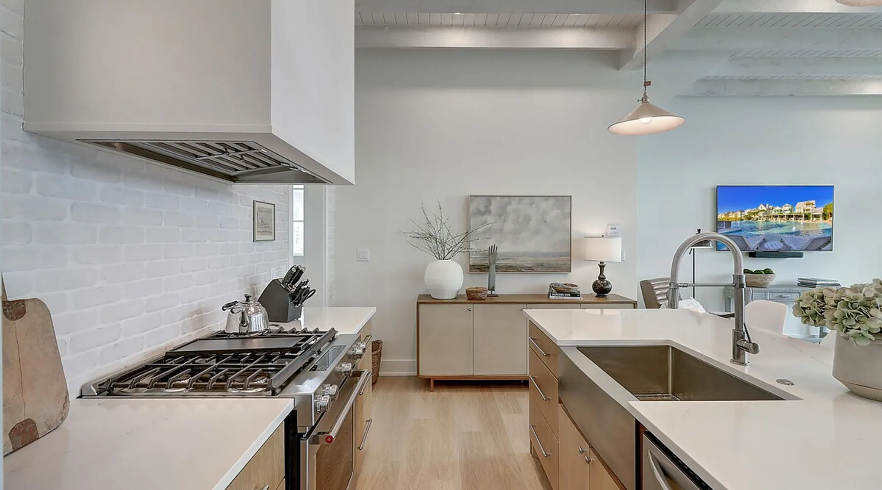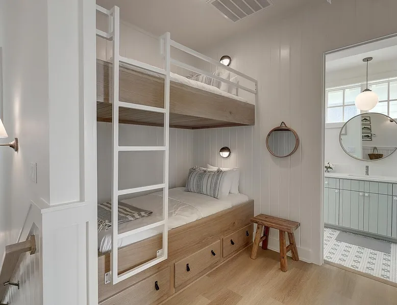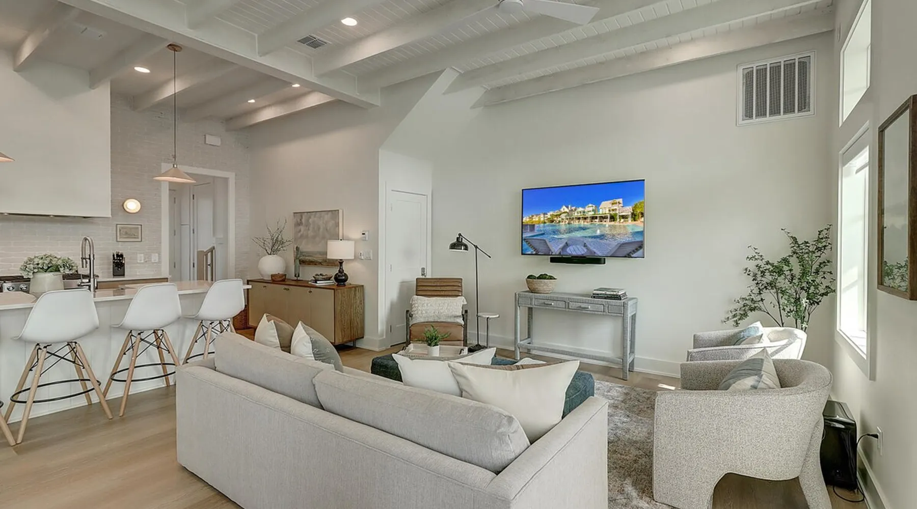 This three-bedroom beauty backs up to the lake at Cinnamon Shore South! You’ll have easy access to the lake boardwalk, the community’s stunning, new, cabana-lined pool, and, of course, the dune crossover that leads to the beach! Relax amid coastal contemporary interiors and enjoy the extra bunk area that extends the sleeping quarters. Don’t forget: When you stay at South, you also have access to three more pools and on-site dining at Cinnamon Shore North—just one mile up the beach! The space AMENITIES: At South, enjoy resort-style amenities such as the Cabana Pool with infinity edge; the new Splish Splash Family Pool with infinity edge and splash pad; Tailwind Park, Coastline Fire Lounge and other parks; serene lakes and ponds; a community pier; overlook pavilions and playscape. You also can access amenities at Cinnamon Shore North: pools, lakes, fitness center, on-site restaurants, and Town Center fun. MAIN LIVING SPACE: A classic, coastal exterior opens to the home’s main living space on the first floor, combining comfortable family room, a great dining area seating 6, and a handsome, contemporary kitchen with gas range and stainless appliances. Stool seating at the island adds three spots for chatting with the cook or morning cereal for the kids. A powder room serves this gathering place. You’ll love the details, like vintage coastal artwork, wispy, wicker shades on light fixtures, and exposed rafters along the ceiling for cottage appeal. Sit back and enjoy the lake view through the multiple windows. SLEEPING QUARTERS: On the first floor, an open bunk offers an extra-large twin-over-twin bunk. Upstairs, the primary king suite feels spacious under the gabled roofline, and the bathroom offers dual vanities and a glass-front shower. A second master suite on this level also has a private bath, but with a tub/shower combo. Finally, a third bedroom presents a pair of extra-large twin beds, along with an area in the adjacent hallway offering another pair of extra-large twin bunks. A hallway bathroom serves all four of the bunkmates who can stay on this floor. GREAT FEATURES: Clean lines on furnishings and a mix of wood tones throughout create an eclectic look with a mid-century modern vibe. Simple, coastal artwork and details like a wooden, port hole-shaped mirror nod to the coast with the elegance of minimalism. An outdoor shower washes sand away when coming back from the beach, and a washer/dryer keeps beach towels and resort wear in order. The Salted Cottage combines the best of lakeside living and beach life! Enjoy the home’s stylish flair, made for relaxing times with family and friends. Book today! *Please be advised there is construction beside this property. Construction is limited to normal business hours 8am-6pm Monday-Saturday. Please call the office for more information. **Driving 1.5 miles is necessary from Cinnamon Shore South to access Cinnamon Shore North's amenities. ***NO PETS ALLOWED*** IF A PET IS SEEN ENTERING A NON-PET-FRIENDLY HOME, THE GUEST WILL BE CHARGED A PENALTY AND/OR EVICTED. The Salted Cottage is a non-pet friendly property, if a pet is seen entering The Salted Cottage the homeowner and/or Cinnamon Shore Vacation Rentals has the right to immediately evict the renter with no refunds, regardless of the time of day or night. An automatic non-refundable penalty fee of $1000 will be added to the reservation, as well as any additional charges related to cleaning fees and/or damage in the home. Please review all policies at: *Please be advised there is construction at the Cinnamon Shore South property. Construction is limited to normal business hours 8 am-6 pm Monday-Saturday. Please call the office for more information. **Driving 1.5 miles is necessary from Cinnamon Shore South to access Cinnamon Shore North's amenities. *Smart TV and Live TV capabilities available, no direct cable STRR#572518