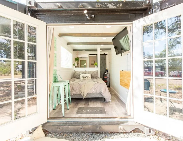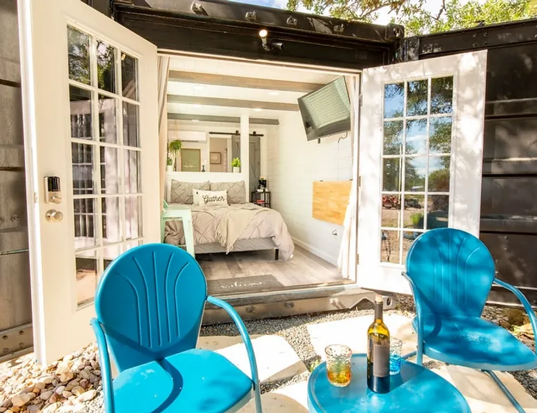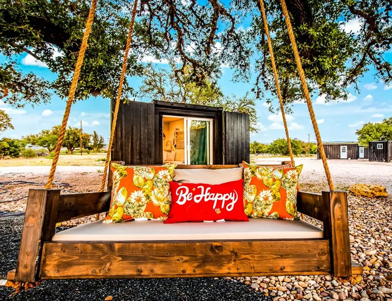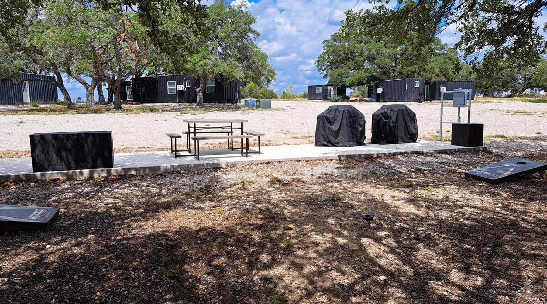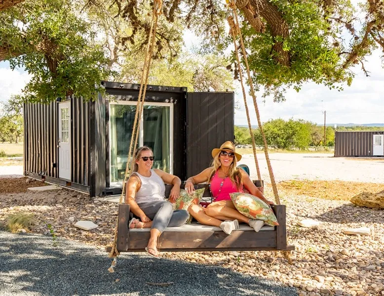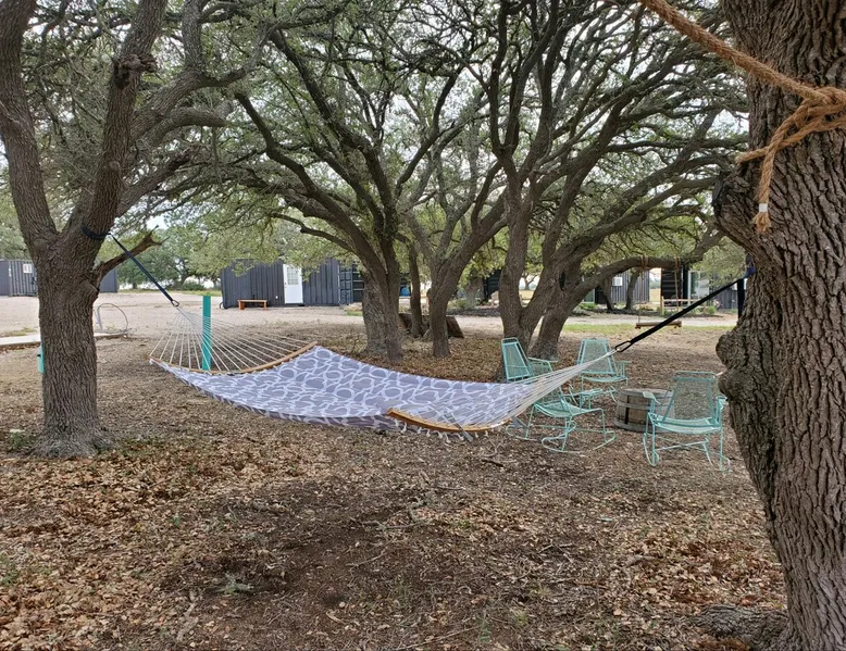 Welcome to The Container Retreat @ 290 Wine Trail! The perfect place to stay as you explore the beautiful Texas Hill Country and it's amazing wineries, parks, shops and people. We are happy to share our special getaway with you and truly hope you enjoy it as much as we do. The space This unit is a 20' shipping container that has been converted into a tiny home in the heart of the Texas Hill Country complete with a full bath with walk-in shower, kitchenette with mini fridge and microwave, dining counter and Queen-sized bed in the living room. It is a tiny home with just under 160 square feet but has everything you need for a comfortable night's sleep. The peace and tranquility is amazing and we are right in the middle of over 50 Texas Hill Country wineries. We have three within walking distance that you can begin to enjoy as you settle in: Blue Lotus Winery and Silver Dollar Winery to the east and Untamed to the west. So whether you are looking for a quick getaway or a home base while you attend one of the many festivals and events in the surrounding areas, we are the right choice. Guest access Our containers are arranged in pods of five surrounding majestic oak trees and lush landscaping with just enough ambient lighting to make it relaxing and comfortable. If you want to hang out, just walk over to the common area where you will find open space, chairs, a hammock, picnic tables, grills, giant beer pong, wooden tower game, ring games and our custom Container Retreat cornhole boards. Since we want to preserve our beautiful oak trees, we do not currently offer a fire pit. Other things to note Our mattresses were custom handmade locally from Cantwell Mattress in San Antonio. These mattresses are made in Texas with 100% All-Natural Cotton sourced in Texas. Our shampoo, conditioner and body wash are made with 100% Pure Morocco Argan Oil and are 100% Vegan & Cruelty-Free. In addition, our hand soap is made with essential oils, aloe vera, olive oil, and without parabens, phthalates or artificial colors. We have provided everything you need in our kitchenette, including a corkscrew and wine pourer to enjoy your Texas Hill Country wine. Couples getaway, check! Girls weekend, check! Bachelor or Bachelorette parties, check! Whatever the occasion, we are the right choice. We have twelve other listing and can accommodate groups of up to thirty two. Photos are representative of Containers Nine and Ten and décor may vary, but the layout is the same. If you need to book larger parties, we have a total of ten 20' containers available that can accommodate up to 20 adults.