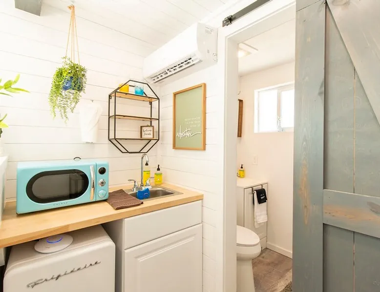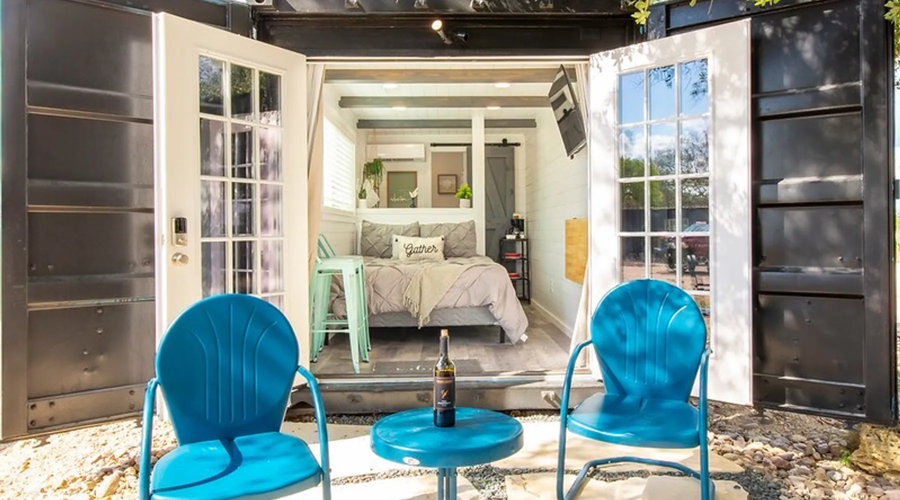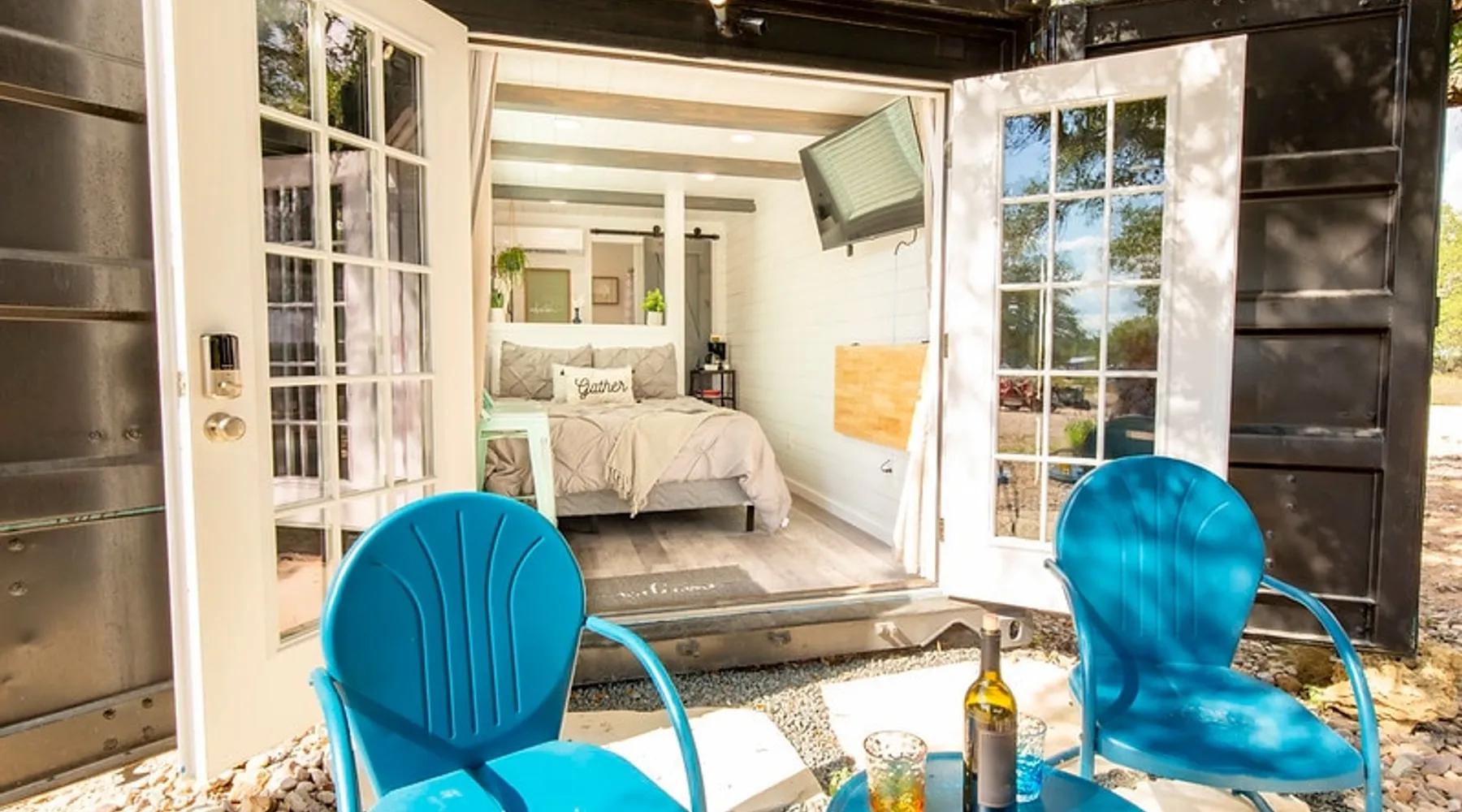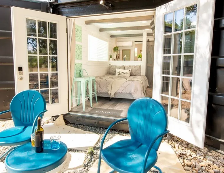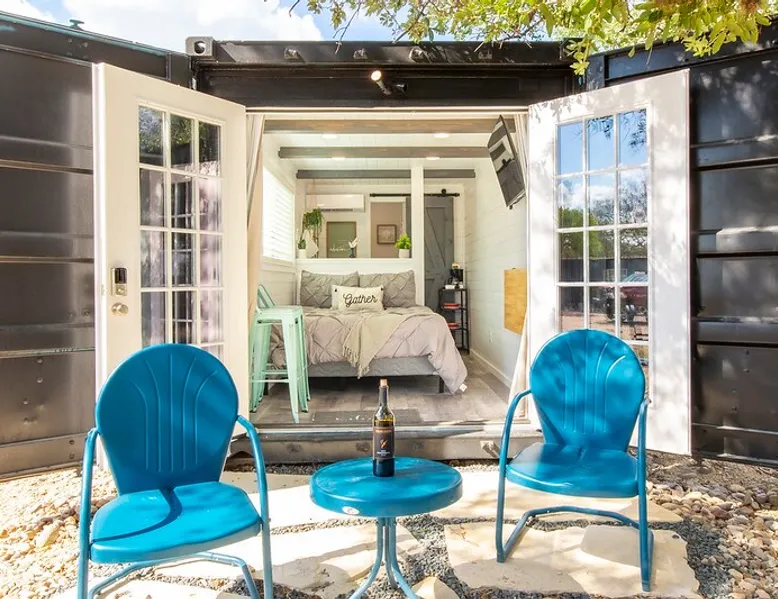 Welcome to The Container Retreat @ 290 Wine Trail! The perfect place to stay as you explore the beautiful Texas Hill Country and it's amazing wineries, parks, shops and people. We are happy to share our special getaway with you and truly hope you enjoy it as much as we do. The space This unit is a 20' shipping container that has been converted into a tiny home in the heart of the Texas Hill Country complete with a full bath with walk-in shower, kitchenette with mini fridge and microwave, dining counter and Queen-sized bed in the living room. It is a tiny home with just under 160 square feet but has everything you need for a comfortable night's sleep. The peace and tranquility is amazing and we are right in the middle of over 50 Texas Hill Country wineries. We have three within walking distance that you can begin to enjoy as you settle in: Blue Lotus Winery and Silver Dollar Winery to the east and Untamed to the west. So whether you are looking for a quick getaway or a home base while you attend one of the many festivals and events in the surrounding areas, we are the right choice. Guest access Our containers are arranged in pods of five surrounding majestic oak trees and lush landscaping with just enough ambient lighting to make it relaxing and comfortable. If you want to hang out, just walk over to the common area where you will find open space, chairs, a hammock, picnic tables, grills, giant beer pong, wooden tower game, ring games and our custom Container Retreat cornhole boards. Since we want to preserve our beautiful oak trees, we do not currently offer a fire pit. Other things to note Our mattresses were custom handmade locally from Cantwell Mattress in San Antonio. These mattresses are made in Texas with 100% All-Natural Cotton sourced in Texas. Our shampoo, conditioner and body wash are made with 100% Pure Morocco Argan Oil and are 100% Vegan & Cruelty-Free. In addition, our hand soap is made with essential oils, aloe vera, olive oil, and without parabens, phthalates or artificial colors. We have provided everything you need in our kitchenette, including a corkscrew and wine pourer to enjoy your Texas Hill Country wine. Couples getaway, check! Girls weekend, check! Bachelor or Bachelorette parties, check! Whatever the occasion, we are the right choice. We have twelve other listing and can accommodate groups of up to thirty two. Photos are representative of Containers Nine and Ten and décor may vary, but the layout is the same. If you need to book larger parties, we have a total of ten 20' containers available that can accommodate up to 20 adults.
