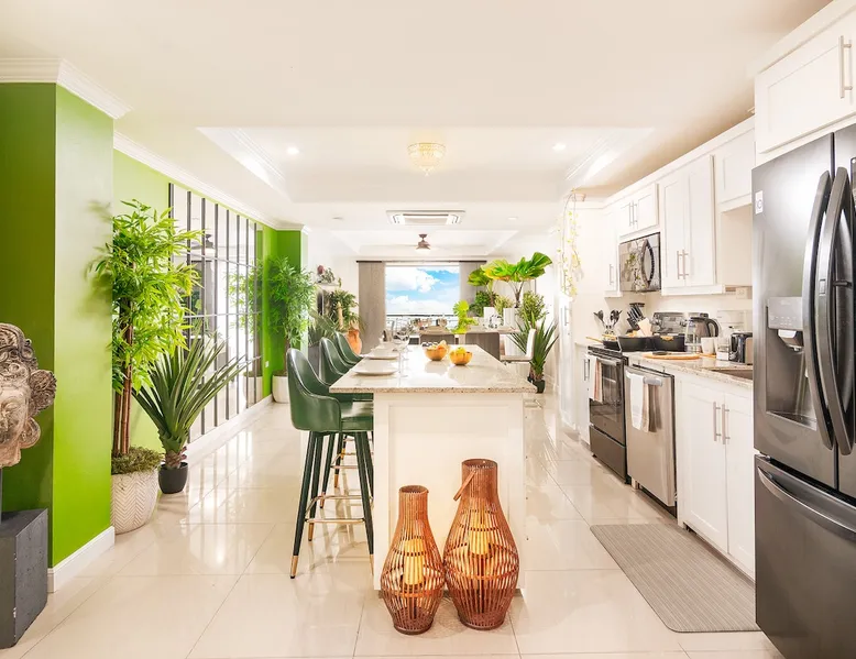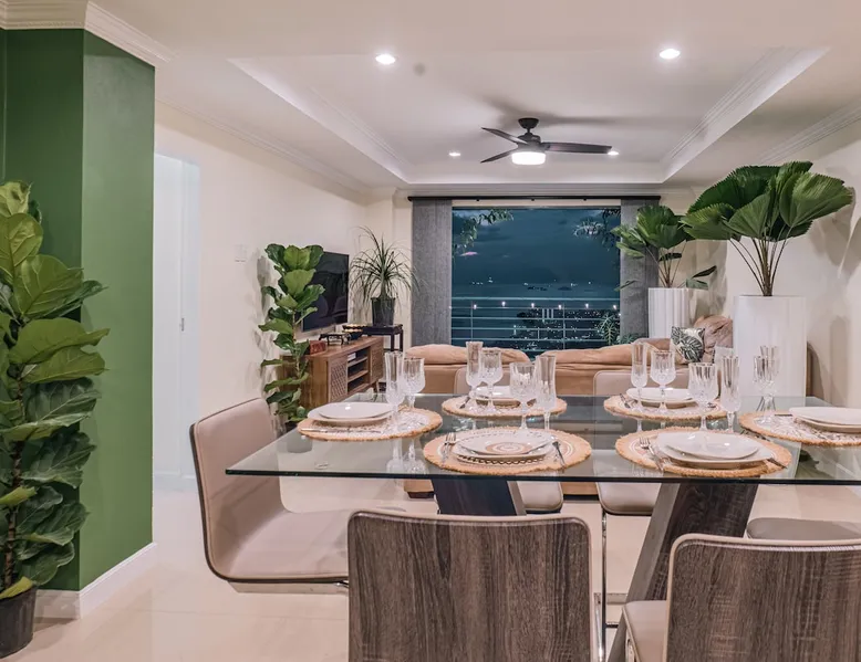 Experience the ultimate escape at our luxurious villa. With breathtaking views of the Caribbean Sea, a serene environment, and fully-equipped amenities, this is the perfect getaway for couples, families, and business professionals. Let the cool windward breezes rejuvenate your soul while gazing upon the majestic boats sailing towards the horizon, painting the sky with a stunning array of ruby hues during the unforgettable sunsets. Book now and indulge in the tranquility of this tropical paradise The space Welcome to our tropical paradise! Our luxurious villa is the perfect home away from home for families, travelers, couples, and business professionals seeking a tranquil and unforgettable stay. With breathtaking views of the western coastline of Trinidad. Immerse yourself in a lush green oasis that is just minutes away from top attractions, restaurants, and shops in Port of Spain. As you step inside this exquisite villa, you'll be captivated by the stunning ocean and city views that can be seen from almost every corner of the property. The master bedroom connects to the private balcony where you can enjoy the full panoramic view of the ocean and city lights. The balcony is the perfect spot to witness some of the most amazing sunsets, sometimes even red sunsets, and take in the sights of the Gulf of Paria and much of the North-West of the island. On clear days, you can even see as far as San Fernando Hill located on the South-Western half of the island or Venezuela. The living room, dining room, and kitchen also offer unobstructed views of the ocean and city, making it a truly one-of-a-kind experience. But it's not just the view that will make your stay unforgettable. This villa is designed with your comfort and convenience in mind. You'll have access to a fully equipped kitchen with stainless steel appliances, necessary cooking accessories such as coffee maker and toaster, and a sparkling clean bathroom with modern glass showers. The entire apartment is air-conditioned (a must in the Caribbean), though cool windward breezes blow throughout the day. Each bedroom features queen-sized beds and the master has a walk-in closet and an ensuite bathroom. The apartment has one other full bathroom and a half bath. Whether you want to explore nature trails that wind through pristine Caribbean rainforest, or enjoy a night out on the town, this villa is the perfect home base for your Trinidadian adventure. Located in Fort George, Port of Spain, this villa is conveniently located just 5 minutes away from a mall and the tasty doubles on St James Road. The historic Fort George, which offers even better views of the entire island, is just a short 5-minute drive away. Chaguaramas, a popular destination that offers a water park, Maccuriepe bay, golf courses, and nature trails, is just 20 minutes away. And if you're lucky, you might catch Trinidad's famous "Great Race": a seasonal speed boat race from the Gulf of Paria to the sister isle Tobago from the balcony. What's more, this villa is found on a private road, nestled among forest greenery, within a private gated community featuring a security guard. You can relax in a serene environment knowing that you are in safe hands. Book now for a truly unforgettable stay in Port of Spain! ★HIGHLIGHTS★ ★ Custom Designed 3 Bedroom Private Villa in Gated Community ★ 3 Comfortable Queen-Sized Beds & High-Quality Linens ★ Living Room Doors Open Out Onto Large Balcony For A Full Scenic View ★ Private Road Access & Private Gated Community with Security ★ Free Wi-Fi & Laptop Friendly Workspaces ★ Fully Equipped Kitchen with Stainless Steel Appliances ★ Necessary Cooking Accessories such as Coffee Maker & Toaster ★ Sparkling Clean Bathroom with Modern Glass Showers ★ Excellent location near attractions, restaurants, shops & entertainment ★ Entire Apartment Is Outfitted with Natural Plants / Greenery ★ Master Bedroom Doors Open Out Onto Large Balcony For A Full Scenic View Guest access Upon arrival, guests will be met and provided with keys. The suite is exclusively yours for the duration of your stay, so relax, unwind, and make yourself at home! Other things to note The Sea View Villas is located in a private gated community in Fort George, St James! Guests should be respectful of their neighbours at all times and should monitor their noise levels. Quiet Hours are in place from 10:00pm - 8:00am. No pets and no parties or unauthorised guests are allowed on property. Please turn off the climate controls when you are not in the villa. Please do not rearrange the furniture. Upon arrival, should you notice any damages, or should anything break, please advise the host as soon as possible so that immediate arrangements for repair can be made. Any unreported damages will result in damages fees, and any may face automatic cancellation of your reservation, and reporting to AirBNB. Please note that the pool is not managed by us and so we cannot oversee its maintenance. You may on occasions find the pool dirty which is out of our control. (Please be aware that as Trinidad is a tropical country that there are sometimes possibilities of insects flying in especially during rainy days or if lights are left on during the night with the doors open )