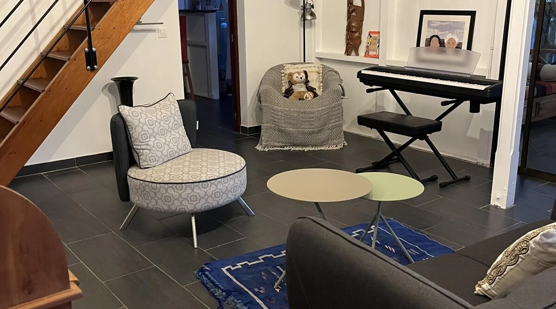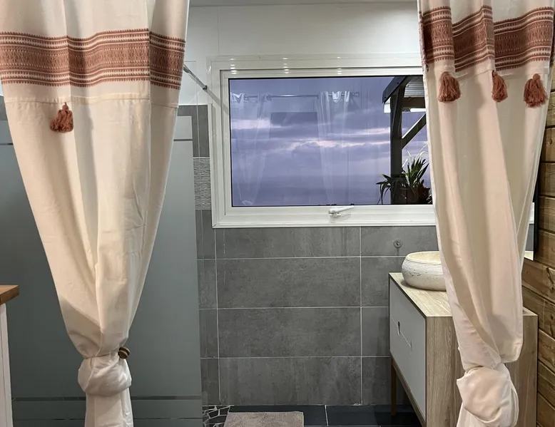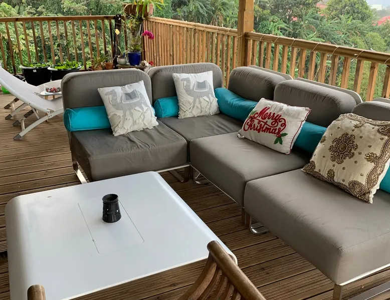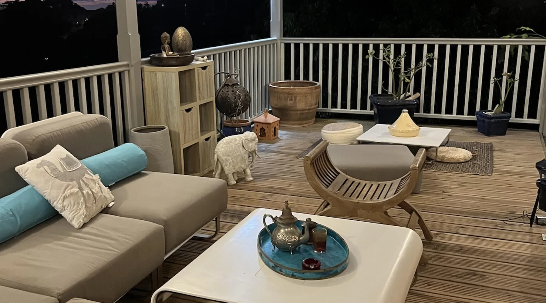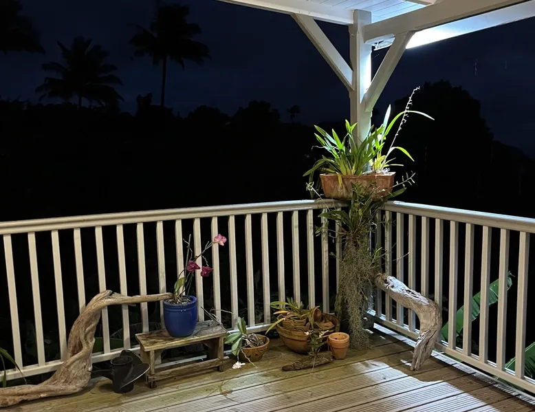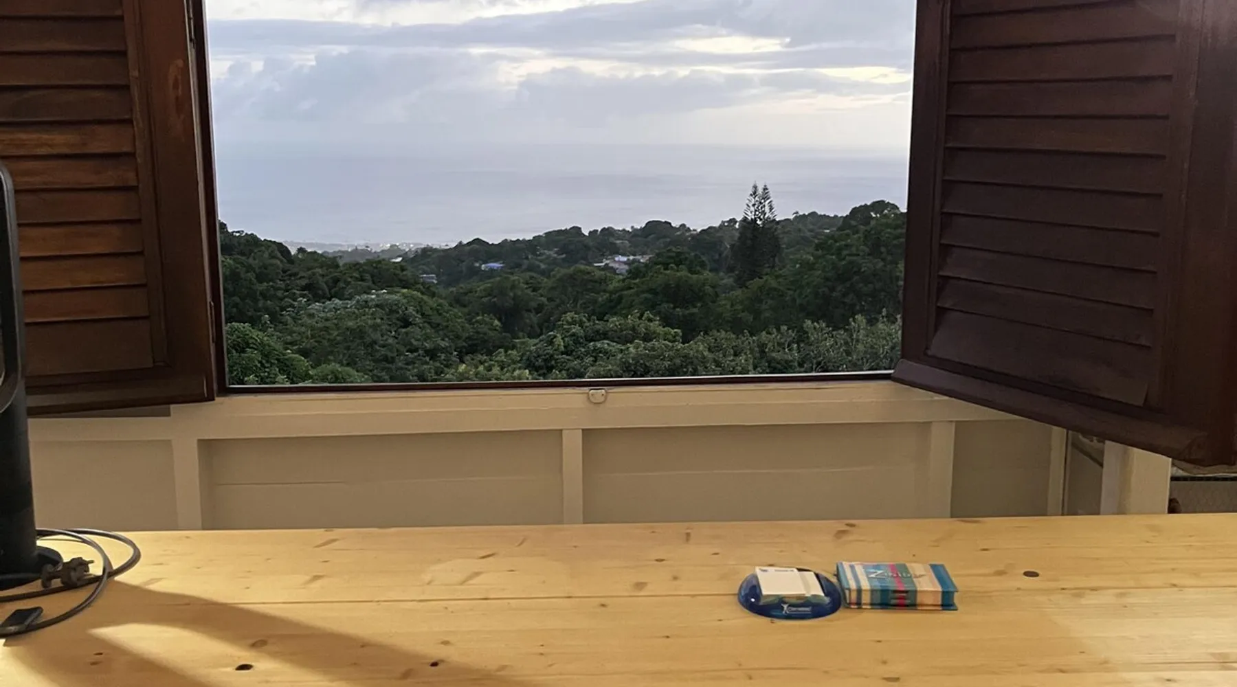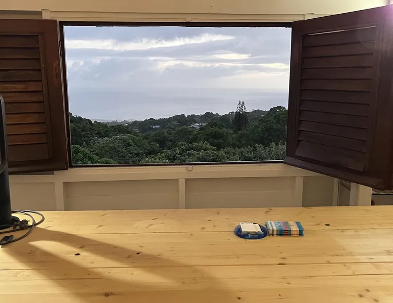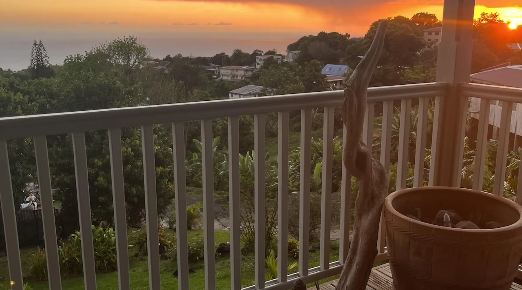 Superb house, close to the soufrière, in the middle of a tropical garden in edge of river. You have a comfortable accommodation, widely opened on the outside. The environment is calm, while being close to the amenities of the town of Saint Claude. The space Superb house, near the soufrière, in the middle of a tropical garden in edge of river. In this green setting you will have two double bedrooms with shower room, toilet and large closet, A fully equipped kitchen (dishwasher, fridge freezer, induction and gas hob, electric oven, juicer, Nespresso..... coffee maker). A large living room largely open to the outside giving access to the large suspended terrace allowing you to enjoy a panoramic view of the Caribbean Sea and its sunsets. The terrace has tables, chairs, an outdoor bed, a lounge and two deckchairs to enjoy the panorama. Upstairs is the mezzanine with its reading corner, the sofa to enjoy the television (Netflix) and a desk facing the same view as the terrace. The house is equipped with a washing machine, an iron and an ironing board, and a wifi connection.