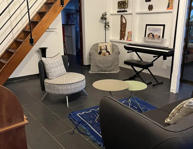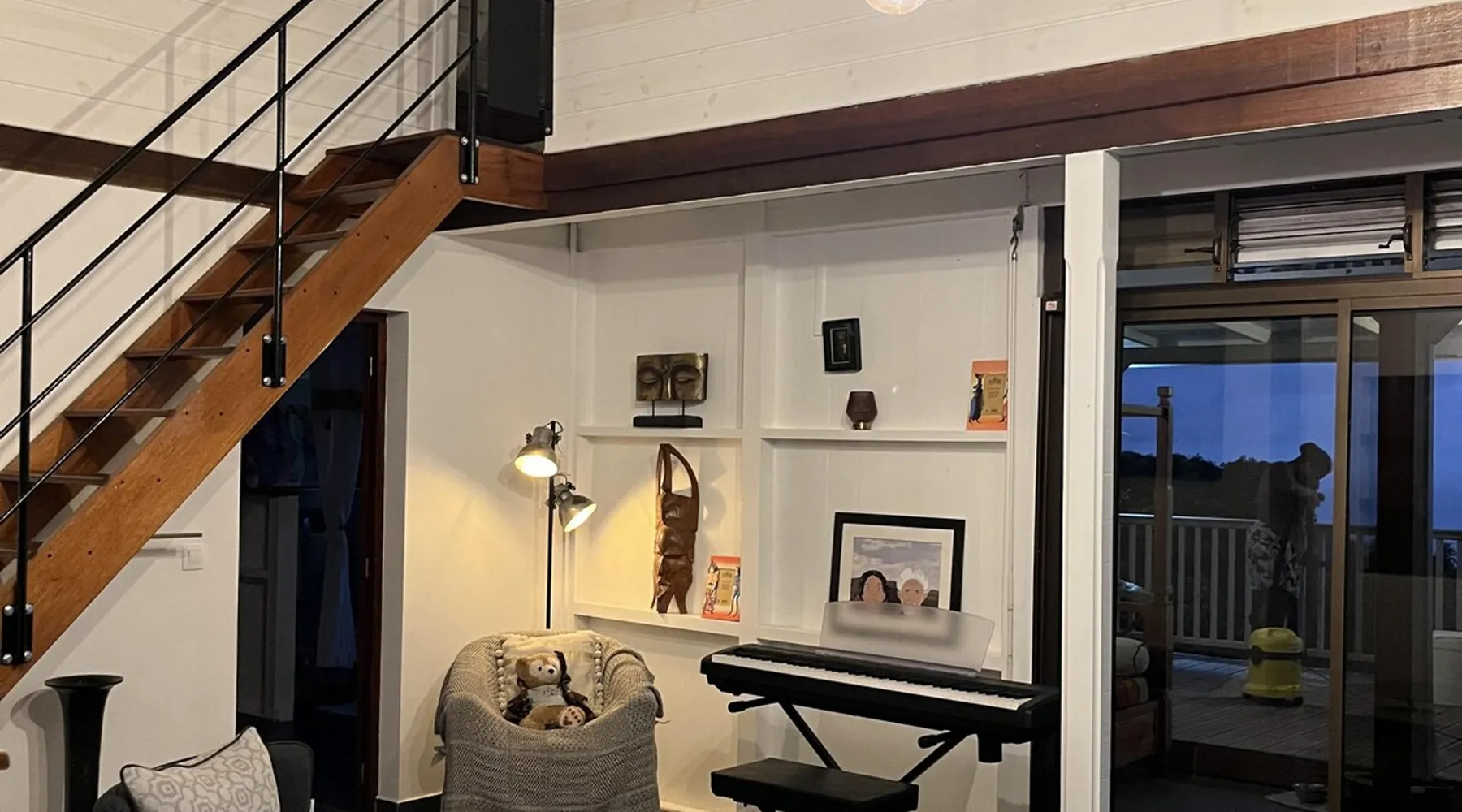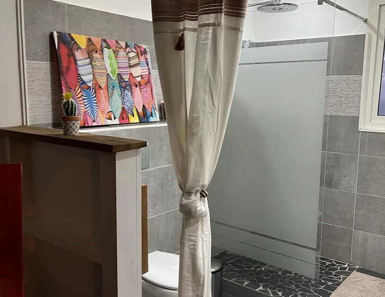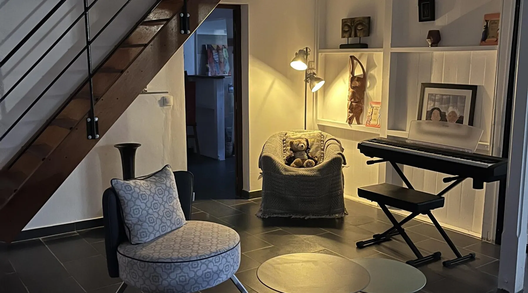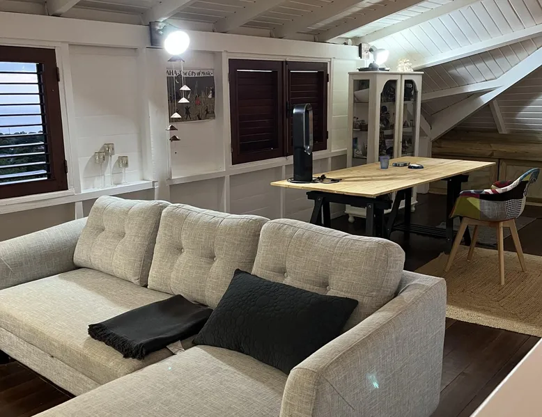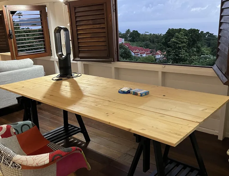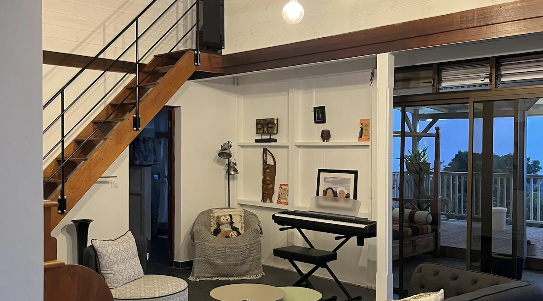 Superb house, close to the soufrière, in the middle of a tropical garden in edge of river. You have a comfortable accommodation, widely opened on the outside. The environment is calm, while being close to the amenities of the town of Saint Claude. The space Superb house, near the soufrière, in the middle of a tropical garden in edge of river. In this green setting you will have two double bedrooms with shower room, toilet and large closet, A fully equipped kitchen (dishwasher, fridge freezer, induction and gas hob, electric oven, juicer, Nespresso..... coffee maker). A large living room largely open to the outside giving access to the large suspended terrace allowing you to enjoy a panoramic view of the Caribbean Sea and its sunsets. The terrace has tables, chairs, an outdoor bed, a lounge and two deckchairs to enjoy the panorama. Upstairs is the mezzanine with its reading corner, the sofa to enjoy the television (Netflix) and a desk facing the same view as the terrace. The house is equipped with a washing machine, an iron and an ironing board, and a wifi connection.