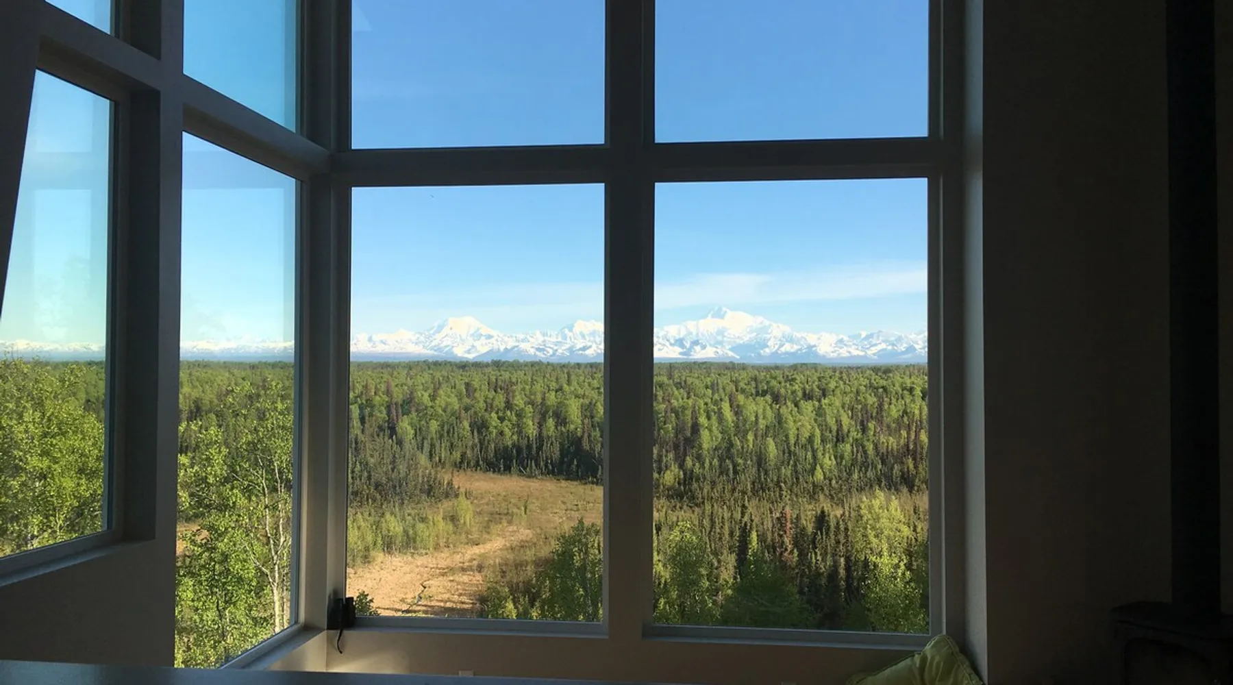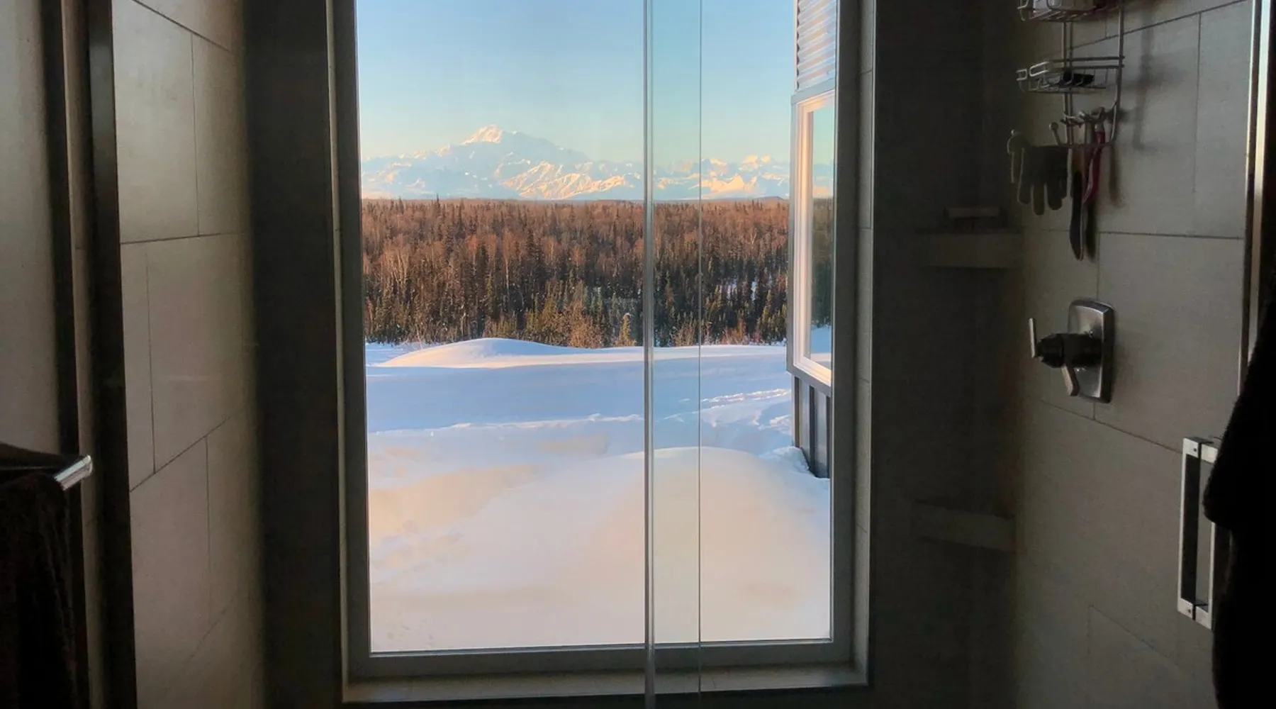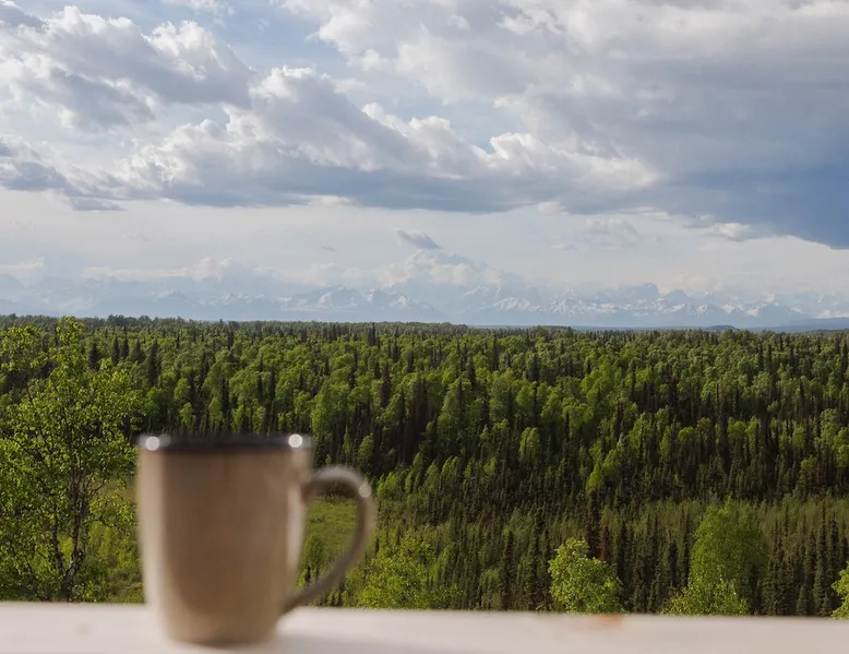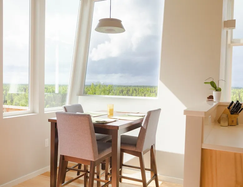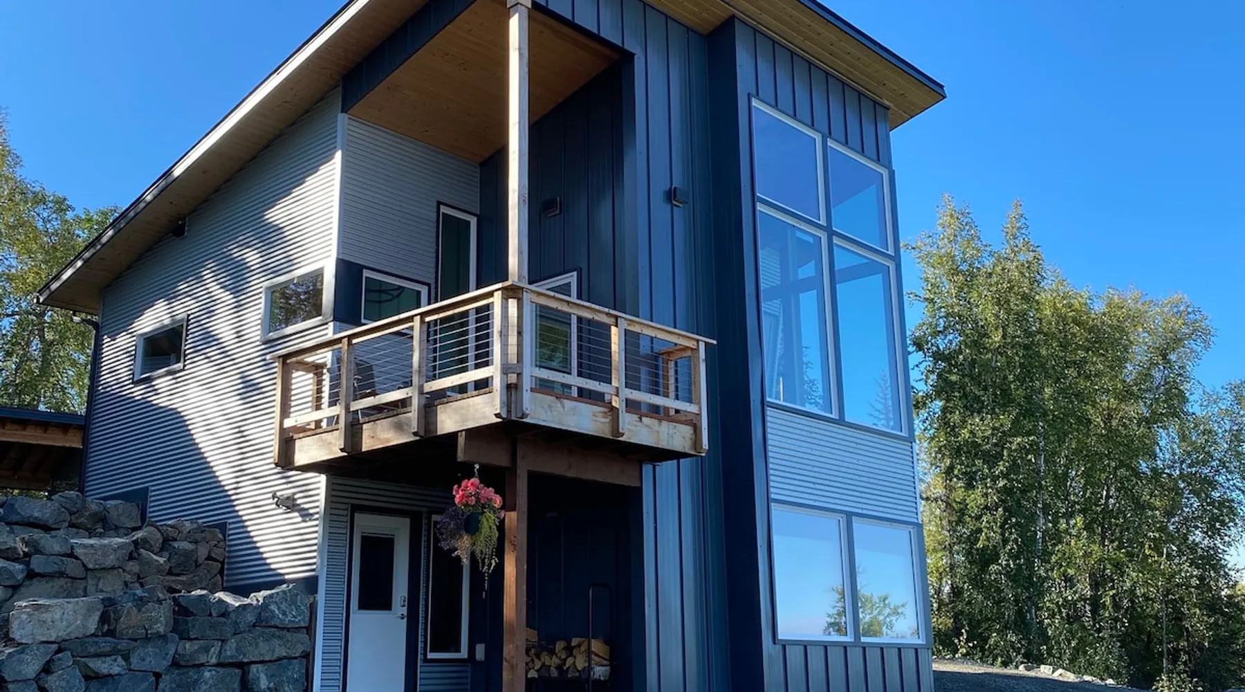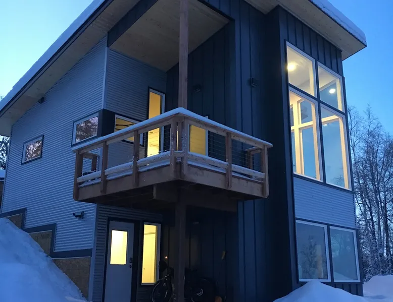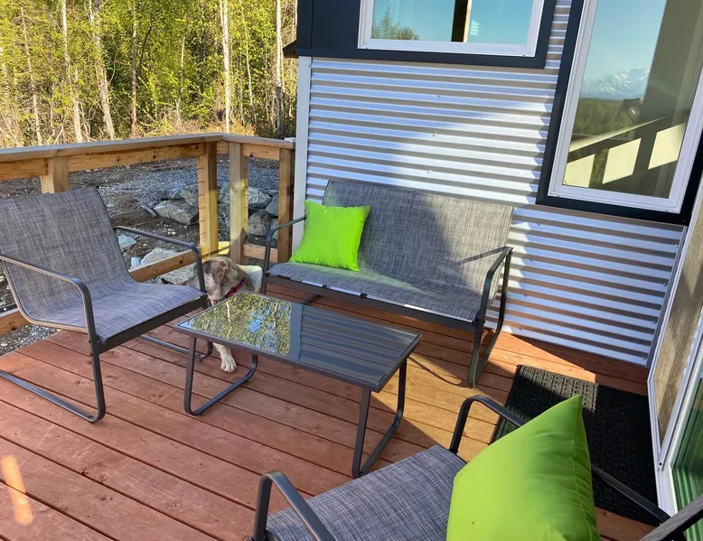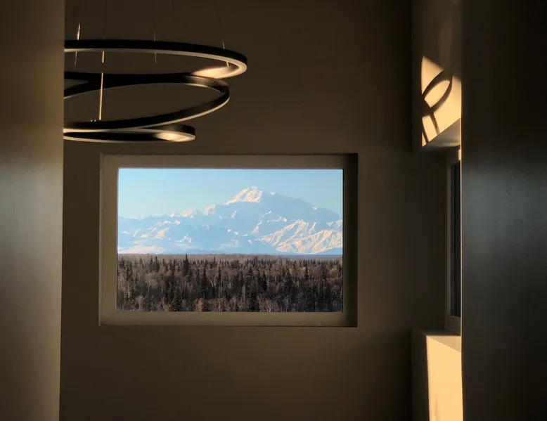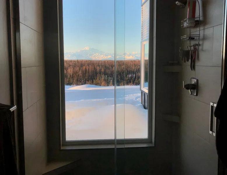 Thoughtfully designed to maximize the view in all parts of the house, there is a full panorama of Denali and the Alaska Range from this modern, newly constructed house. You can even see Denali from the shower! The space It's only five miles to town but when you're looking out towards the Alaska range you can't see any other buildings and it feels like you're in the wilderness. House resides on the bluff above Twister Creek (a great local IPA made by Denali Brewing). The home is off the grid, so you'll have a generator and solar panels creating any power you use. It's a great place to getaway while providing lots of recreational opportunities right out the door. I've set the booking criteria for a two night minimum stay (with occasional one night stays here and there to fill in the gaps). It's worth it so you can slow down and enjoy the place. Let me know if you're looking for a particular one night stay and I'll see what I can do. Winter guests will need to park and walk/hike/snowshoe/snowmobile the last .4 of a mile to the house. There is a wood-fired hot tub on the premises but is only available to wintertime guests staying at least four nights and only by prior arrangement and an additional fee. Think winter glamping! Guest access After confirmation, guests will be given a key code to the front door lock for access during their stay. Other things to note The isn't a TV or a microwave on the premises. There is good cellular service on the property. The wifi is starlink so it can be unreliable at times but generally works quite well. I do not recommend this spot if you want a working vacation.