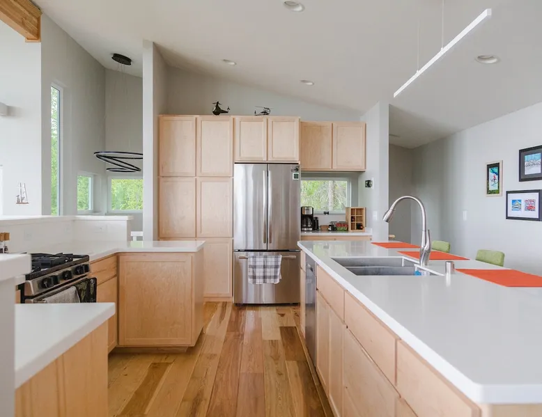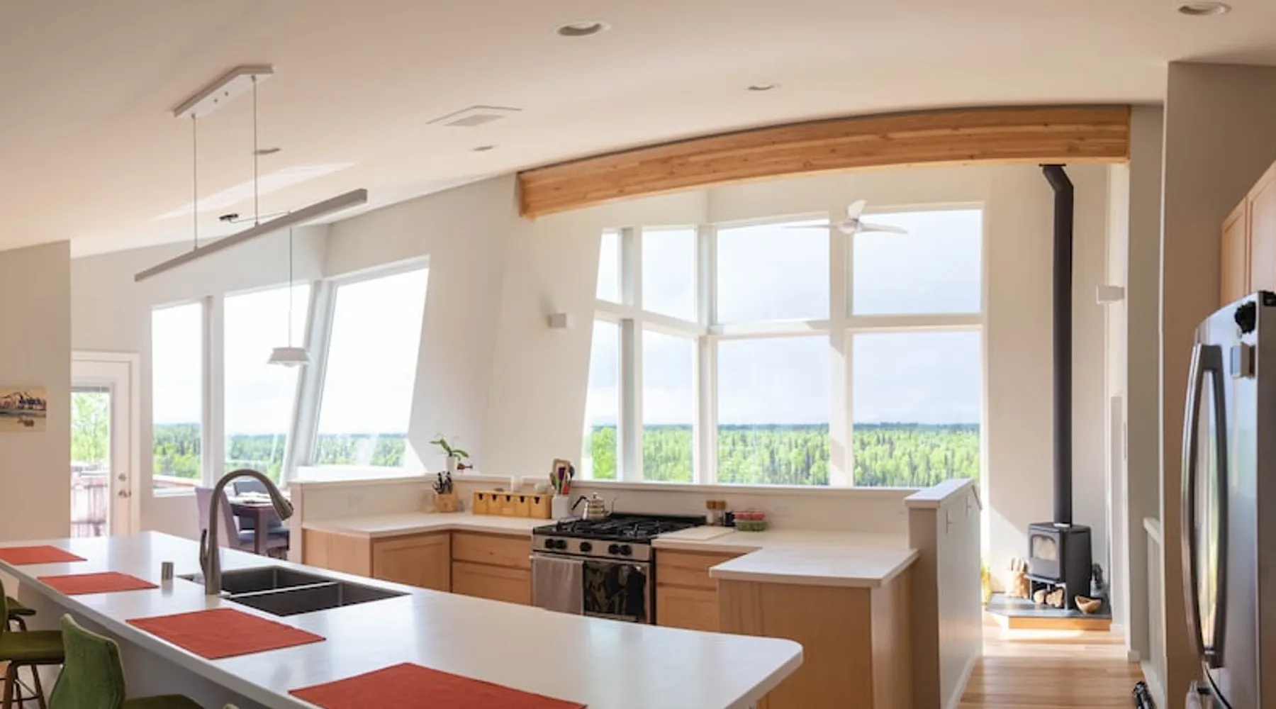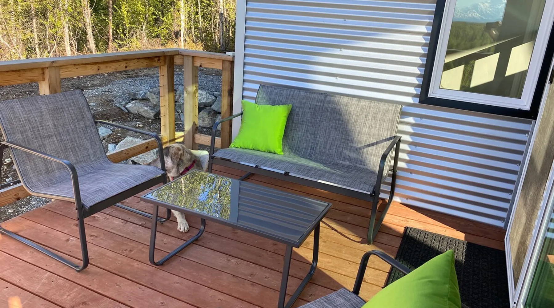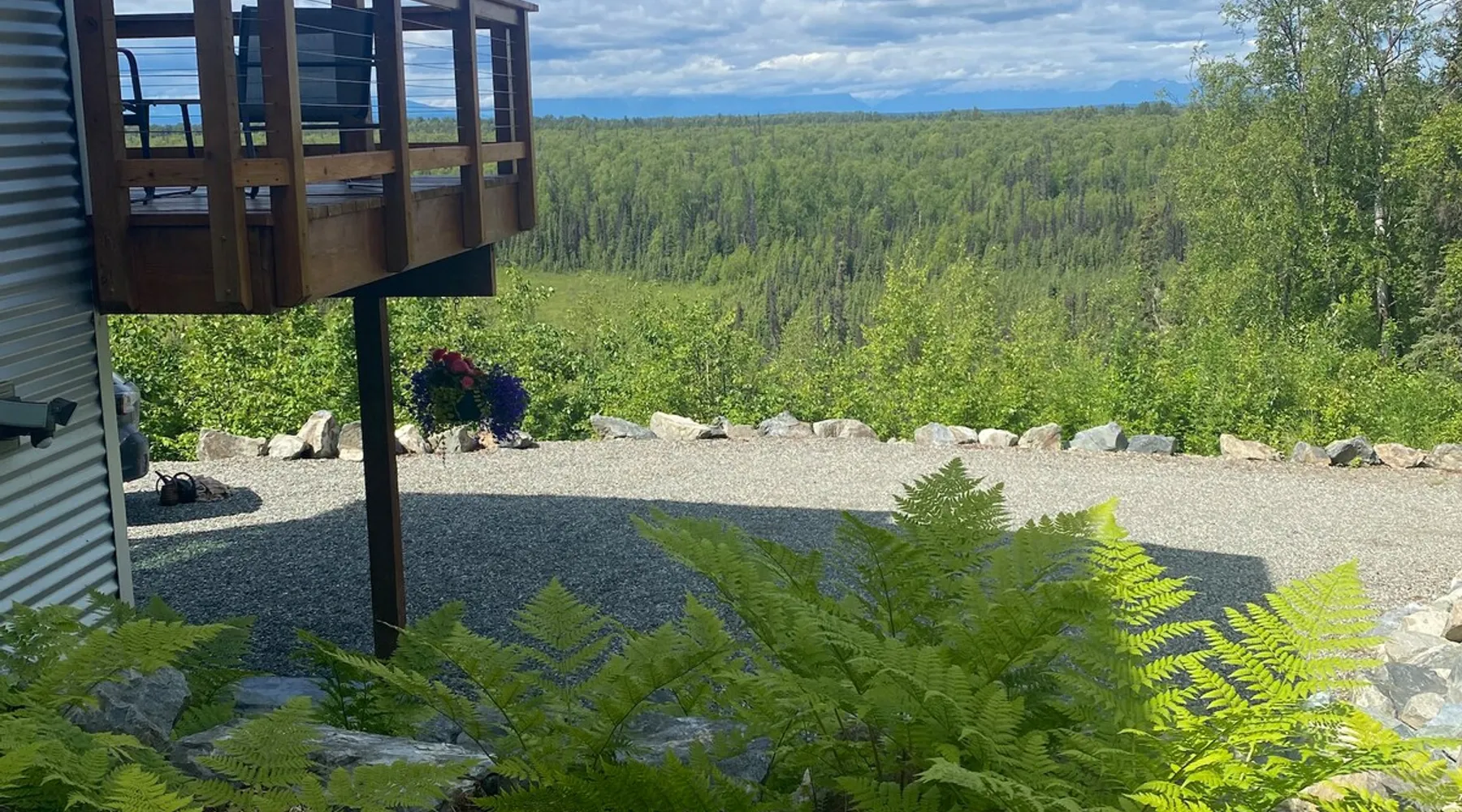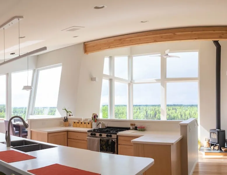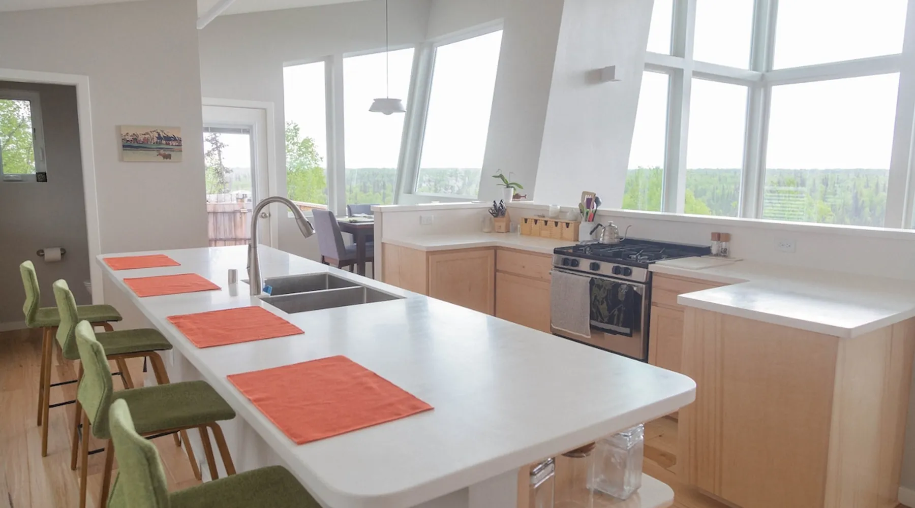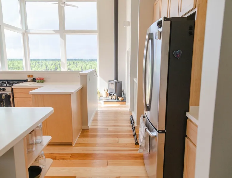Thoughtfully designed to maximize the view in all parts of the house, there is a full panorama of Denali and the Alaska Range from this modern, newly constructed house. You can even see Denali from the shower! The space It's only five miles to town but when you're looking out towards the Alaska range you can't see any other buildings and it feels like you're in the wilderness. House resides on the bluff above Twister Creek (a great local IPA made by Denali Brewing). The home is off the grid, so you'll have a generator and solar panels creating any power you use. It's a great place to getaway while providing lots of recreational opportunities right out the door. I've set the booking criteria for a two night minimum stay (with occasional one night stays here and there to fill in the gaps). It's worth it so you can slow down and enjoy the place. Let me know if you're looking for a particular one night stay and I'll see what I can do. Winter guests will need to park and walk/hike/snowshoe/snowmobile the last .4 of a mile to the house. There is a wood-fired hot tub on the premises but is only available to wintertime guests staying at least four nights and only by prior arrangement and an additional fee. Think winter glamping! Guest access After confirmation, guests will be given a key code to the front door lock for access during their stay. Other things to note The isn't a TV or a microwave on the premises. There is good cellular service on the property. The wifi is starlink so it can be unreliable at times but generally works quite well. I do not recommend this spot if you want a working vacation.