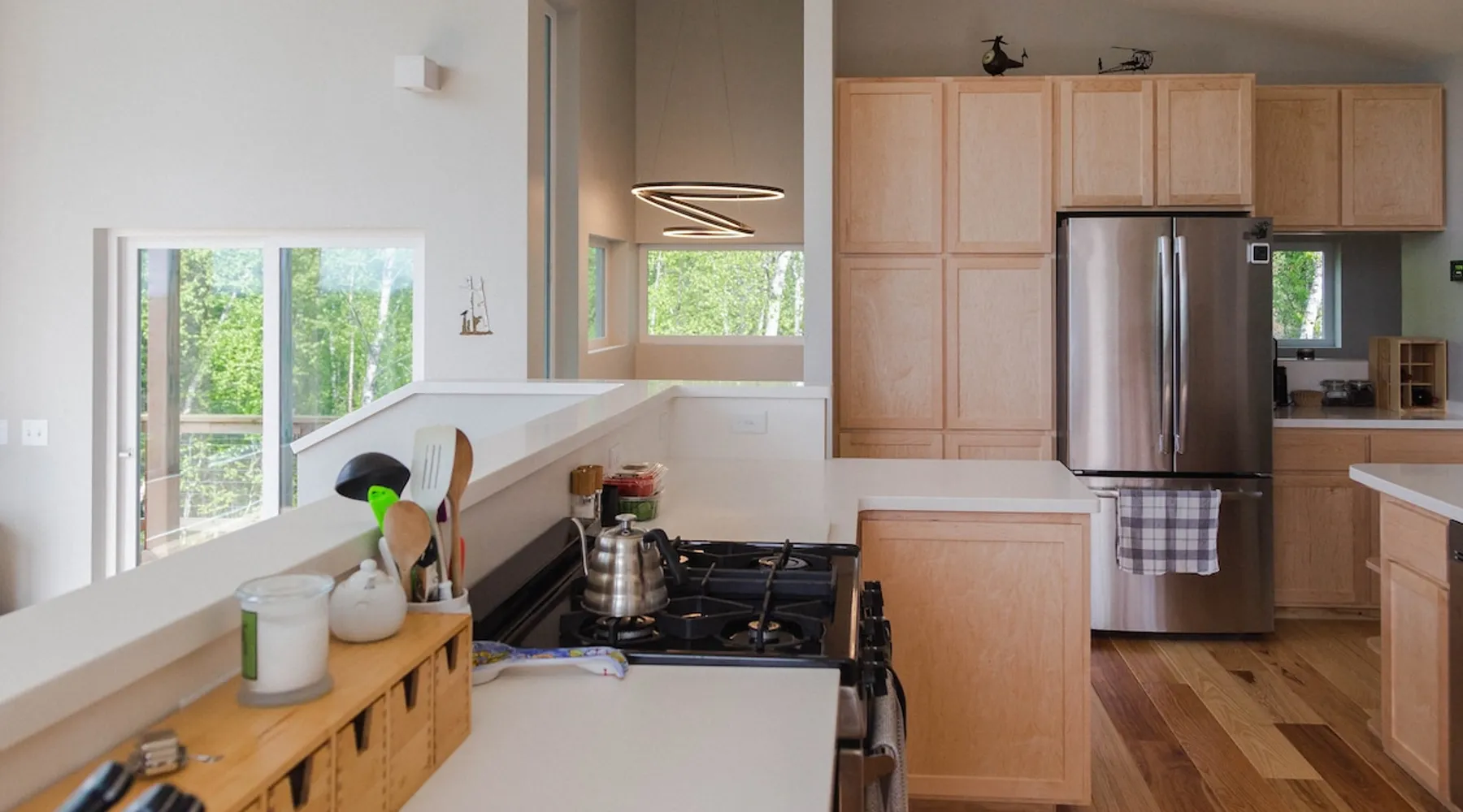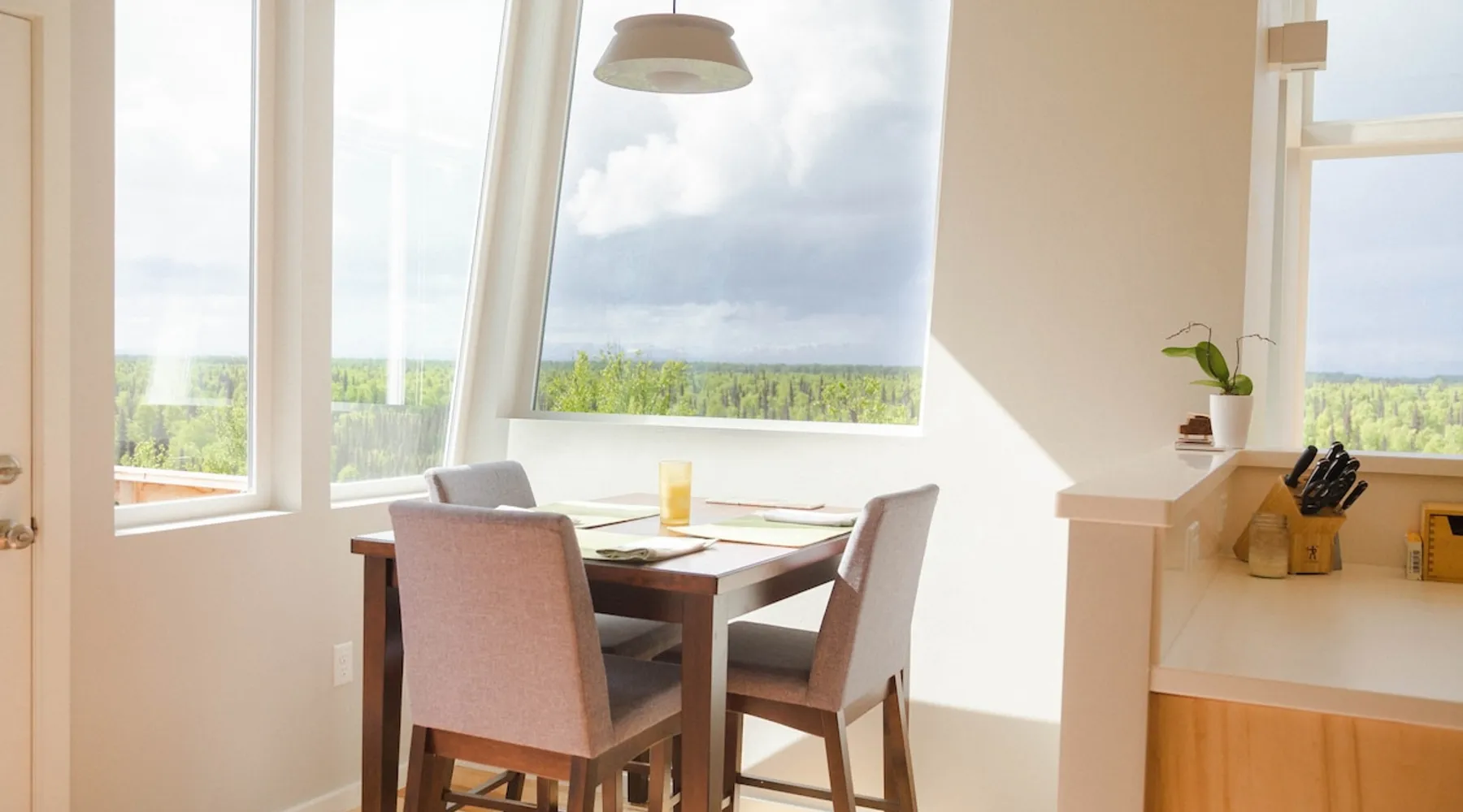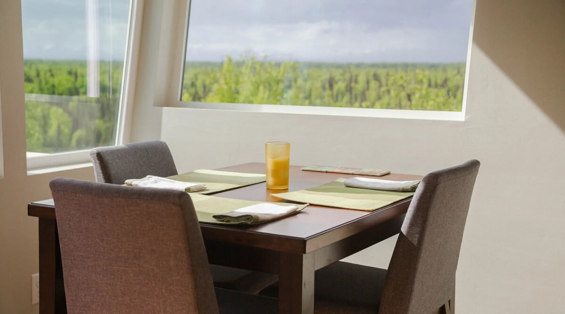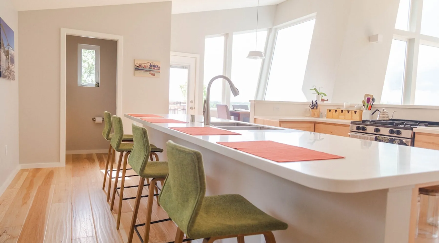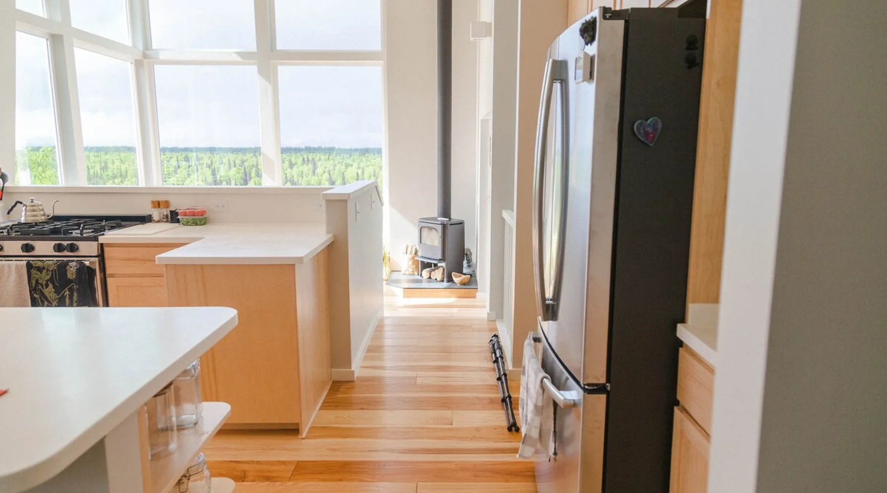 Thoughtfully designed to maximize the view in all parts of the house, there is a full panorama of Denali and the Alaska Range from this modern, newly constructed house. You can even see Denali from the shower! The space It's only five miles to town but when you're looking out towards the Alaska range you can't see any other buildings and it feels like you're in the wilderness. House resides on the bluff above Twister Creek (a great local IPA made by Denali Brewing). The home is off the grid, so you'll have a generator and solar panels creating any power you use. It's a great place to getaway while providing lots of recreational opportunities right out the door. I've set the booking criteria for a two night minimum stay (with occasional one night stays here and there to fill in the gaps). It's worth it so you can slow down and enjoy the place. Let me know if you're looking for a particular one night stay and I'll see what I can do. Winter guests will need to park and walk/hike/snowshoe/snowmobile the last .4 of a mile to the house. There is a wood-fired hot tub on the premises but is only available to wintertime guests staying at least four nights and only by prior arrangement and an additional fee. Think winter glamping! Guest access After confirmation, guests will be given a key code to the front door lock for access during their stay. Other things to note The isn't a TV or a microwave on the premises. There is good cellular service on the property. The wifi is starlink so it can be unreliable at times but generally works quite well. I do not recommend this spot if you want a working vacation.
