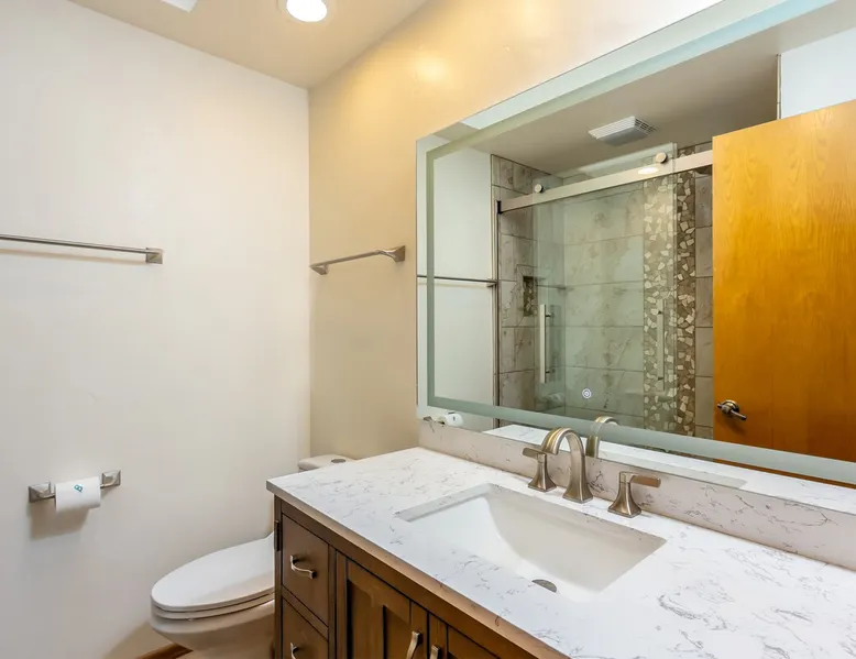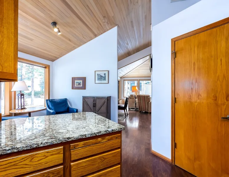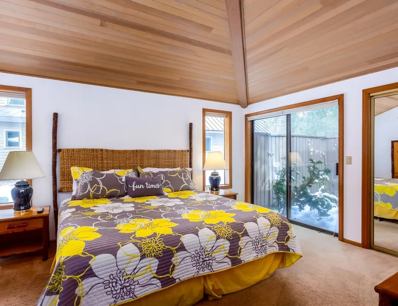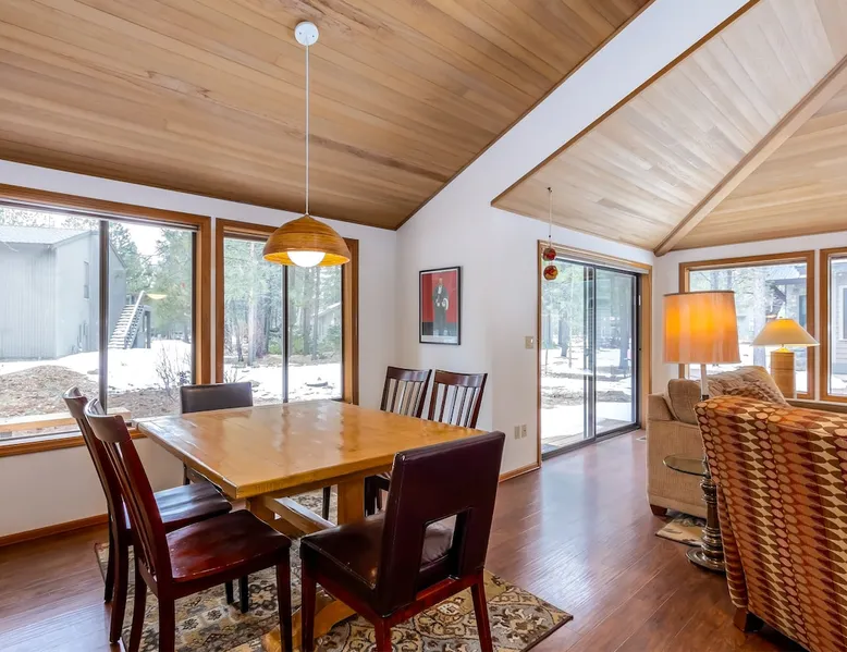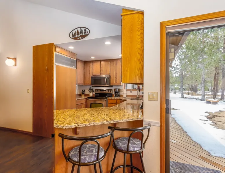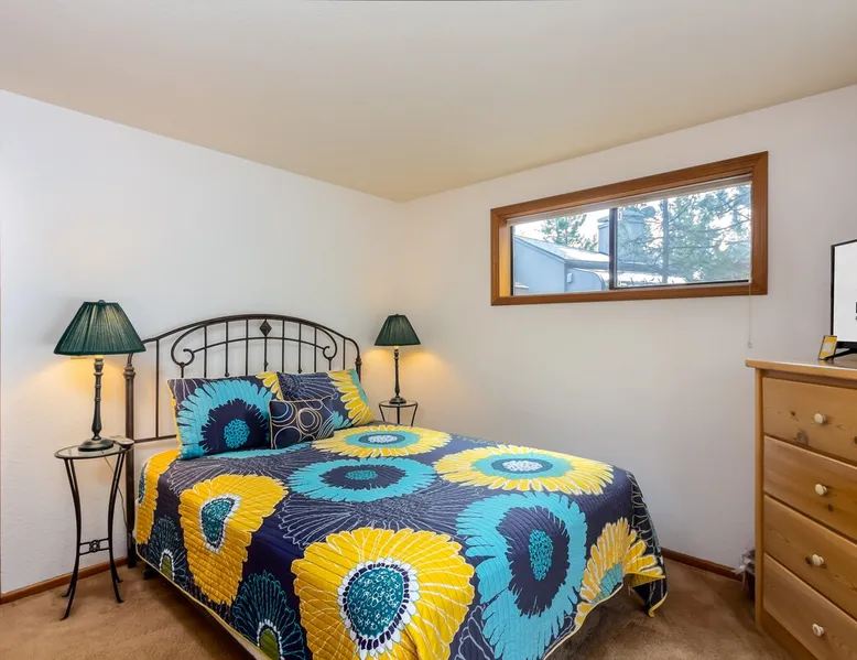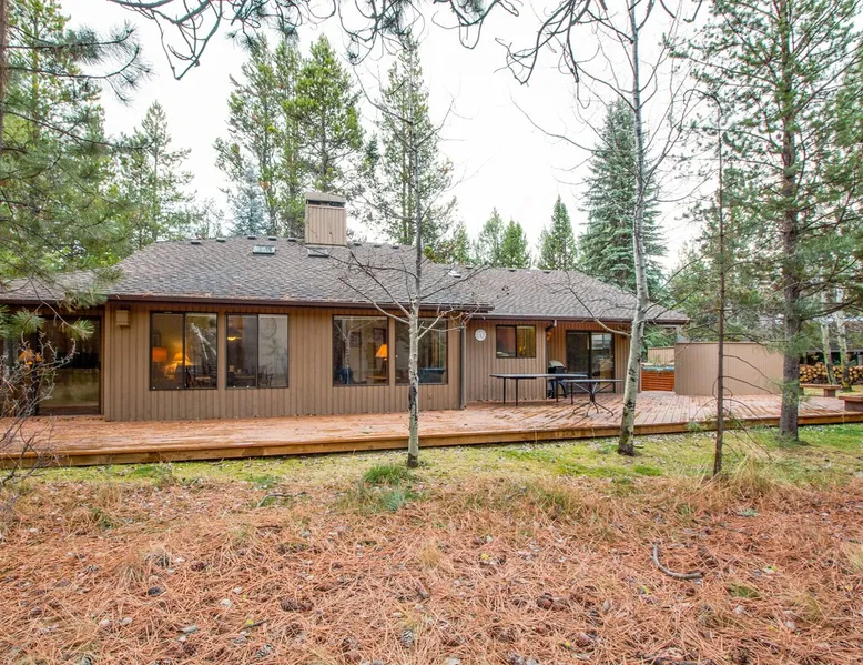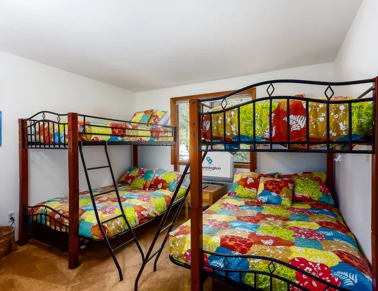 Single level home in great central location with lots of common area for privacy behind the home. Very short distance to Fort Rock Park. New owners - newly remodeled! 3 bedrooms/2baths. The space This single level, 3 bedroom vacation home is in a great central Sunriver location, on a quiet cul-de-sac surrounded by large, beautiful trees. Your group of up to 8 will fit comfortably with 1900 square feet of indoor living space and a large, private back deck. Step inside the front door onto the hardwood floors which run throughout the open-concept layout. The living room opens in front of you with vaulted tongue and groove ceilings and big windows overlooking the treed-privacy of the back deck, plus comfortable furnishings, a large flat screen TV with cable and DVD player. The dining area seats 8 guests and sits adjacent to the wood burning fireplace making for a cozy setting. Cook for the whole family in the upgraded kitchen with stainless steel appliances a glass cooktop and granite counters. The ensuite bedroom features a King bed, flat screen TV, and vaulted ceilings with attached private bathroom with jetted tub, and separate walk-in shower. On the opposite side of the home are the other 2 bedrooms. Bedroom 2 has a comfortable Queen bed, TV and a sliding glass door leading onto the back deck. Bedroom 3 is a great spot for the kids to hide-out with 2 sets of Pyramid Bunkbeds (Twin bed above a Full bed) and a TV. The shared bathroom is conveniently located in the hallway near both bedrooms. Step onto the deck to lounge in the sun and watch the wildlife, grill on the gas BBQ and dine outdoors or enjoy a soak under the stars in the private hot tub. This home, along with most Sunriver homes, is not air conditioned. With our cool mountain evenings and ice cold rivers and lakes to keep you cool, this is a great house for a slow paced, ice cream and iced beer kinda summer. This home welcomes dogs, 2 max, no other pets are allowed. Fees apply. Guest access Home access information will be sent 7 - 10 days prior to arrival. All homes are set up for self check-in, no need to stop by the office, just go straight to the home. Other things to note AGE RESTRICTIONS: Guests must be 23 years or older to rent Bennington homes and the person reserving must occupy the home the whole reservation.