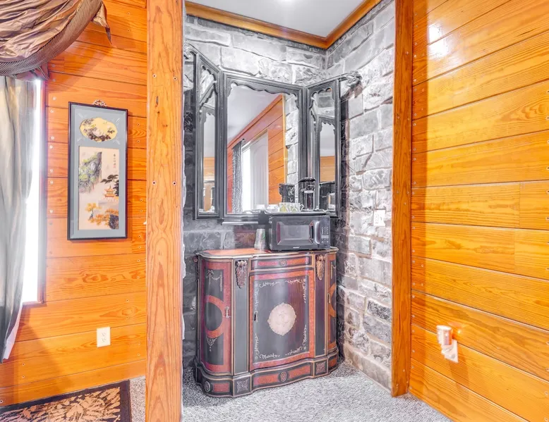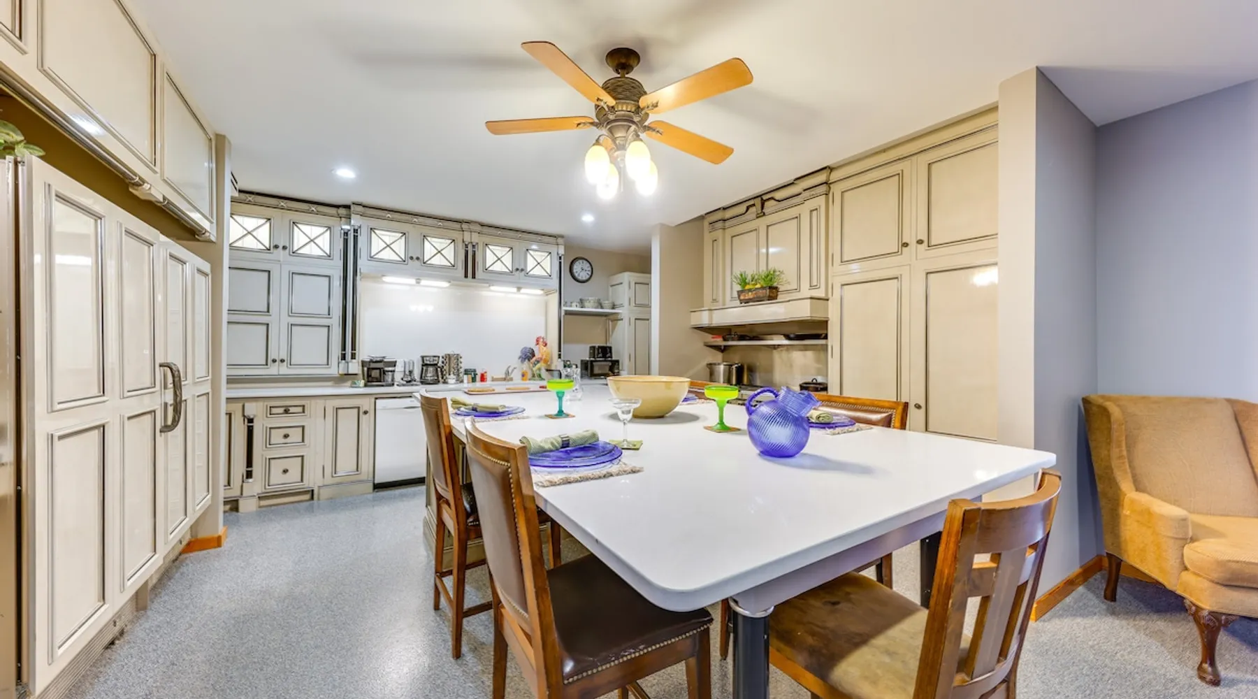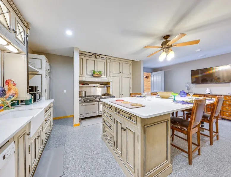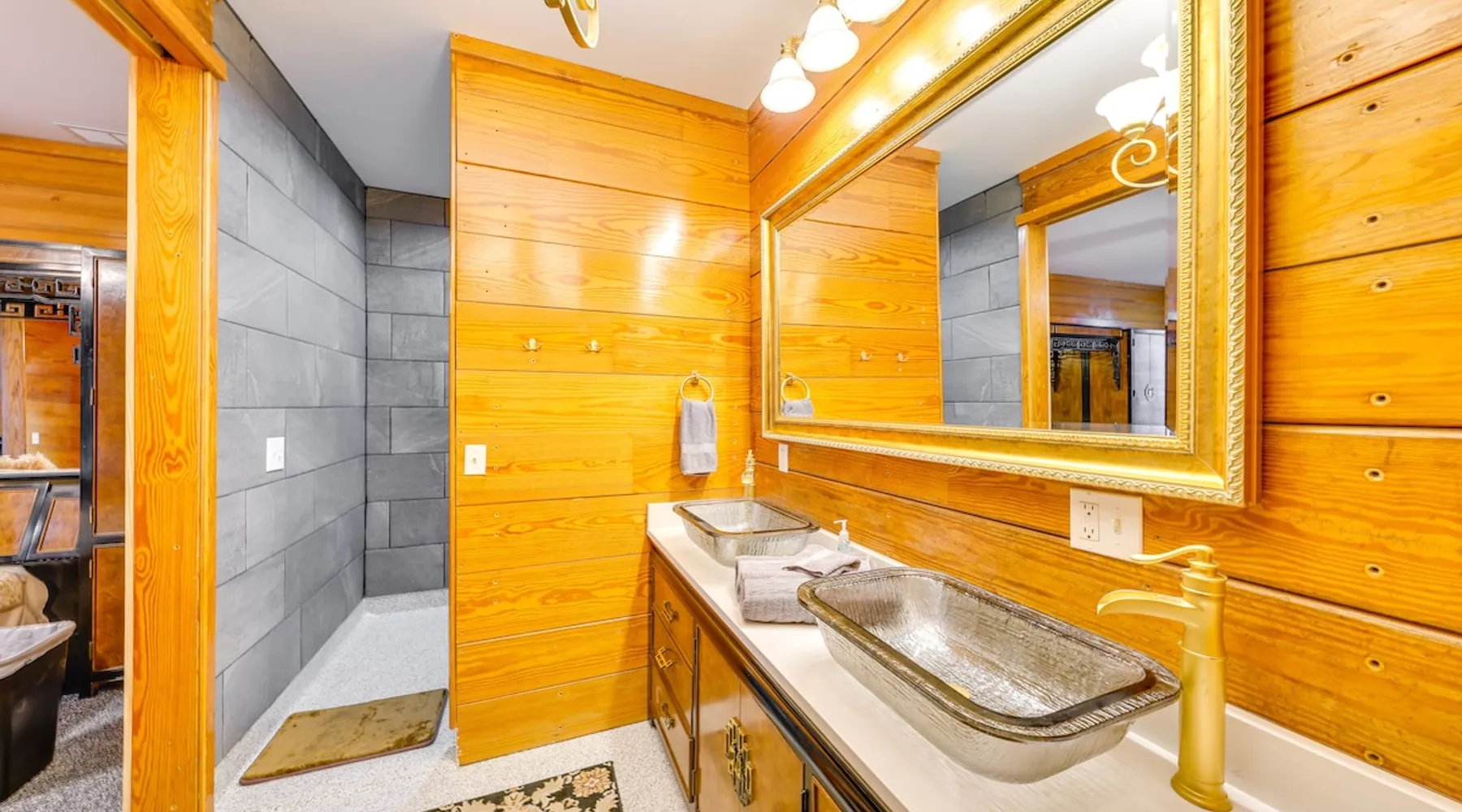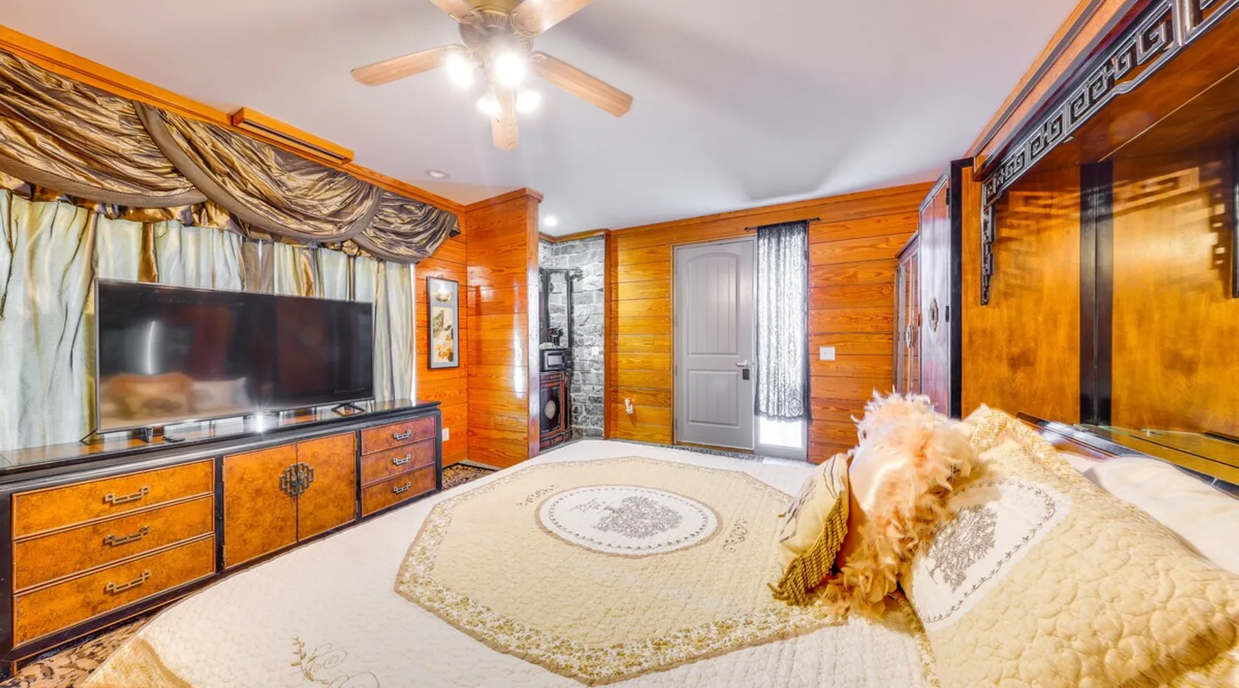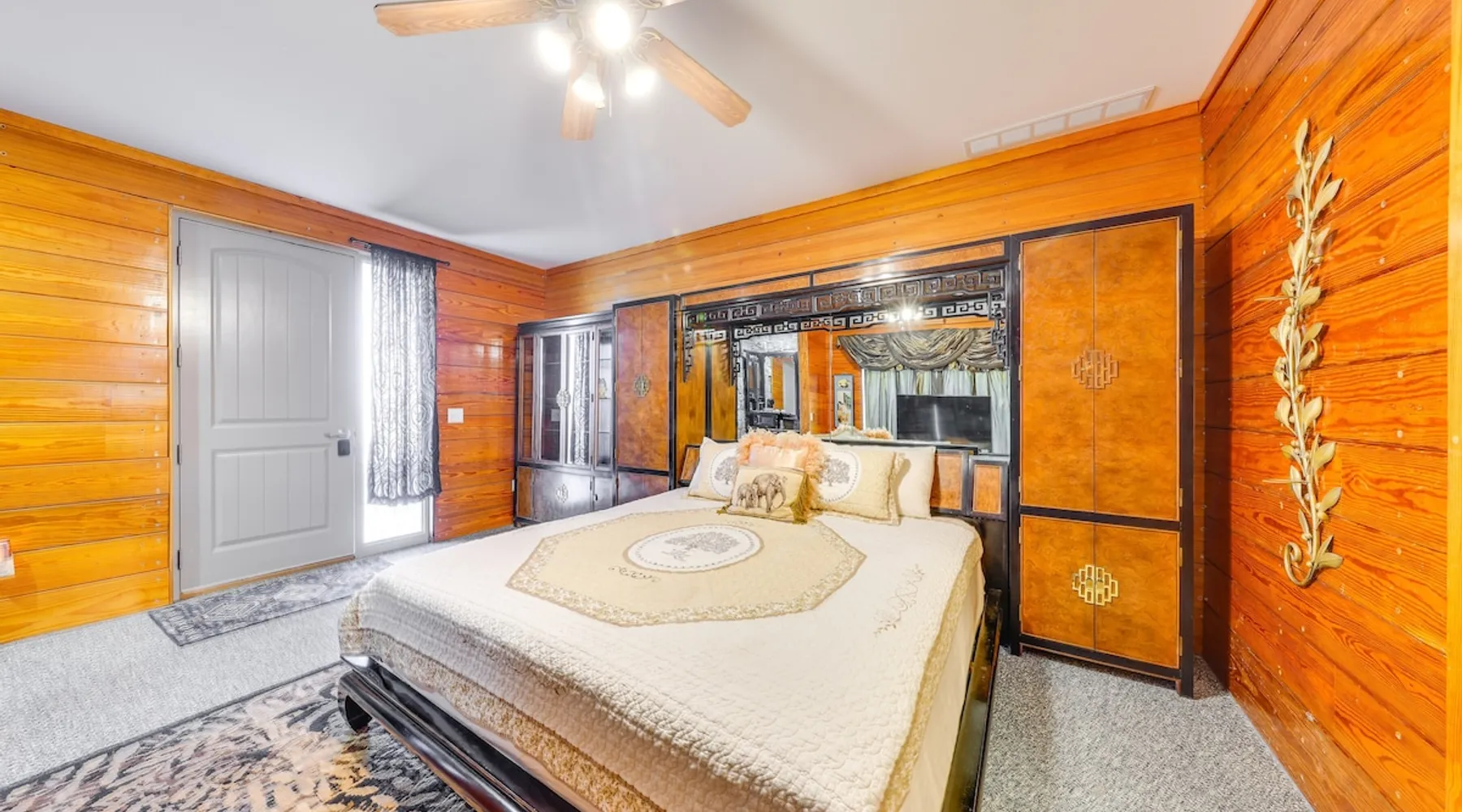 With pastoral views and peace and quiet galore, this serene 5-bedroom, 5-bathroom Tonganoxie vacation rental house will provide the perfect cure to any of your 9-to-5 stresses. Enjoy a meal in the well-stocked kitchen, unwind on the front porch overlooking the 160-acre property or go fishing at one of the stocked fishing ponds on-site. For more outdoor activity, spend the day at Perry Lake at Perry State Park or take a day trip to Kansas City to get fast and furious at the Kansas Speedway. The space Constructed w/ Recycled & Reclaimed Materials | Located on 160-Acre Property | 55” Smart TV in Each Bedroom | Kids’ Supplies (Available Upon Request) Bedroom 1 (Cherry Blossom): King Bed | Bedroom 2 (Oak): King Bed | Bedroom 3 (Redbud): King Bed | Bedroom 4 (Dogwood): King Bed | Bedroom 5 (Pine): King Bed | Additional Sleeping: Pack ‘n Play SHARED AMENITIES: 2 stocked fishing ponds, hiking trails, wildlife OUTDOOR LIVING: Covered front porch w/ seating, vista views, lawn chairs & fishing poles (available upon request) INDOOR LIVING: Interior walls (recycled high school gymnasium bleachers), 6 Smart TVs, dining table, vanity, 2,500 sq ft KITCHEN: Dishwasher, fridge, oven w/ 4-burner stovetop, microwave, island, Keurig & drip coffee makers, complimentary coffee pods, coffee grinder, blender, Crockpot, toaster, toaster oven, cooking basics, dishware & flatware GENERAL: Central heating & A/C, ceiling fans, linens/towels, complimentary toiletries, hair dryer, hangers, high chair, changing table, trash bags/paper towels FAQ: 1 exterior security camera (facing out), step-free access, windows cannot be opened, no WiFi, no living room area PARKING: Driveway (3 vehicles) ADDT’L ACCOMMODATIONS: An additional 3-bedroom property for 6 guests is available on-site with a separate nightly rate. If you would like to reserve both rentals, please inquire for more information prior to booking Guest access Guests will have access to the entire property via keyless entry Other things to note - No smoking - No pets allowed - No events, parties, or large gatherings - Must be at least 25 years old to book - Additional fees and taxes may apply - Photo ID may be required at check-in - NOTE: There is another bookable vacation rental on-site; other travelers may be present during your stay - NOTE: Kids' supplies, lawn chairs, and fishing poles are available upon request. Please reach out to the Guest Contact before your arrival if you would like to use these items - NOTE: There is a wedding venue on-site which may be in use during your stay - NOTE: Your safety matters. This property features 1 Ring Doorbell device with an exterior security camera facing the front outdoor entry. The camera faces outward and does not look into interior spaces. The camera records video and sound when activated by motion and will be on during the duration of your stay - NOTE: There is no WiFi available at the property - NOTE: There is not a living room area at this property