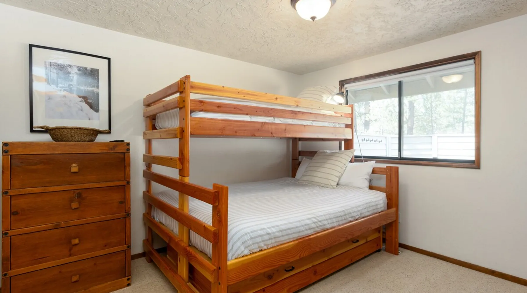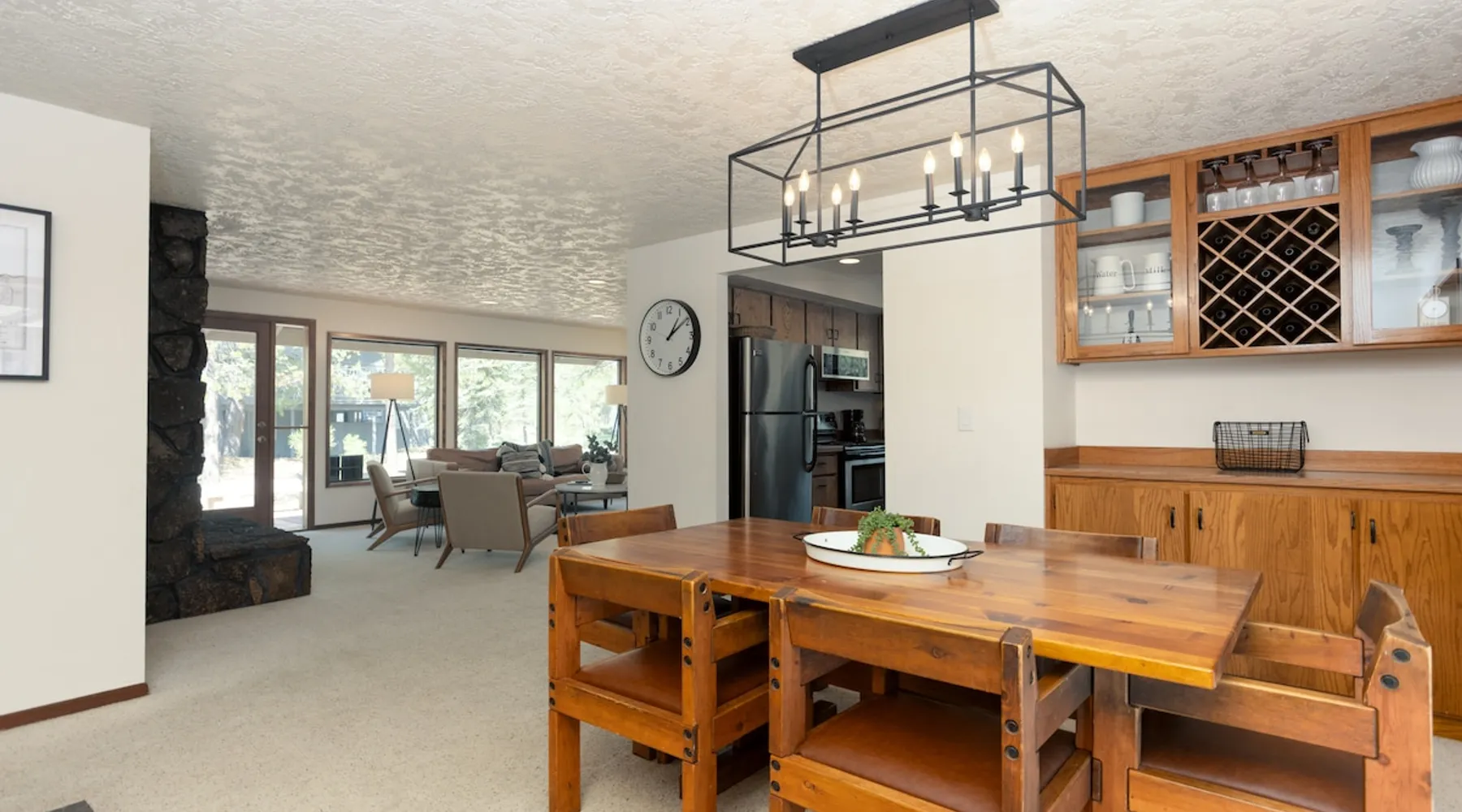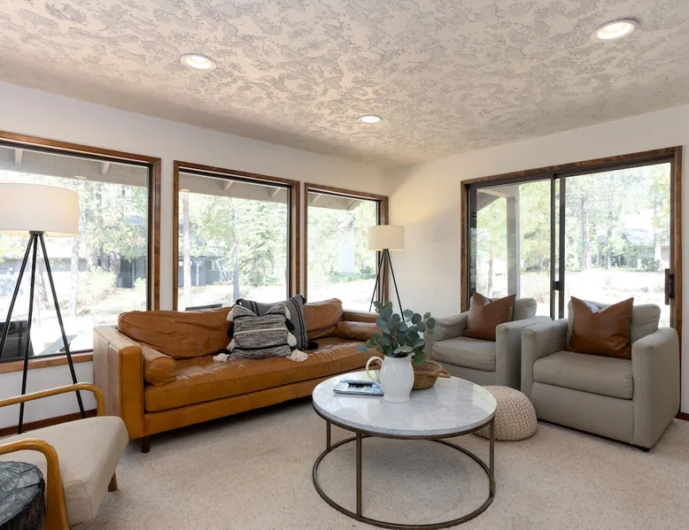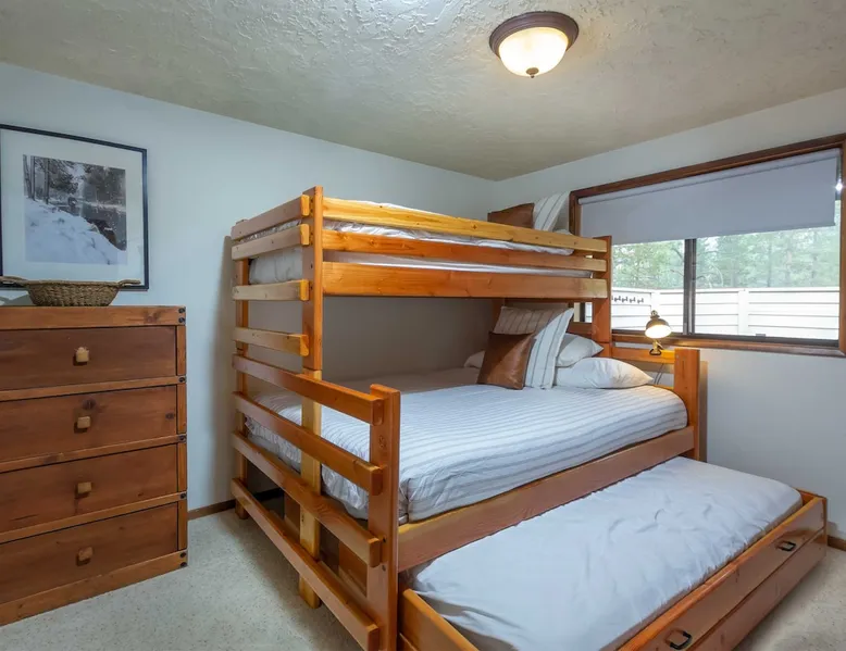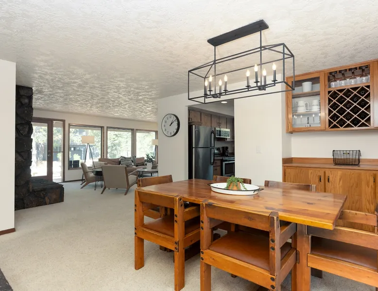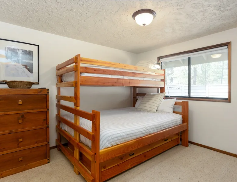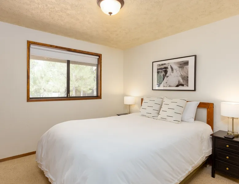 This centrally located home is the perfect getaway with Fort Rock Park just a short walk from your door. Tasteful decor and features such as air conditioning, comfortable modern furnishings, a wood-burning fireplace, bikes and a ping pong table. Your adventure awaits! The space This centrally located, single-level home is the perfect Sunriver getaway with Fort Rock Park just a short walk from your door. Tasteful decor and features such as air conditioning, comfortable modern furnishings, and a wood burning fireplace offer a welcoming atmosphere. The welcoming great room is a perfect place to hang out with a book, catch an episode of your favorite show or have a movie night with the family. The fully stocked kitchen flows into a welcoming dining room, making it easy to enjoy home-cooked meals together. When it's time to turn in for the night you have three bedrooms to choose from. The ensuite bedroom features a plush king bed and large TV. Bedroom two features a queen bed with an adjacent bathroom. The third bedroom includes a twin over queen pyramid bunk - perfect for kids or extra guests. Stay cool all summer with air conditioning, and soak under the stars in your private hot tub after a day of Central Oregon adventures. Fire up the outdoor grill on the spacious back deck while the kids (or kids at heart) enjoy a friendly game of ping pong. The spacious deck is an awesome place to relax in the summer sunshine or dine al fresco with seating for 8. The laundry room is off the kitchen, and leads out to the garage where you’ll find a ping pong table and 6 adult bikes. Sunriver is packed with activities everyone will love! Bike the 40+ miles of scenic trails or float the Deschutes River. Families love the SHARC Aquatic Center, Sunriver Village for shopping and dining, and the nearby observatory for incredible stargazing. In winter, hit the slopes at Mt. Bachelor, just 20 minutes away, or enjoy snowshoeing and ice skating right in the village Though not on the same street, Irish Mountain 6 is a great home to book together with Flat Top 11 to have your entire group close together. Guest access Home access information will be sent 7 - 10 days prior to arrival. All homes are set up for self check-in, no need to stop by the office, just go straight to the home. Other things to note AGE RESTRICTIONS: Guests must be 23 years or older to rent Bennington homes and the person reserving must occupy the home the whole reservation.
