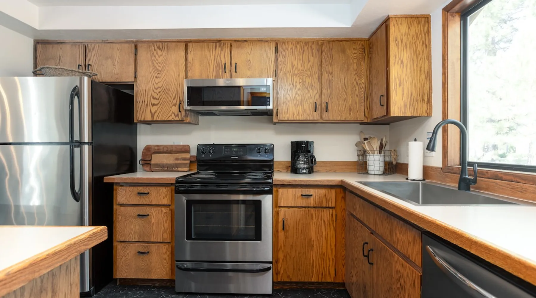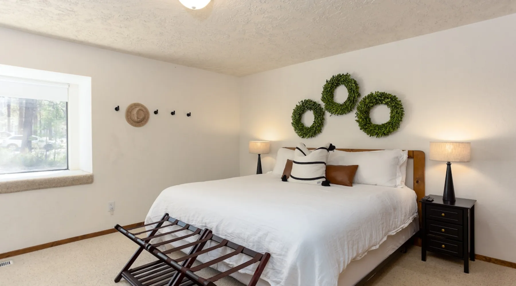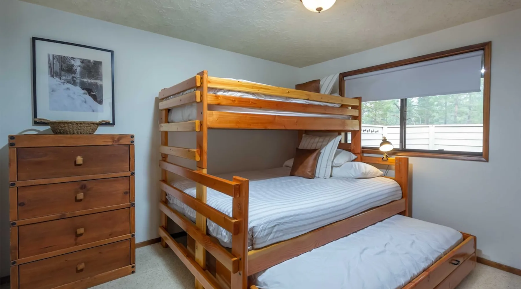 This centrally located home is the perfect getaway with Fort Rock Park just a short walk from your door. Tasteful decor and features such as air conditioning, comfortable modern furnishings, a wood-burning fireplace, bikes and a ping pong table. Your adventure awaits! The space This centrally located, single-level home is the perfect Sunriver getaway with Fort Rock Park just a short walk from your door. Tasteful decor and features such as air conditioning, comfortable modern furnishings, and a wood burning fireplace offer a welcoming atmosphere. The welcoming great room is a perfect place to hang out with a book, catch an episode of your favorite show or have a movie night with the family. The fully stocked kitchen flows into a welcoming dining room, making it easy to enjoy home-cooked meals together. When it's time to turn in for the night you have three bedrooms to choose from. The ensuite bedroom features a plush king bed and large TV. Bedroom two features a queen bed with an adjacent bathroom. The third bedroom includes a twin over queen pyramid bunk - perfect for kids or extra guests. Stay cool all summer with air conditioning, and soak under the stars in your private hot tub after a day of Central Oregon adventures. Fire up the outdoor grill on the spacious back deck while the kids (or kids at heart) enjoy a friendly game of ping pong. The spacious deck is an awesome place to relax in the summer sunshine or dine al fresco with seating for 8. The laundry room is off the kitchen, and leads out to the garage where you’ll find a ping pong table and 6 adult bikes. Sunriver is packed with activities everyone will love! Bike the 40+ miles of scenic trails or float the Deschutes River. Families love the SHARC Aquatic Center, Sunriver Village for shopping and dining, and the nearby observatory for incredible stargazing. In winter, hit the slopes at Mt. Bachelor, just 20 minutes away, or enjoy snowshoeing and ice skating right in the village Though not on the same street, Irish Mountain 6 is a great home to book together with Flat Top 11 to have your entire group close together. Guest access Home access information will be sent 7 - 10 days prior to arrival. All homes are set up for self check-in, no need to stop by the office, just go straight to the home. Other things to note AGE RESTRICTIONS: Guests must be 23 years or older to rent Bennington homes and the person reserving must occupy the home the whole reservation.