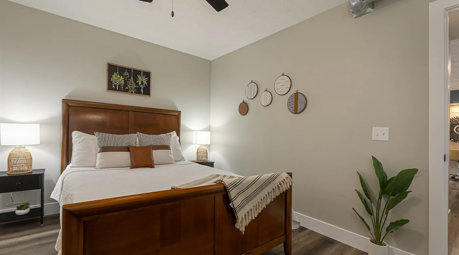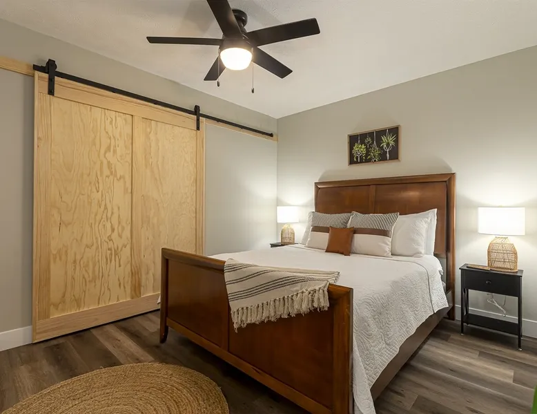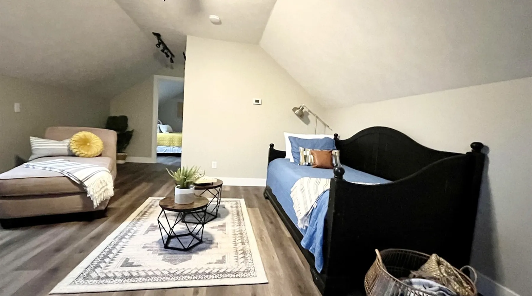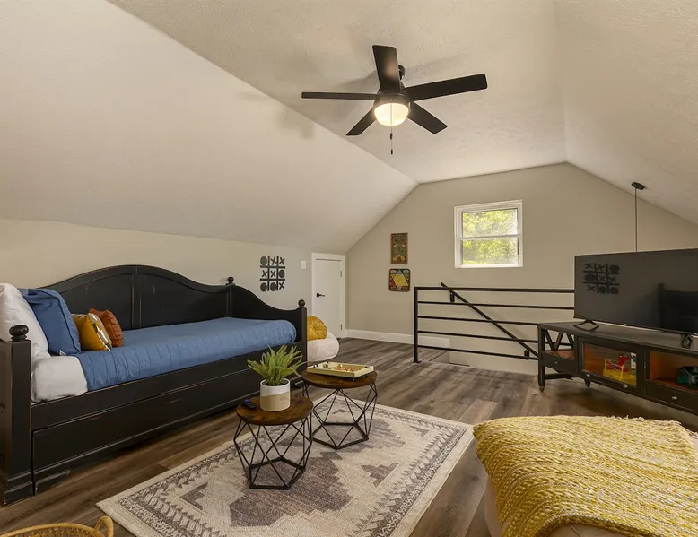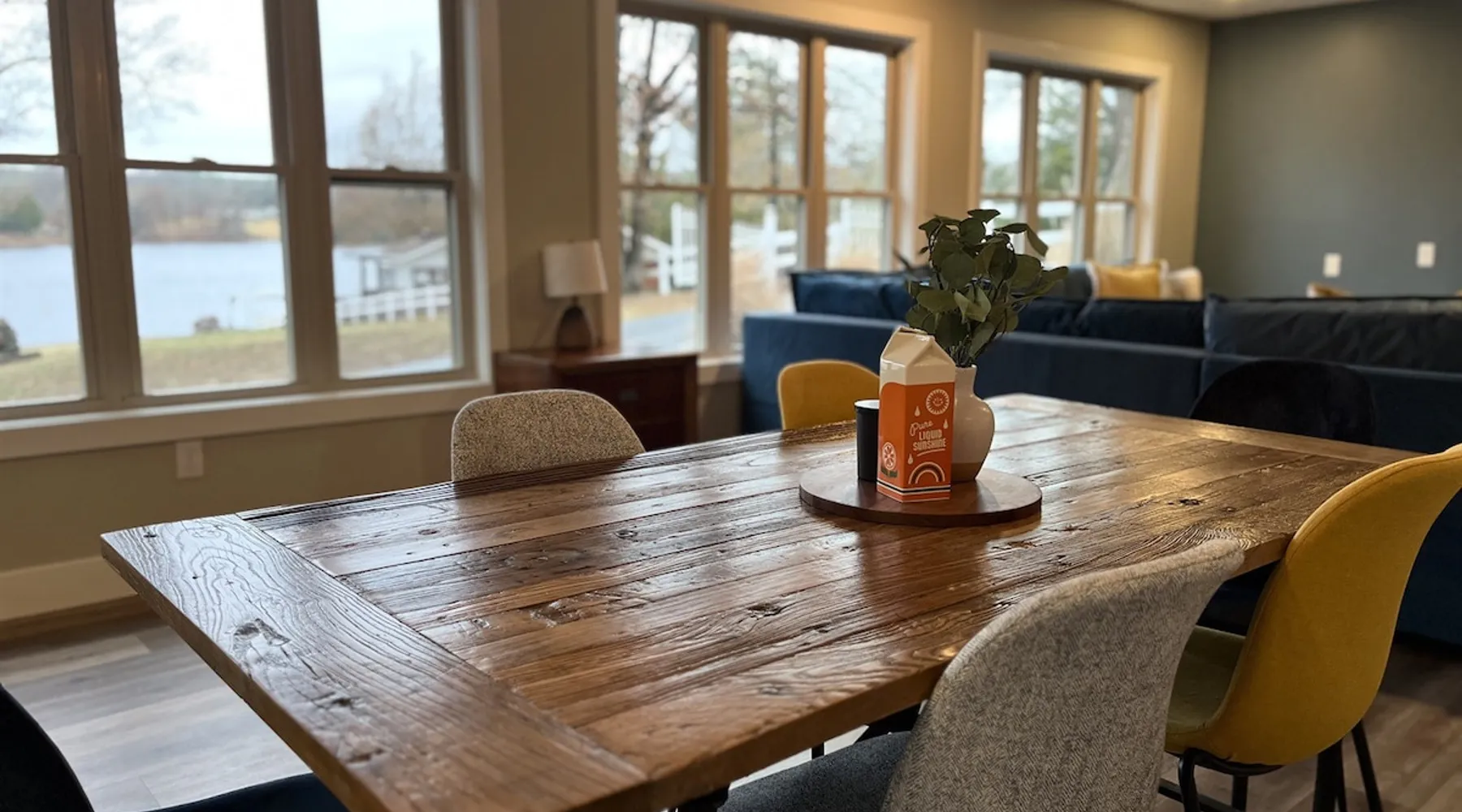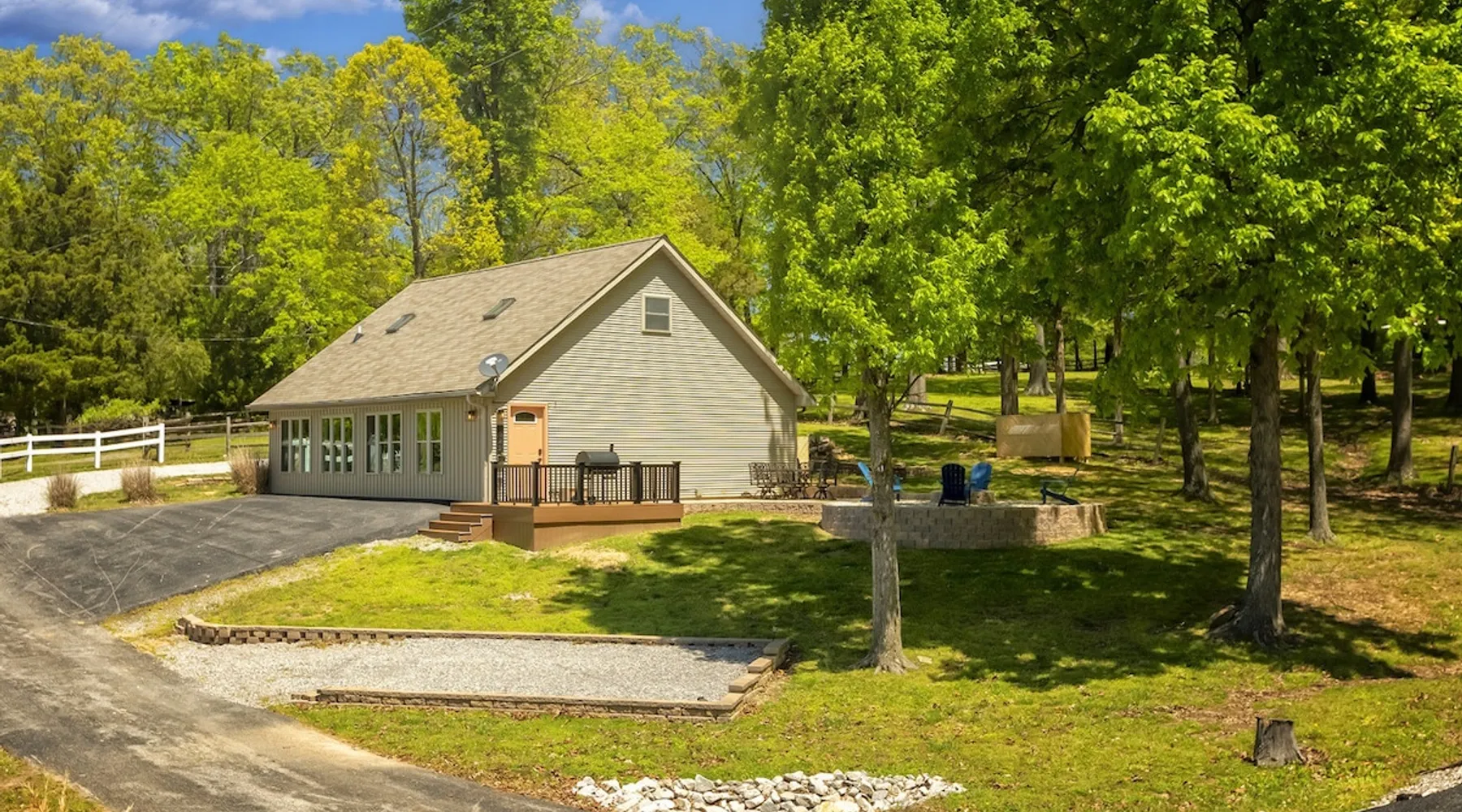 Fun, stylish, and full of modern lake vibes, Sunset Point is a 3-car garage conversion turned designer retreat. With 2 bedrooms and 2 bathrooms (one on each level), it’s the perfect setup for 2 couples or families with kids — sleeping up to 8 guests. Enjoy a private dock just steps away for swimming or boating, plus a large firepit area, grill, foosball table, and plenty of games. Bright interiors, bold décor, and thoughtful design make this Lake of Egypt getaway both hip and comfortable. The space SLEEPING ARRANGEMENTS: • 1 Queen bedroom Lower Level • 1 Queen Upper Level • 1 Daybed (twin & twin) in Upper Level Living Room • 1 Modular couch that can convert to queen size on Lower Level Living Room AMENITY HIGHLIGHTS: • Located in a no-wake zone, off of the main channel • Small private dock for boat tie-off and swimming • Lake views from living room, kitchen, dining room, the deck, patio, and private dock. • Grill and firepit provided • Complimentary WiFi • Personal Recommendations of things to do and places to go Guest access Guests have access to the entire property. Other things to note A rental agreement is required with ID verification within 48 hours of booking. Access to the property is only provided after the renter's agreement is signed. Check-in is after 3 PM. Check-out is before 10 AM. Pet Policy: Pets are not allowed at this property. If guest are caught with a pet, guests may be subject to an immediate cancellation without refund. If evidence is found after your stay, there will be a $150 penalty for rule violation. Inventory: We provide a "starter package" of inventory for our cabin: 3 rolls of T.P. and 1 full roll of paper towels. Guests not staying overnight are welcomed. Loud, disruptive parties are not. BYO Beach Towels. We provide bath towels BYO Life Vests HIGHLY encouraged to ensure proper size. Firewood is available for purchase. The dock is located between 2 other rentals. You must walk between these two properties to access the dock. All 3 rentals are owned by the same person and managed by Southern Illinois Vacation Rentals. This property is a 3-car garage conversion that sits on the opposite side of the driveway as the main house.