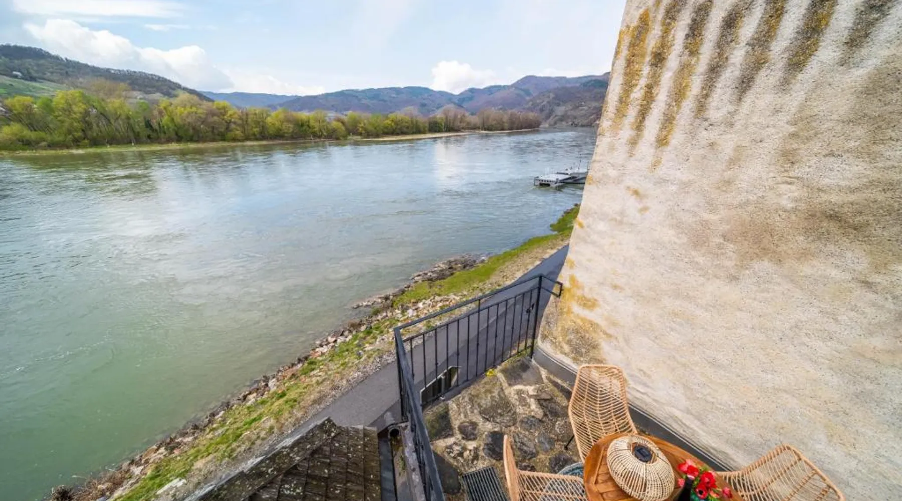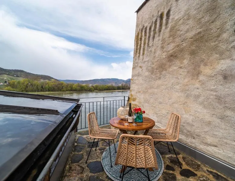 Beachfront and Free WiFi: Smile Apartments mit Donaublick in Dürnstein offers direct beachfront access and complimentary WiFi. Guests can relax on the terrace or enjoy river views from the outdoor dining area. Comfortable Amenities: Each apartment features a private bathroom, fully equipped kitchen with modern appliances, and a work desk. Additional amenities include streaming services, a washing machine, and free toiletries. Prime Location: Located less than 0.6 mi from Dürnstein Castle, the property is 62 mi from Vienna International Airport. Nearby attractions include Melk Abbey (19 mi) and Caricature Museum Krems (3.7 mi). Guest Satisfaction: Highly rated by guests for its convenient location, Smile Apartments mit Donaublick ensures a pleasant stay with excellent facilities and services. Featuring a private entrance, this apartment also consists of 2 bedrooms, a seating area and 1 bathroom with a bath and a shower. In the well-equipped kitchen, guests will find a stovetop, a refrigerator, a dishwasher and kitchenware. Boasting a terrace with river views, this apartment also provides a tea and coffee maker and a flat-screen TV with streaming services. The unit offers 2 beds.